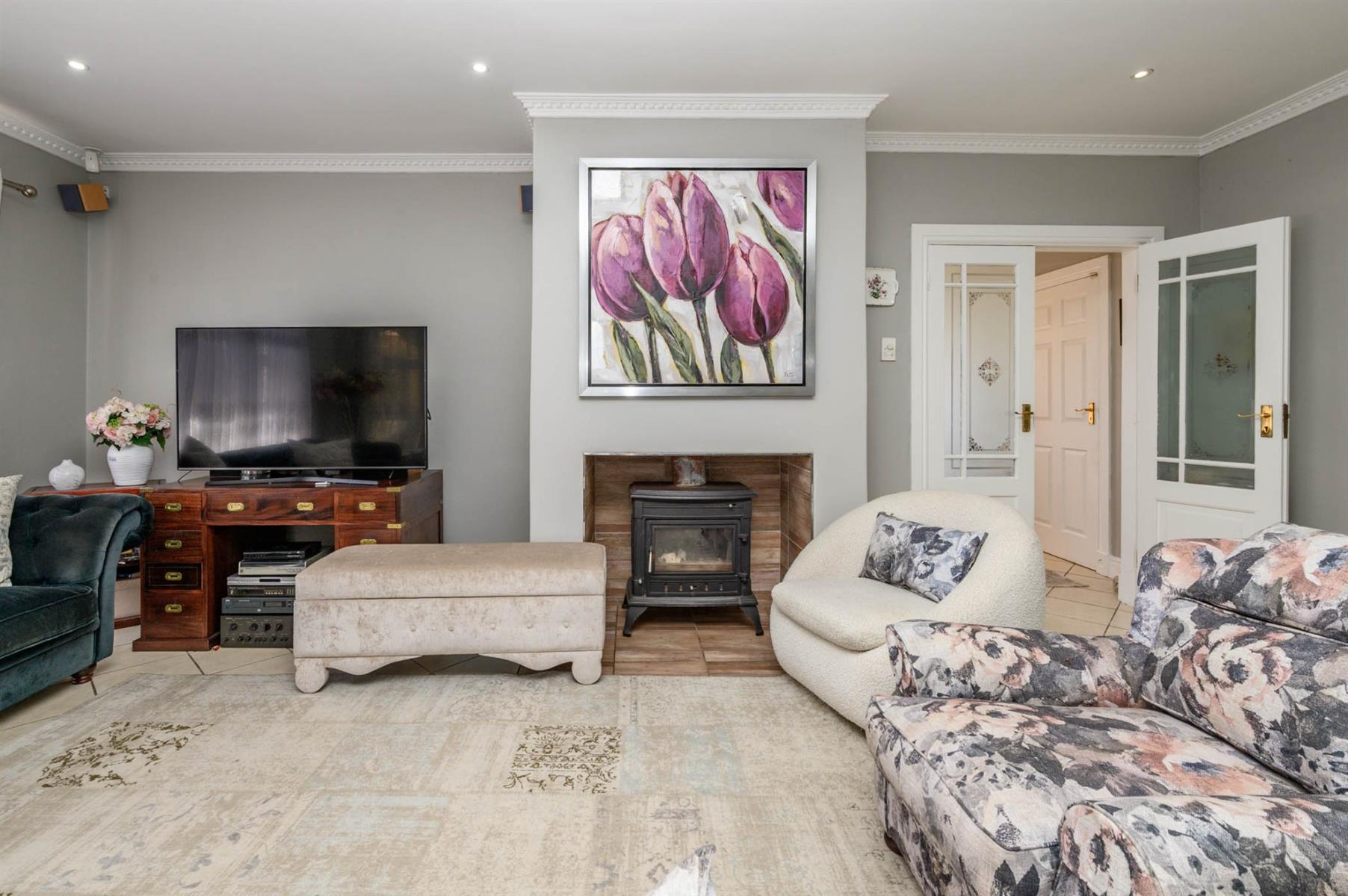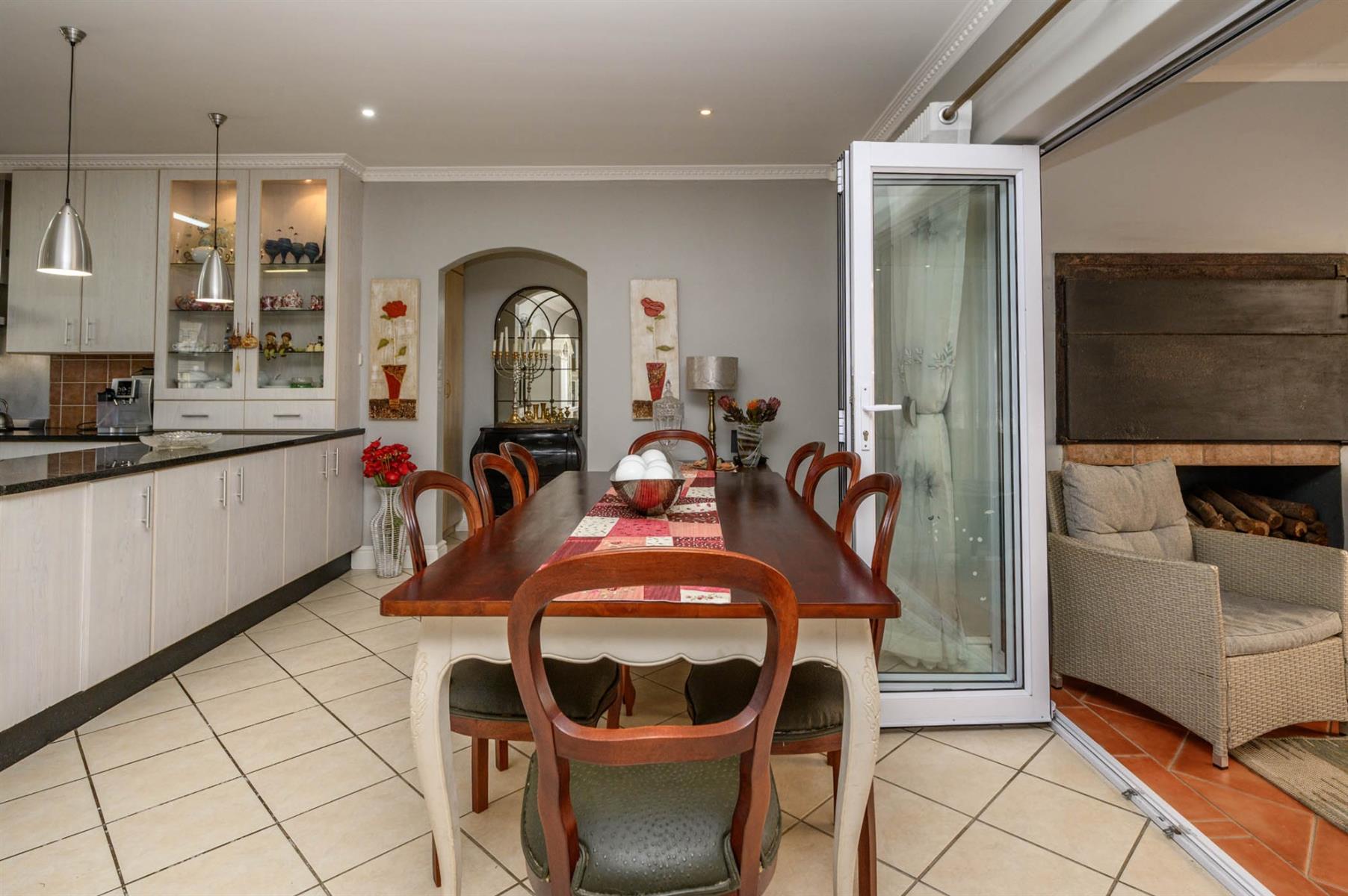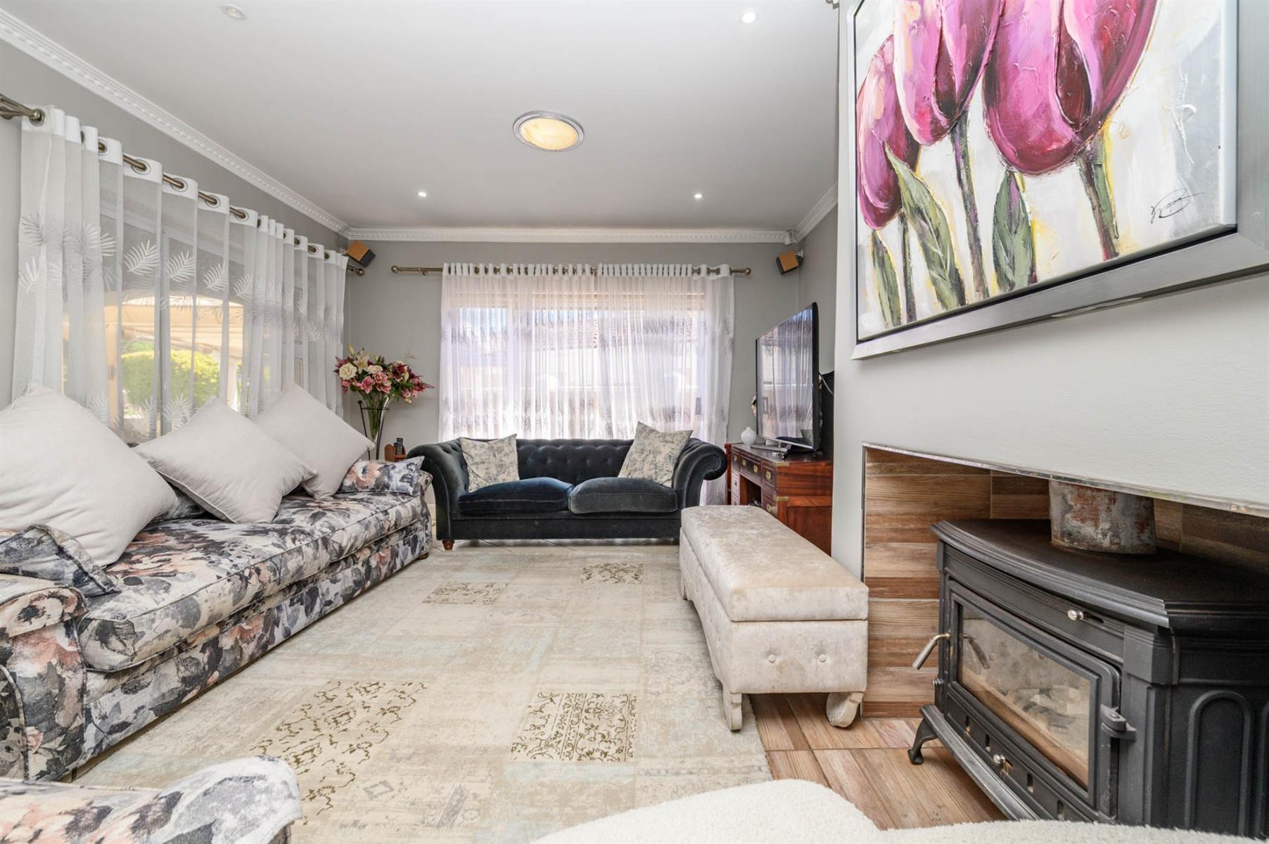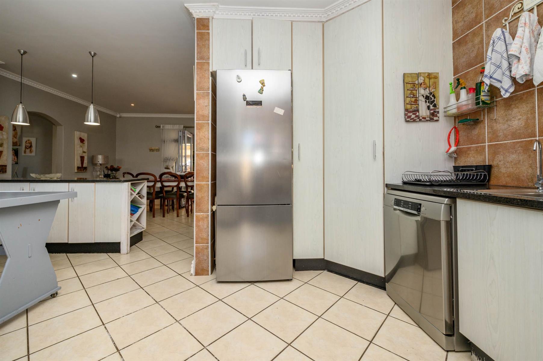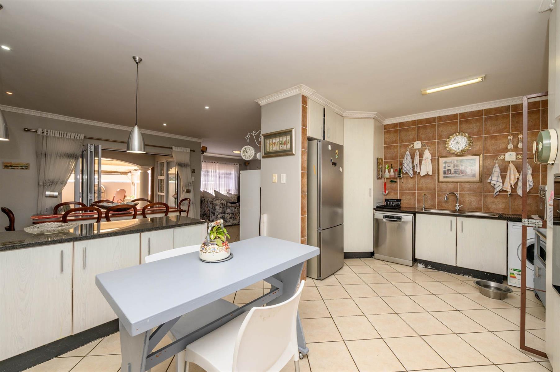 This 4-bedroom home in Meadow Woods Estate is perfect for modern family living. The open plan lounge flows effortlessly into the kitchen and dining area, making it easy to entertain or just relax together as a family. The lounge has surround sound and a cozy fireplace, creating a welcoming space for quiet evenings or social gatherings.