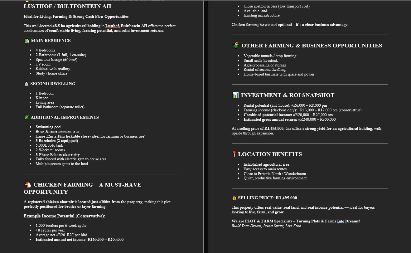 – fully fenced and ready for farming, lifestyle, or business ventures.