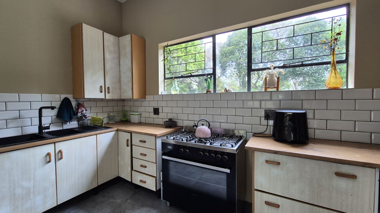 Functional kitchen with ample cupboard space and a state-of-the-art gas stove
