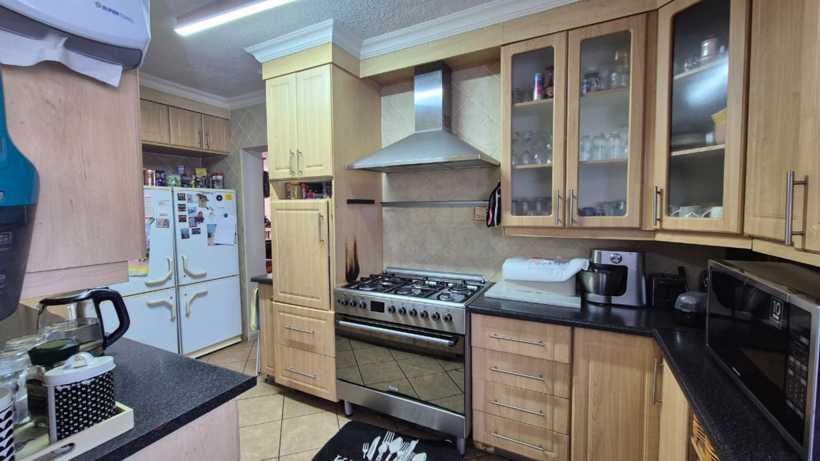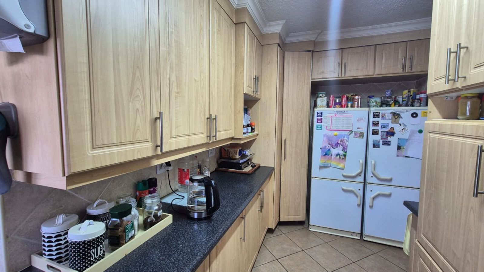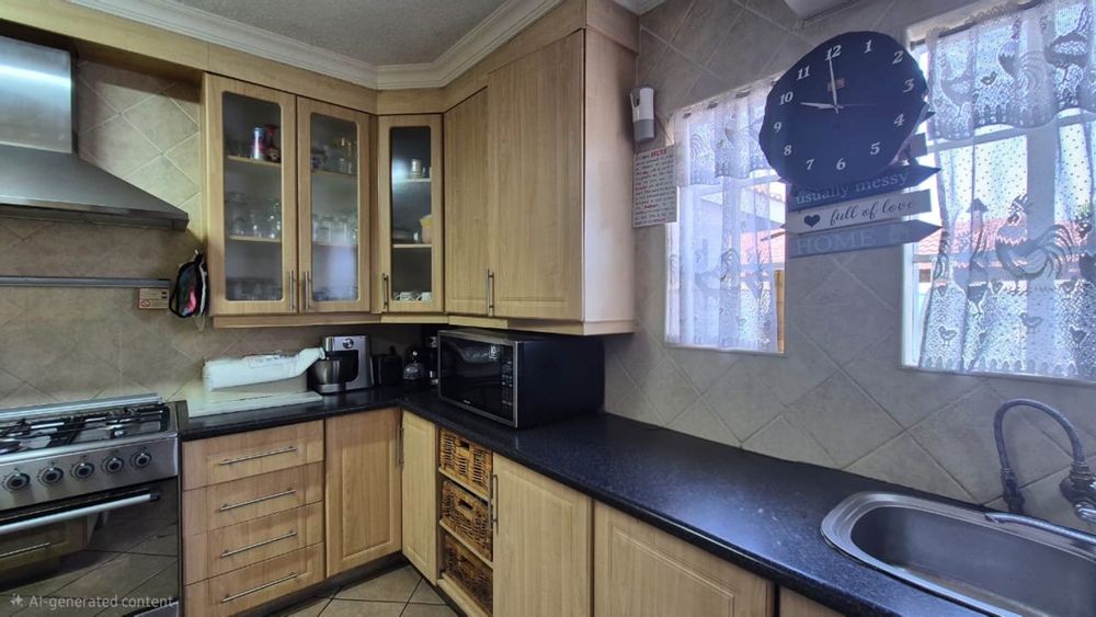 A modern kitchen boasts an abundance of cupboard space, a gas stove, and a functional layout that makes cooking a delight.