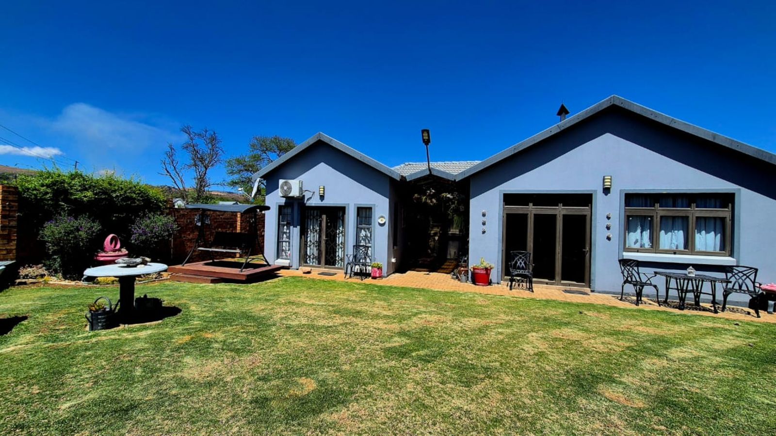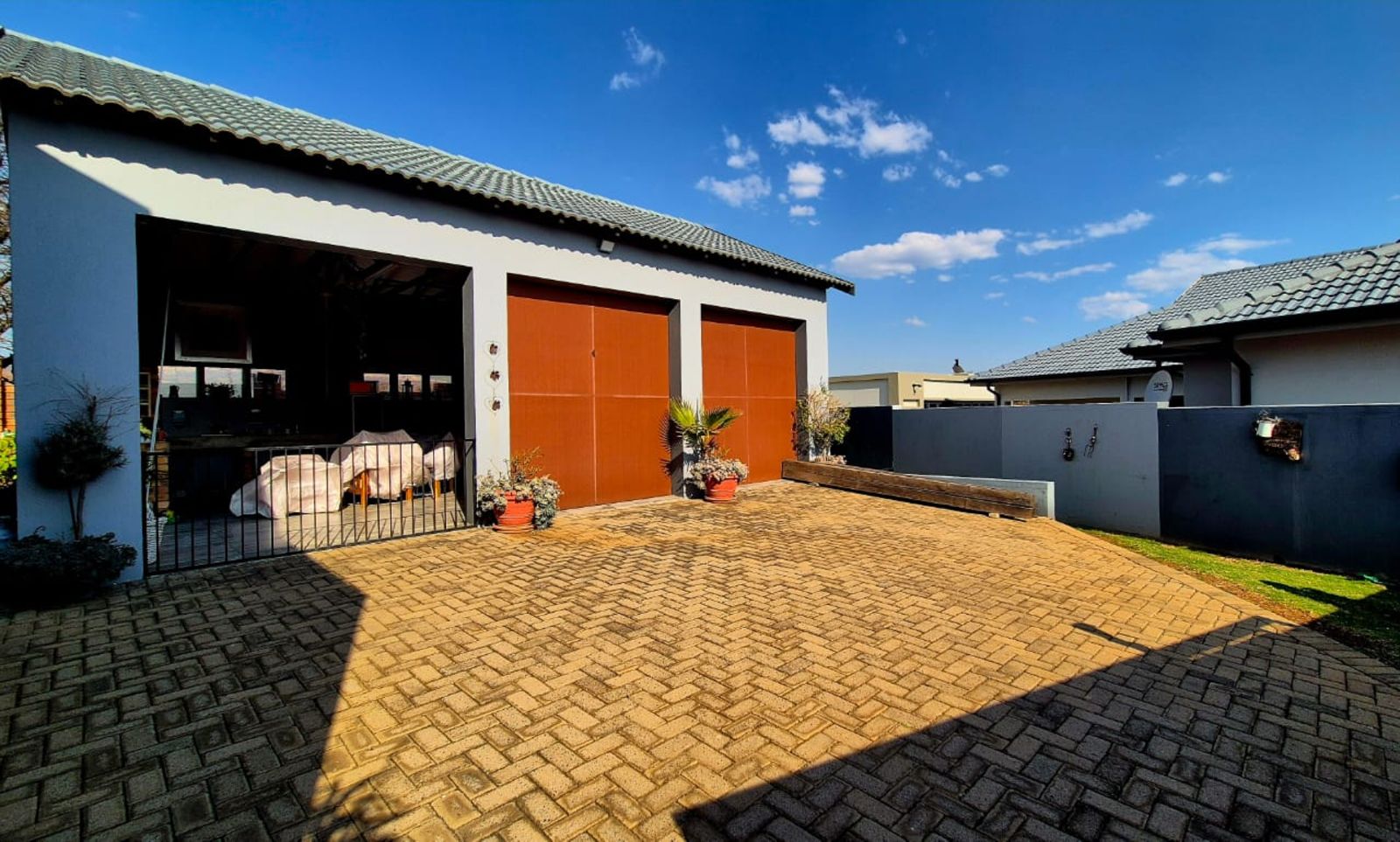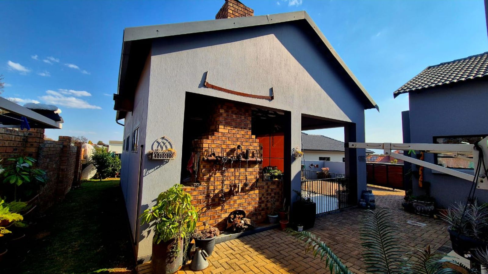 Spacious outdoor entertainment area with built-in braai – also suitable for extra parking