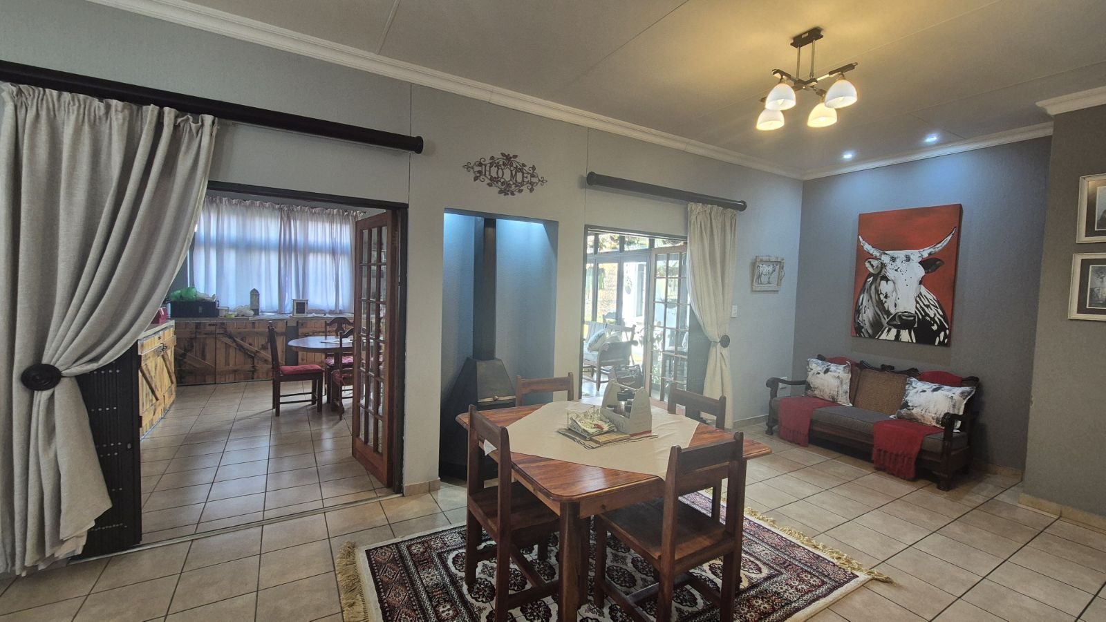 Open-Plan Dining Room – Complete with a cozy built-in fireplace, perfect for family gatherings.