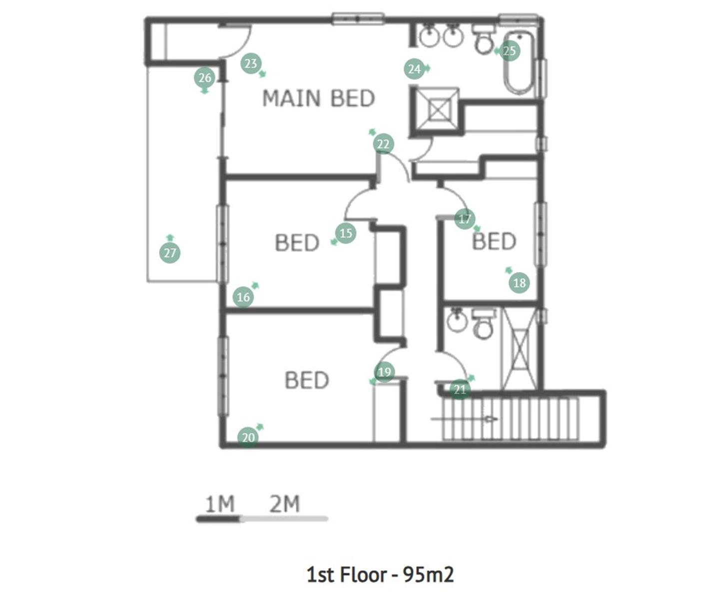 2 bathrooms (main bedroom has its own)
