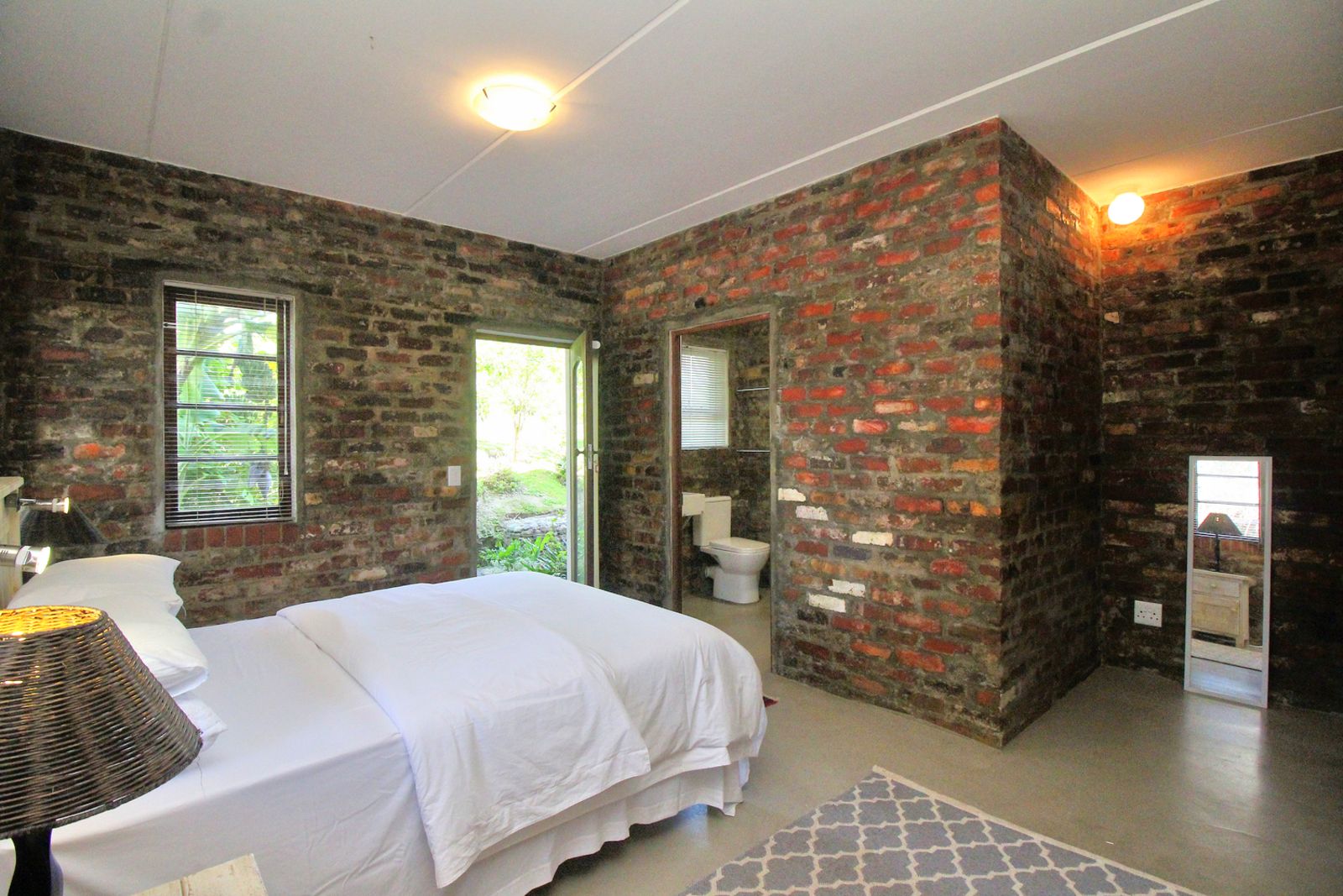 This double-story home gets the fundamentals right across 158 square meters of well-planned space. Three generous bedrooms, each with its own en-suite bathroom, flow naturally through the residence. The master bedroom is a particular highlight, featuring its own charming private stoep with wooden posts and natural stone flooring, surrounded by lush tropical plantings for ultimate privacy and tranquility.