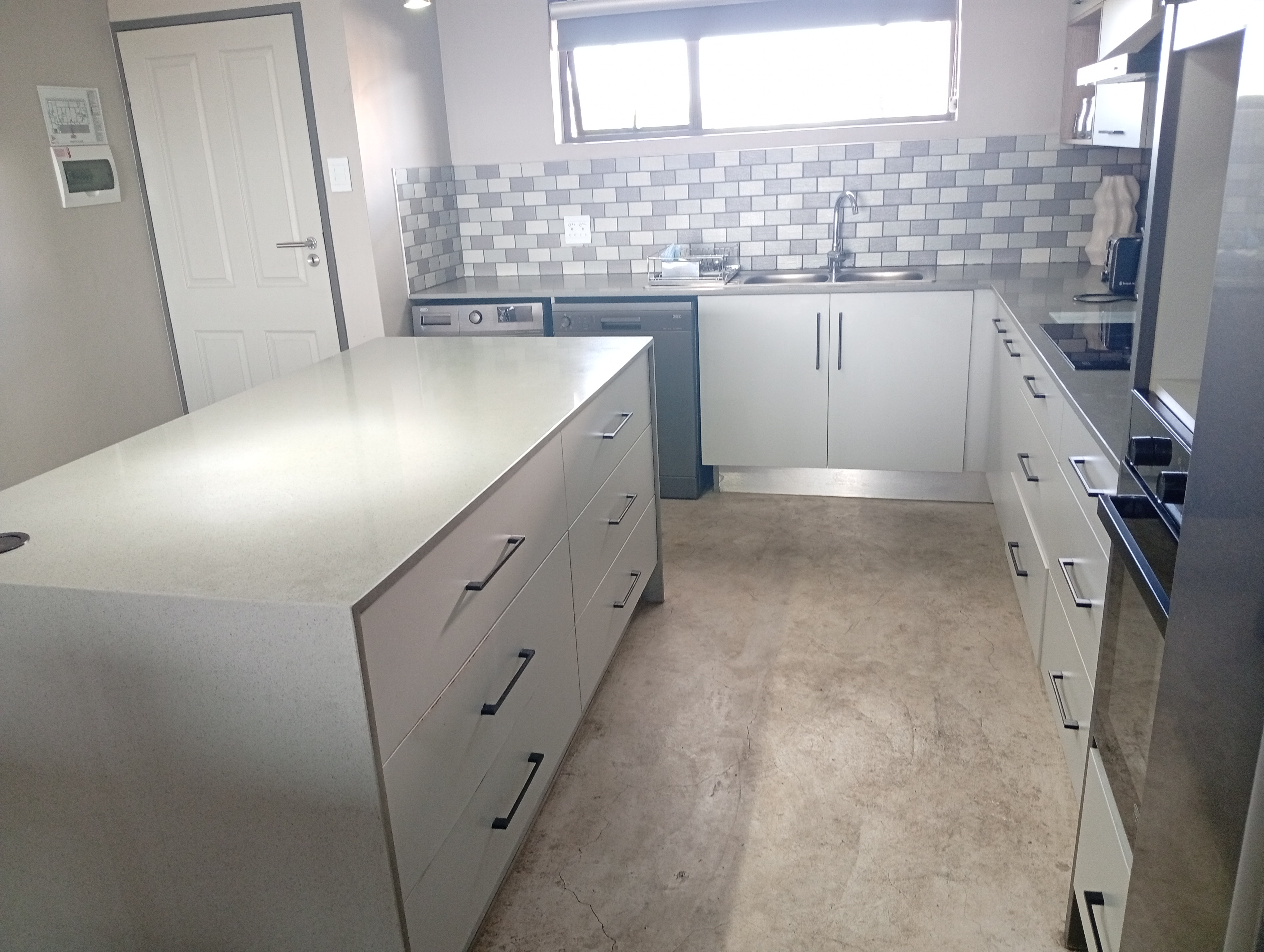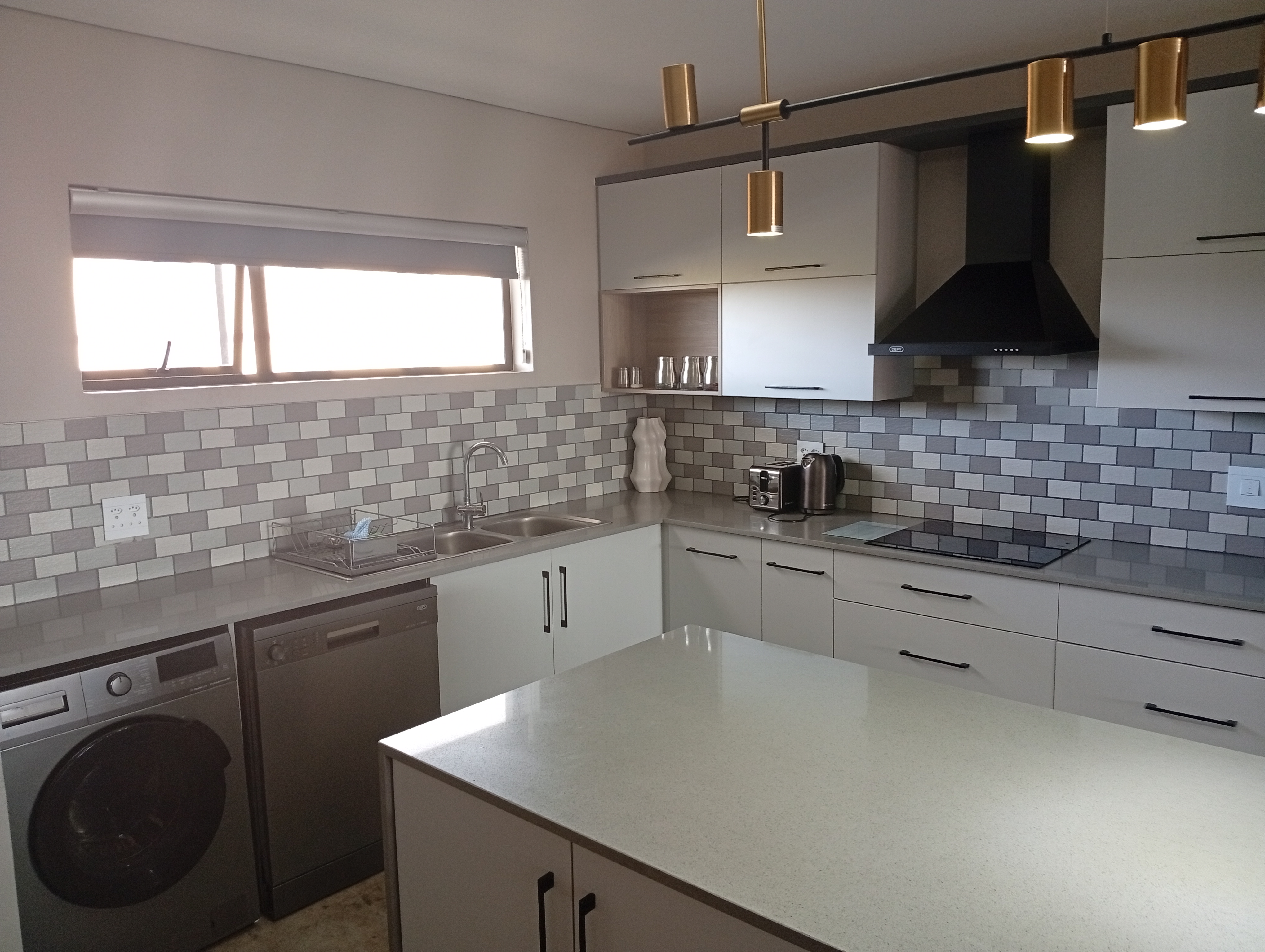Sliding doors lead to a large balcony fitted with a movable braai stand — perfect for entertaining guests or relaxing outdoors while enjoying beautiful views.