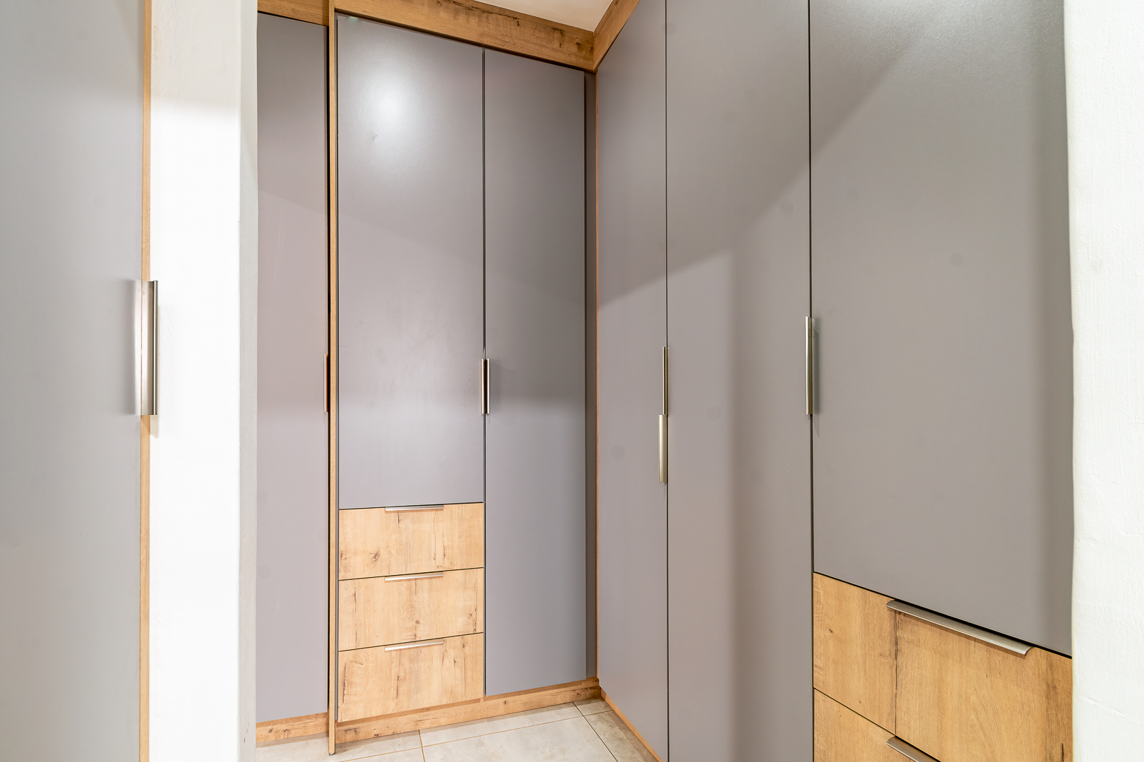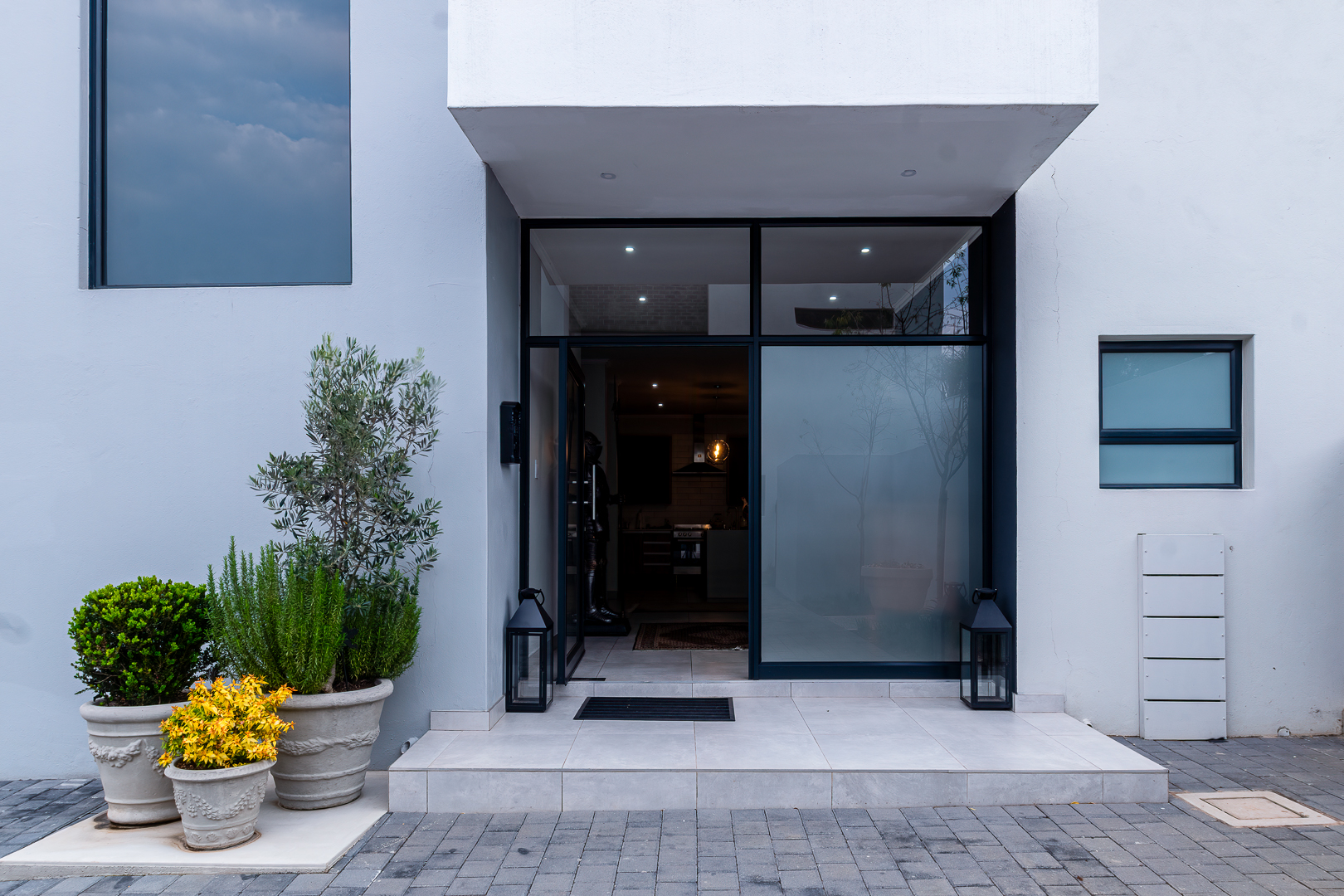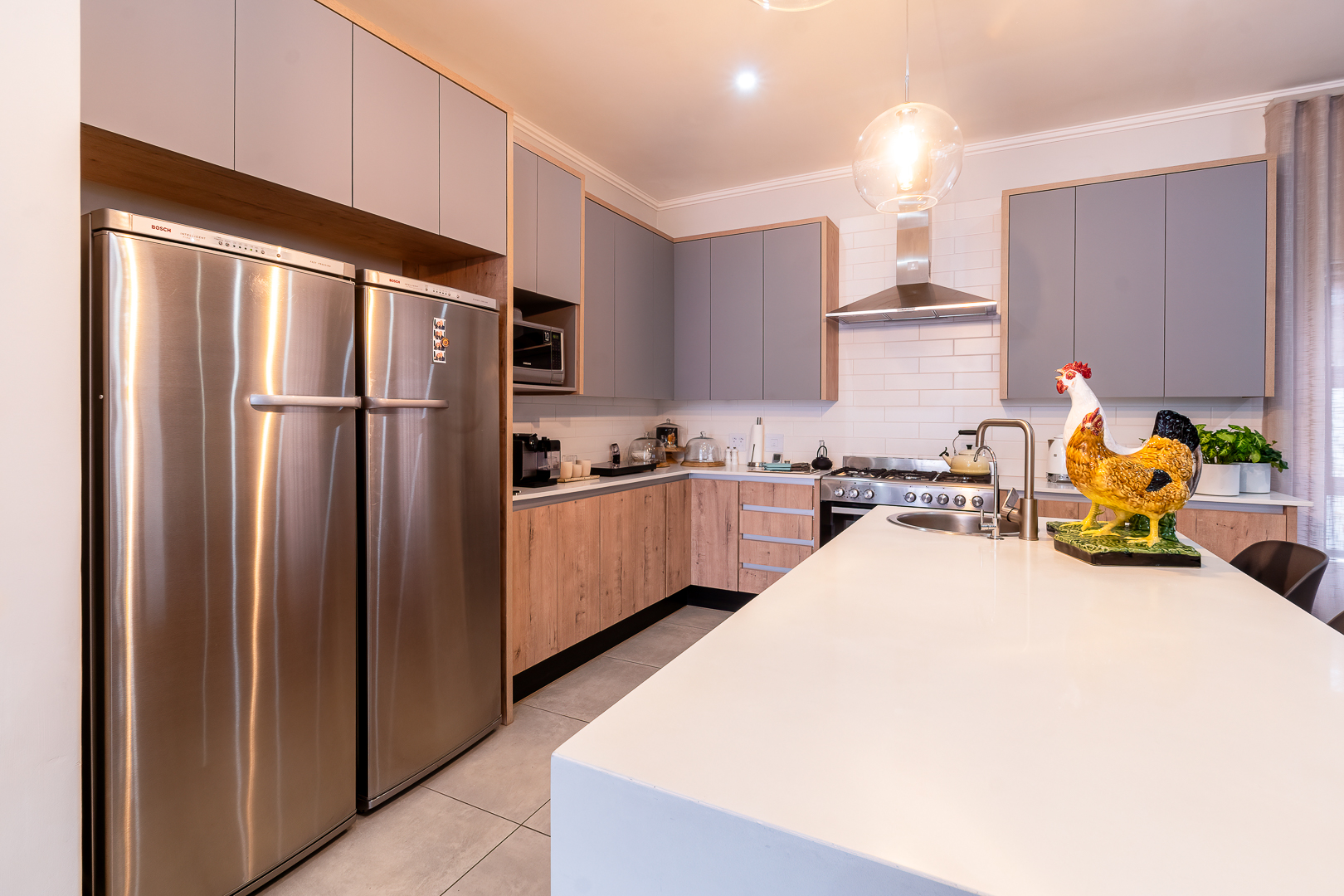 - Two spacious lock-up garages with ample cupboards to keep your garage organized.