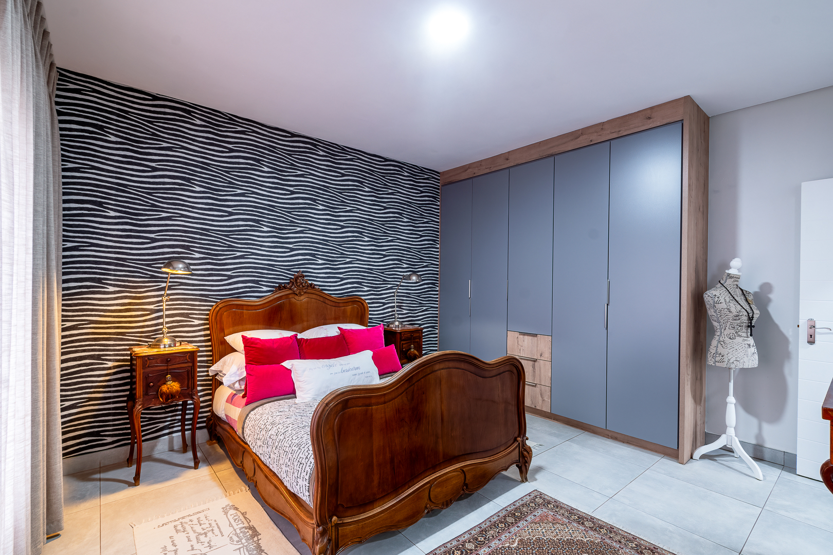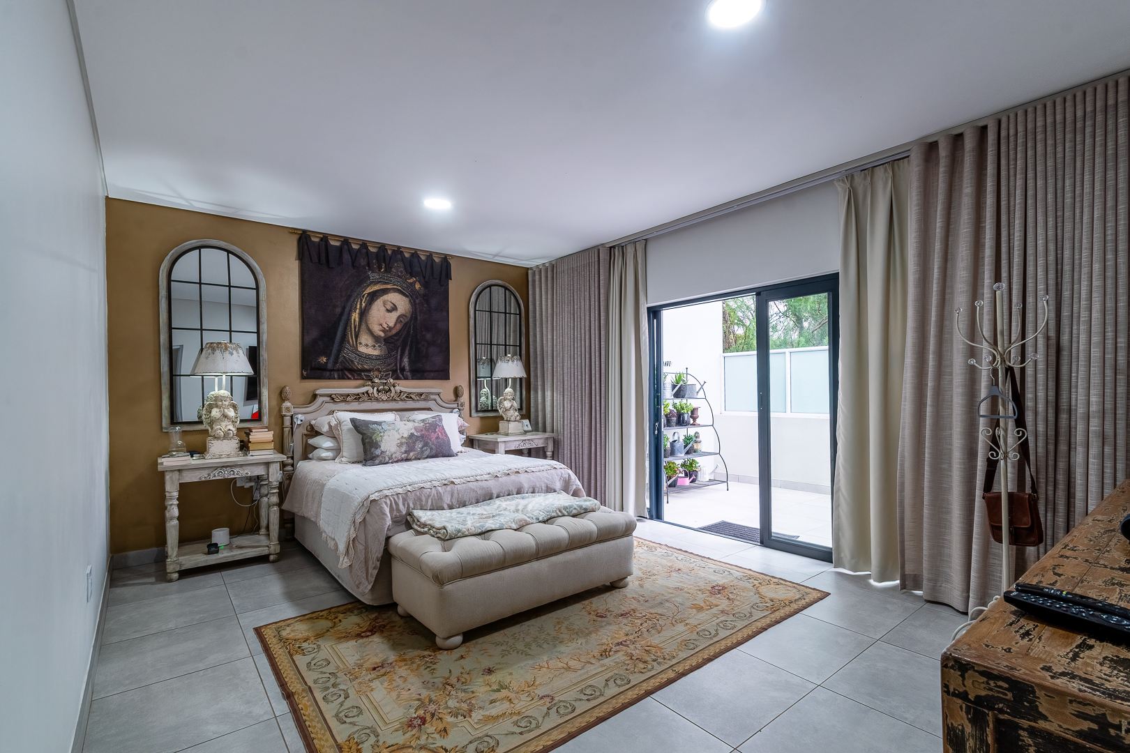 - Custom made curtains included.