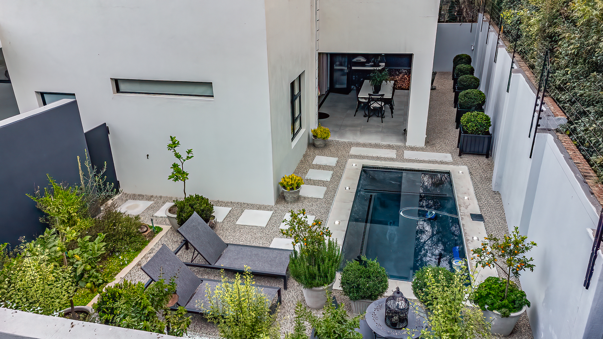 - Small landscaped garden with irrigation