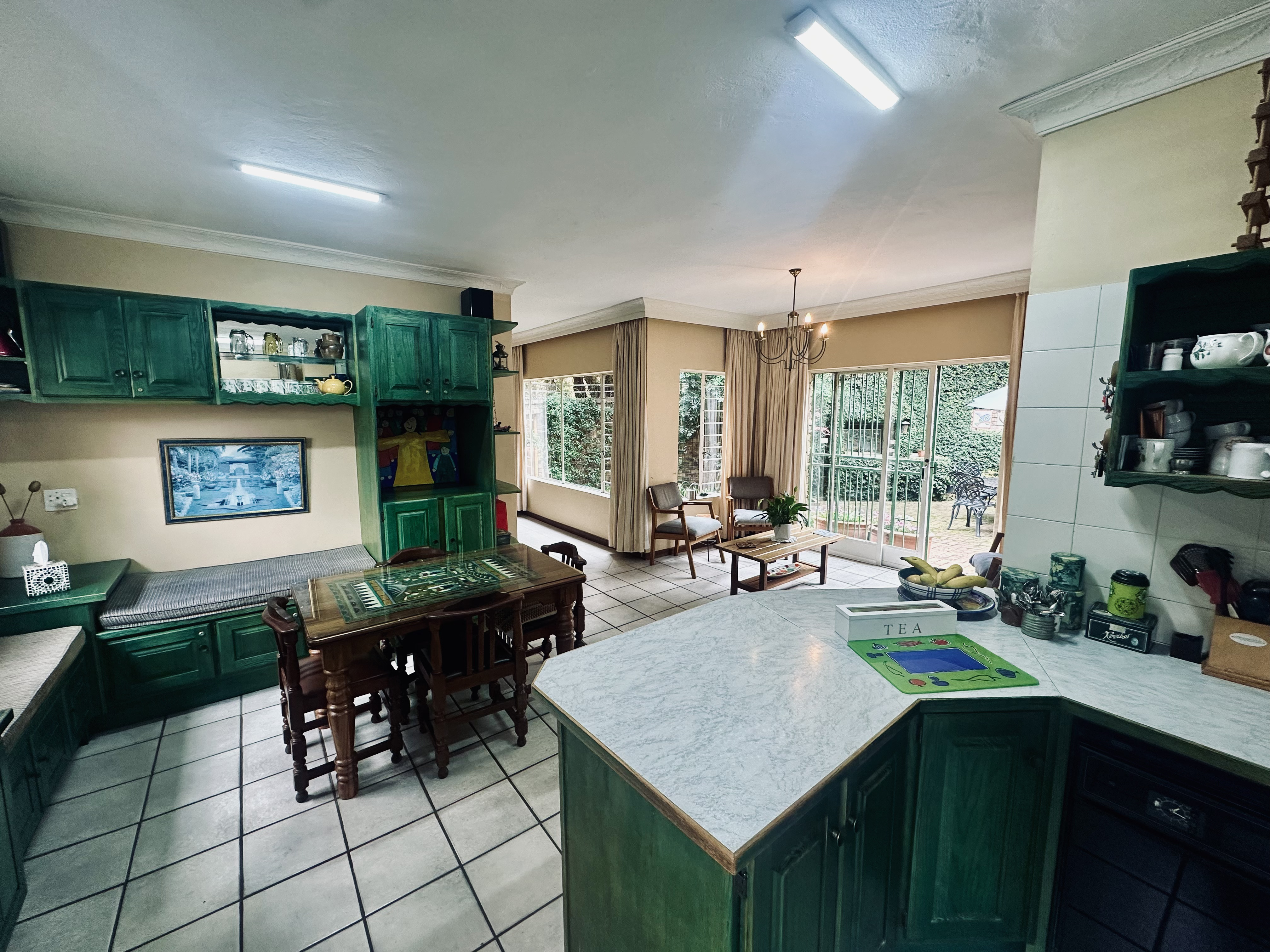 Inside, the home flows comfortably. A separate lounge provides a peaceful retreat, while the open‐plan kitchen and dining area create a welcoming space for relaxed everyday living. Outdoors, a spacious open braai area extends your entertainment options, complemented by a private staff quarter positioned on the opposite side of the home.