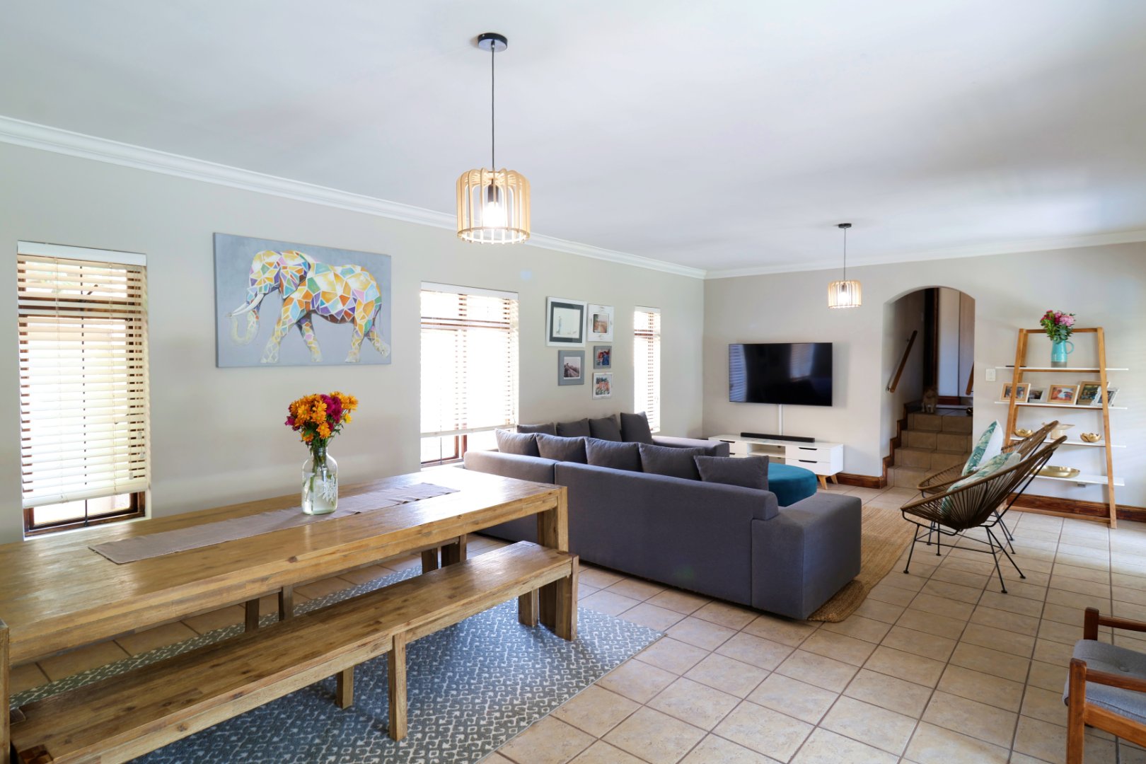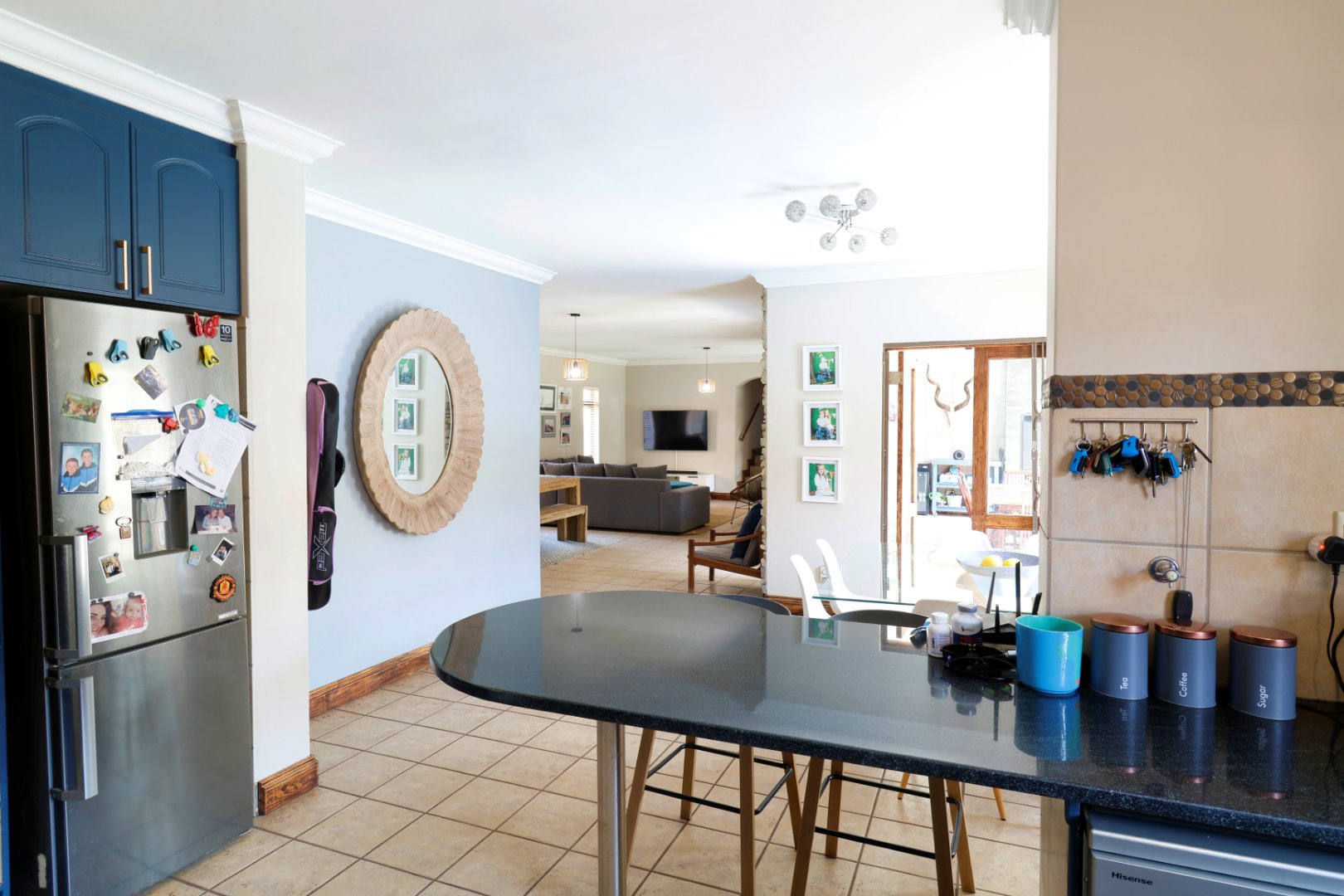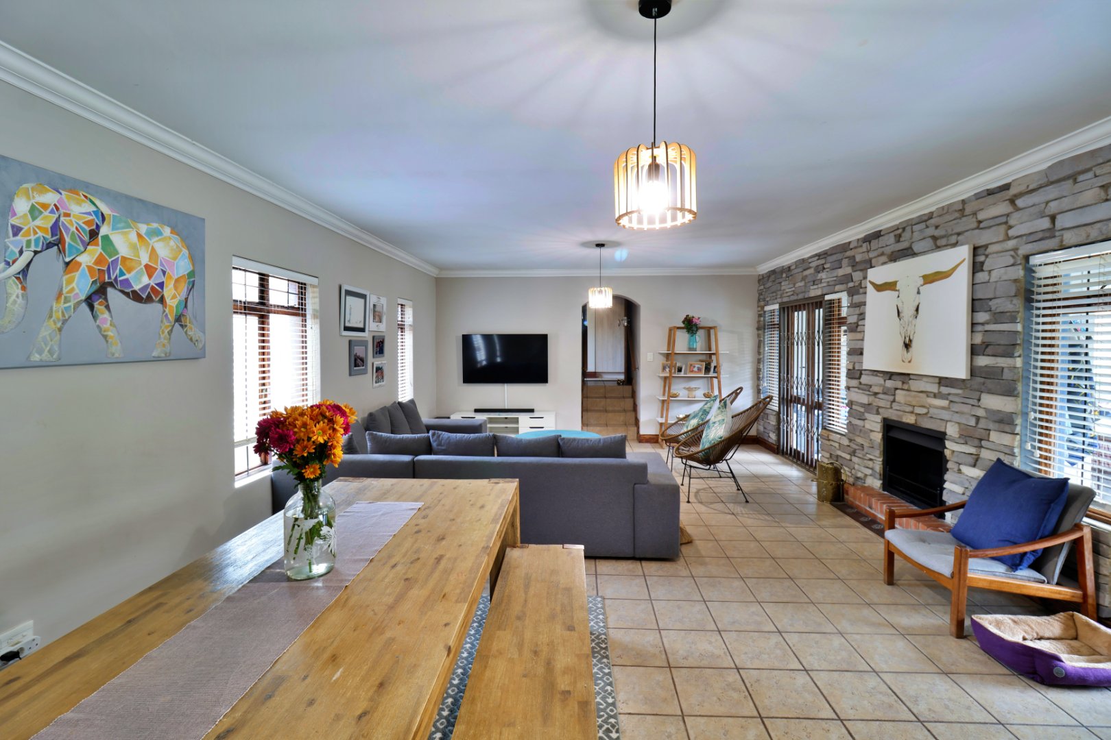 Exclusive Mandate by Real Estate Services. This immaculate 3-bedroom, 2-bathroom house with a study room is situated within a sought-after, well-managed security estate, offering peace of mind, convenience, and timeless appeal. The spacious main bedroom boasts a private ensuite bathroom, while the two additional bedrooms share a full bathroom, making it ideal for families. The heart of the home is its expansive open-plan living space, where a cosy built-in fireplace sets the scene for warm winter evenings. With plenty of room for both a living and dining area, the space flows seamlessly into a modern kitchen featuring a pantry and separate scullery—perfect for both everyday family life and entertaining guests. For those working from home, a private office ensures productivity without compromising on comfort. Step outside and discover a covered patio with a built-in braai overlooking the sparkling pool, where leisure and entertainment blend effortlessly.