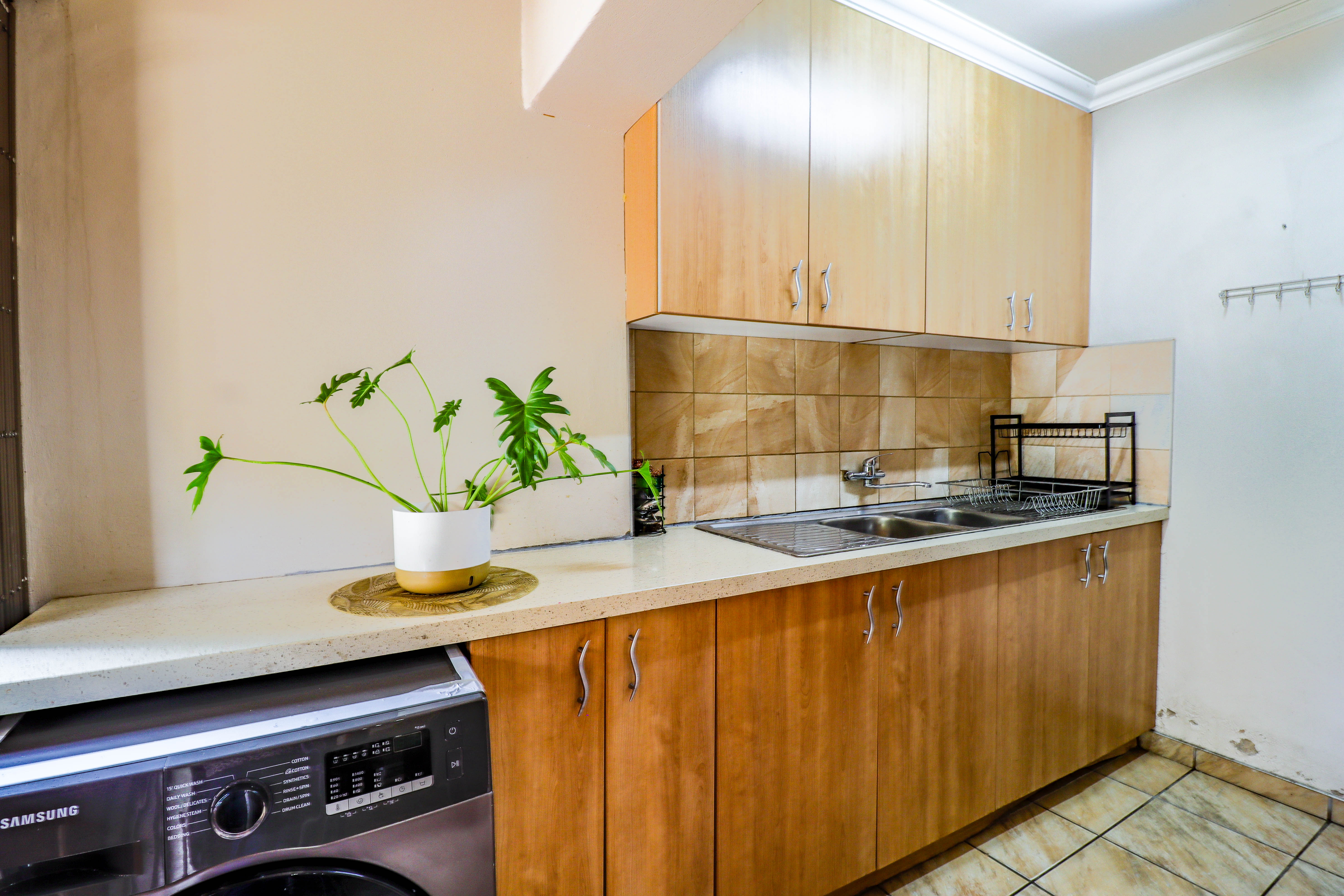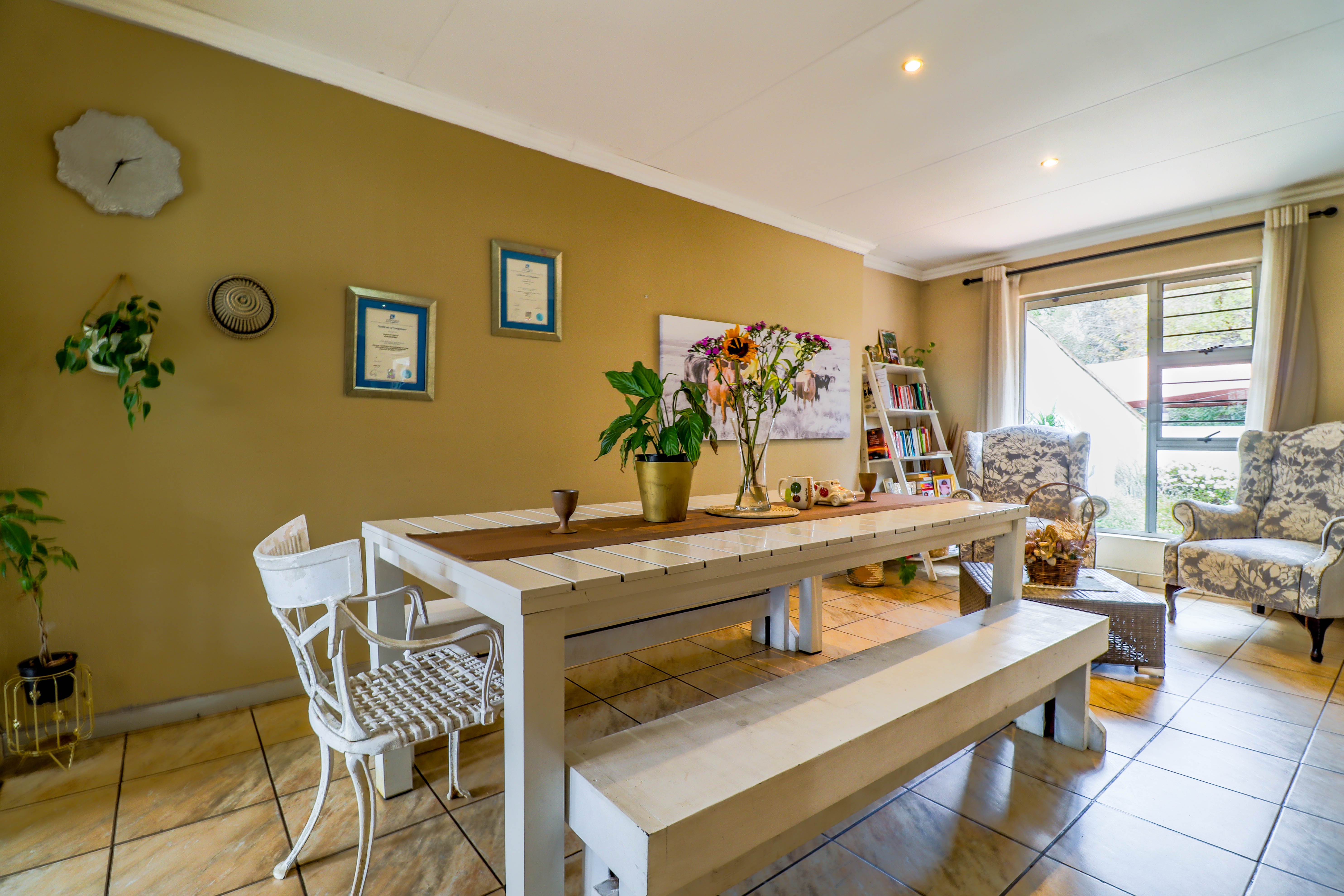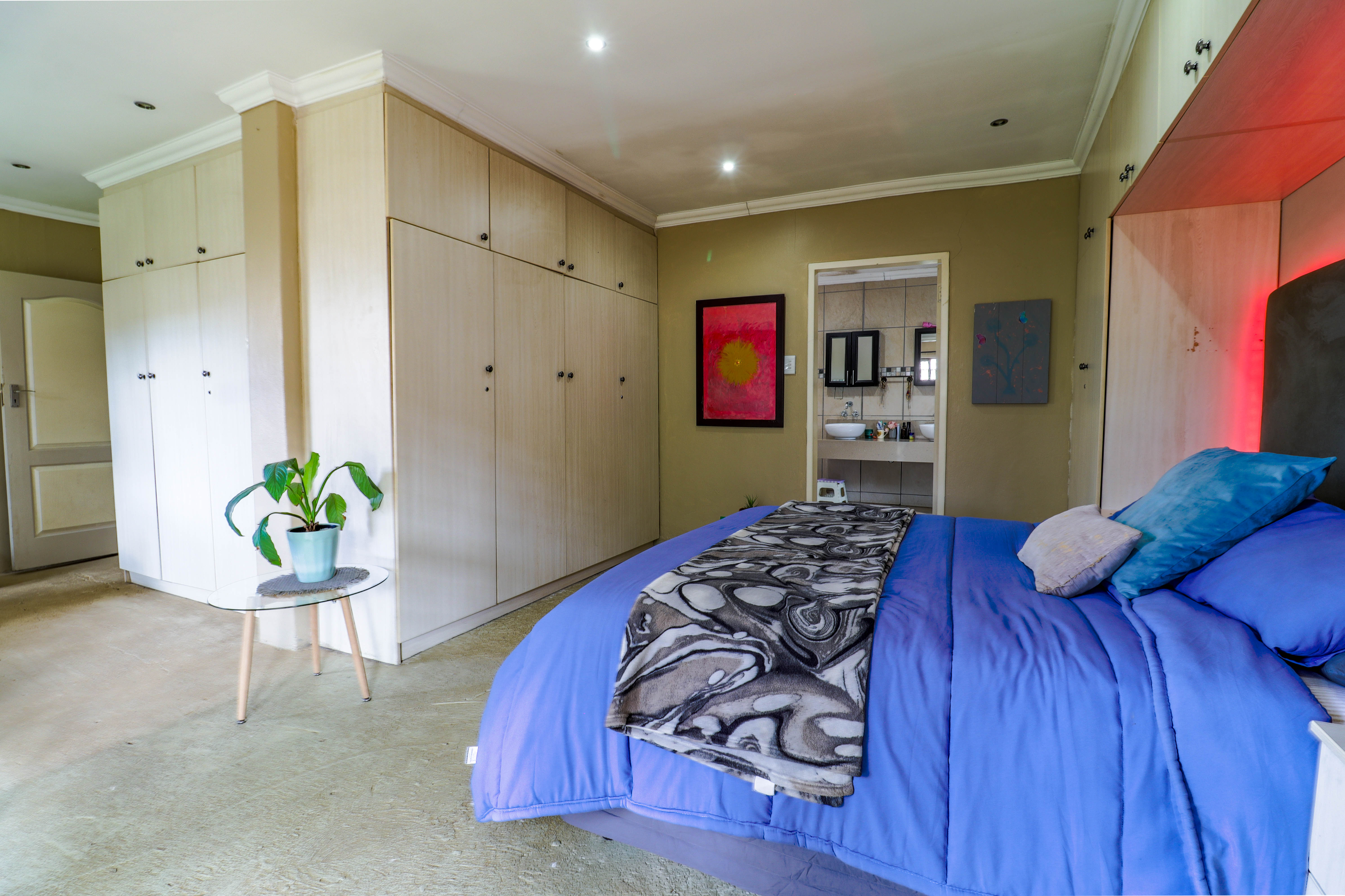 The residential component, also around 200m2, includes three spacious bedrooms, two well-appointed bathrooms, a large lounge and dining area, and a modern kitchen complete with a separate scullery. Additionally, there is a separate laundry room and staff quarters with its own bathroom.