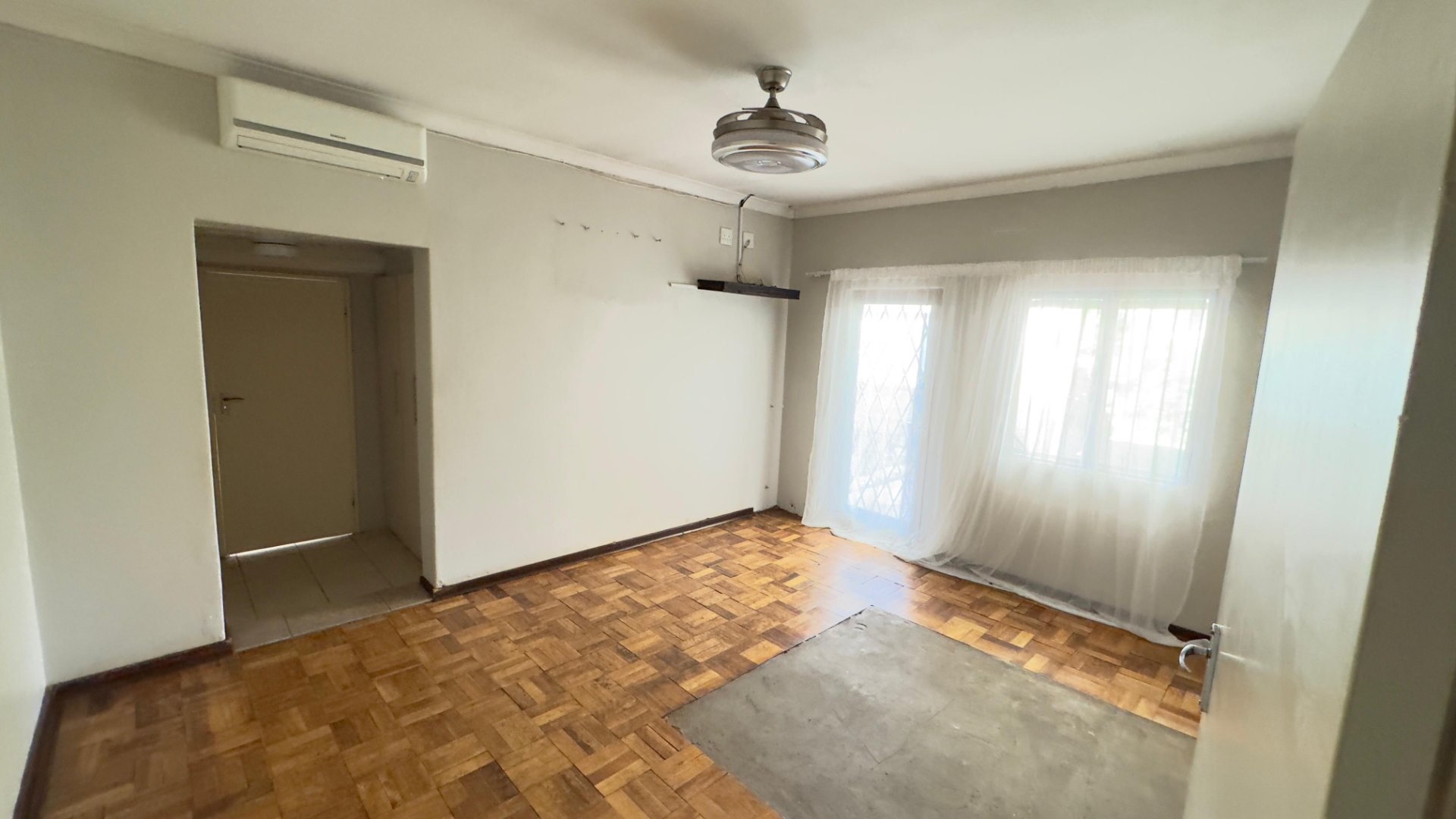 Main Wing: Three spacious double bedrooms, each with garden access – ideal for a guesthouse setup. The main bedroom includes an en-suite bathroom, semi walk-in closet, and air-conditioning. The second bedroom has aircon, and the third features a ceiling fan. A second bathroom serves the remaining rooms.