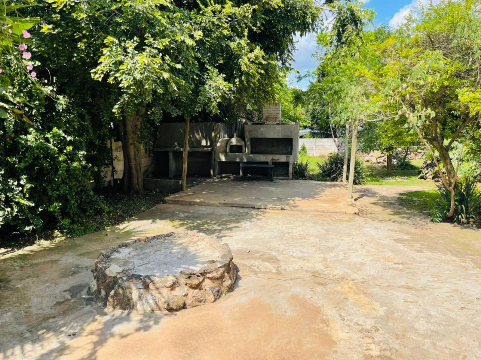The indoor living area opens onto an inviting entertainment and braai area, overlooking a sparkling swimming pool, making it ideal for entertaining guests or enjoying relaxed family time.