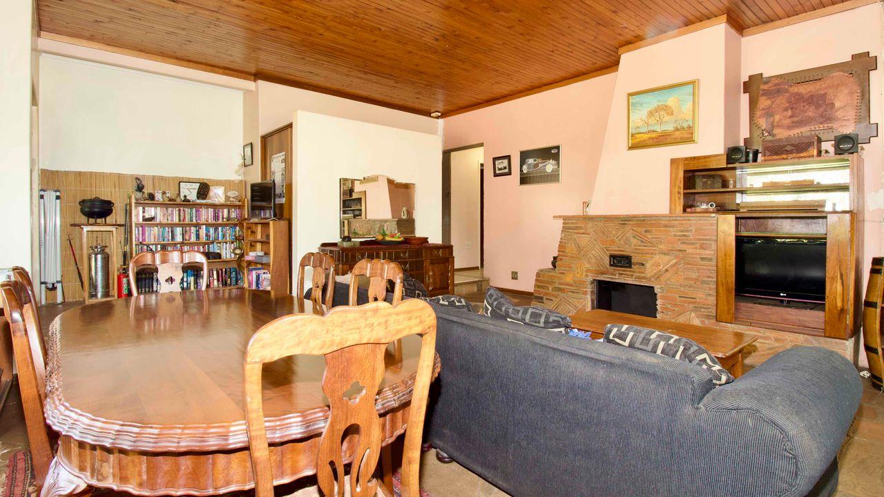 With a large lounge, with wooden fireplace, dining area and a covered patio.