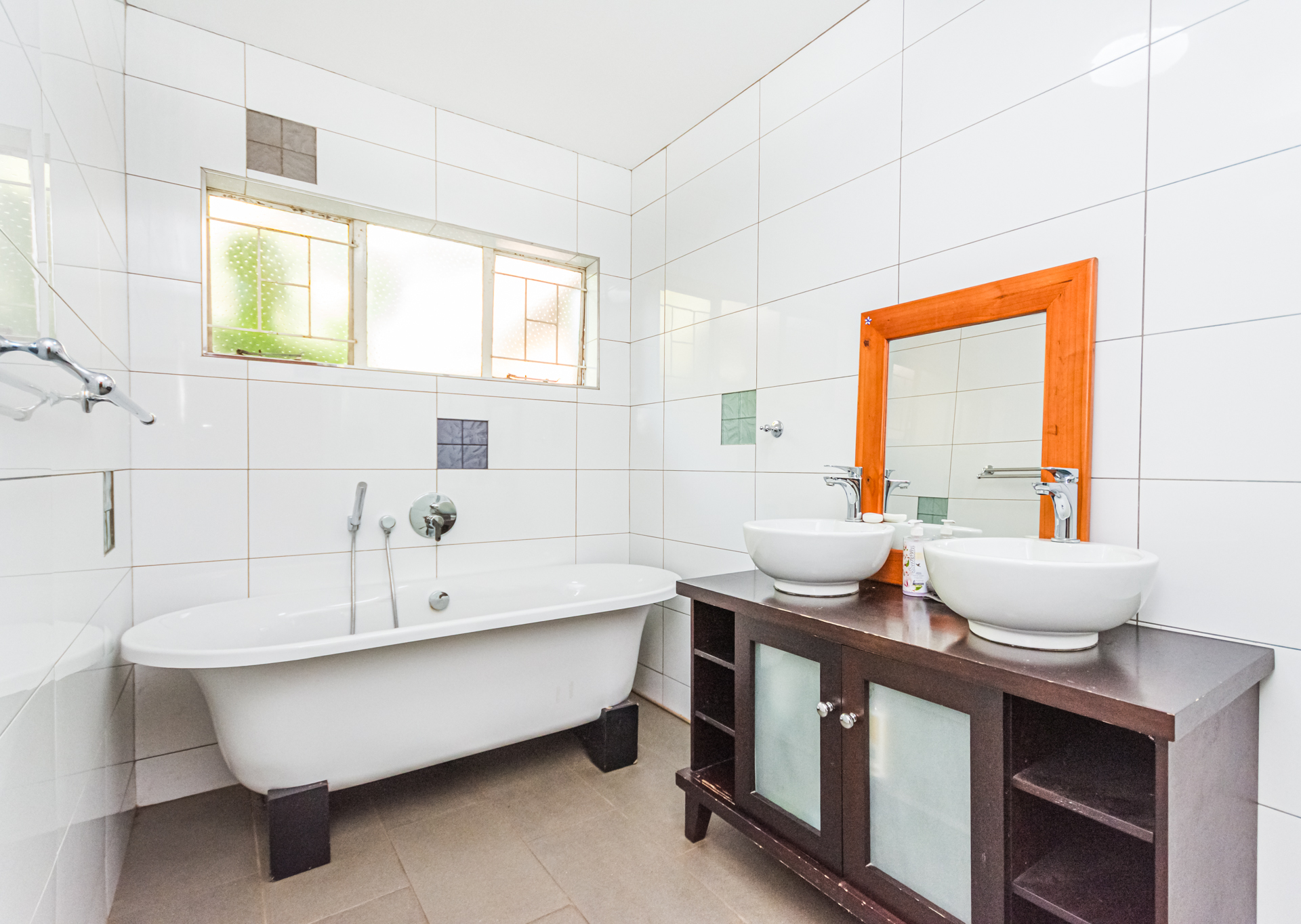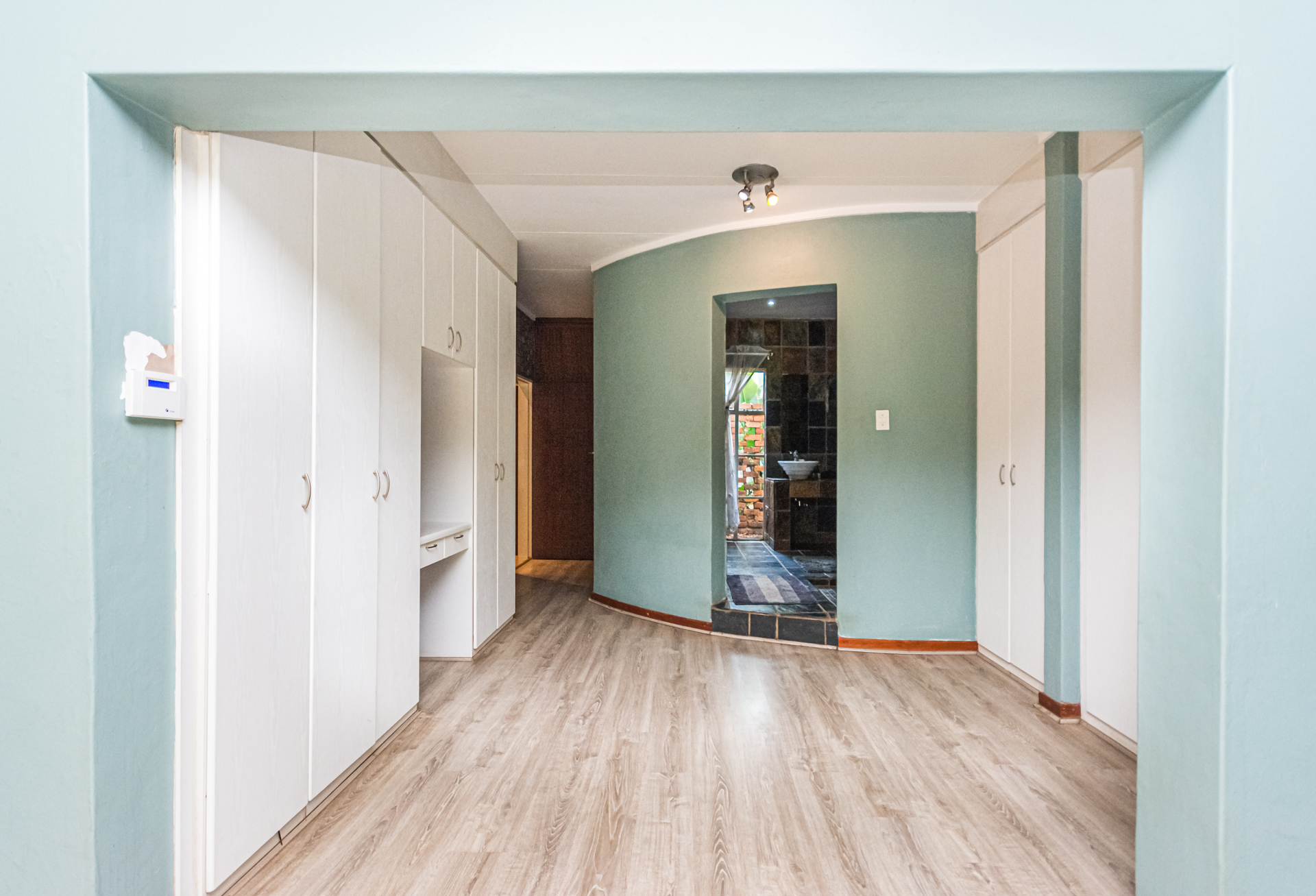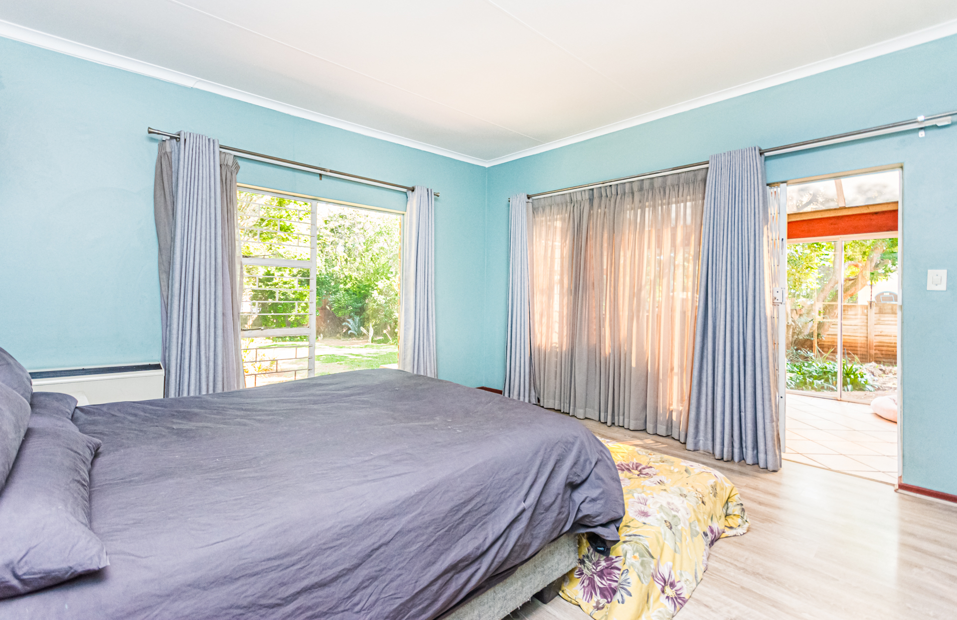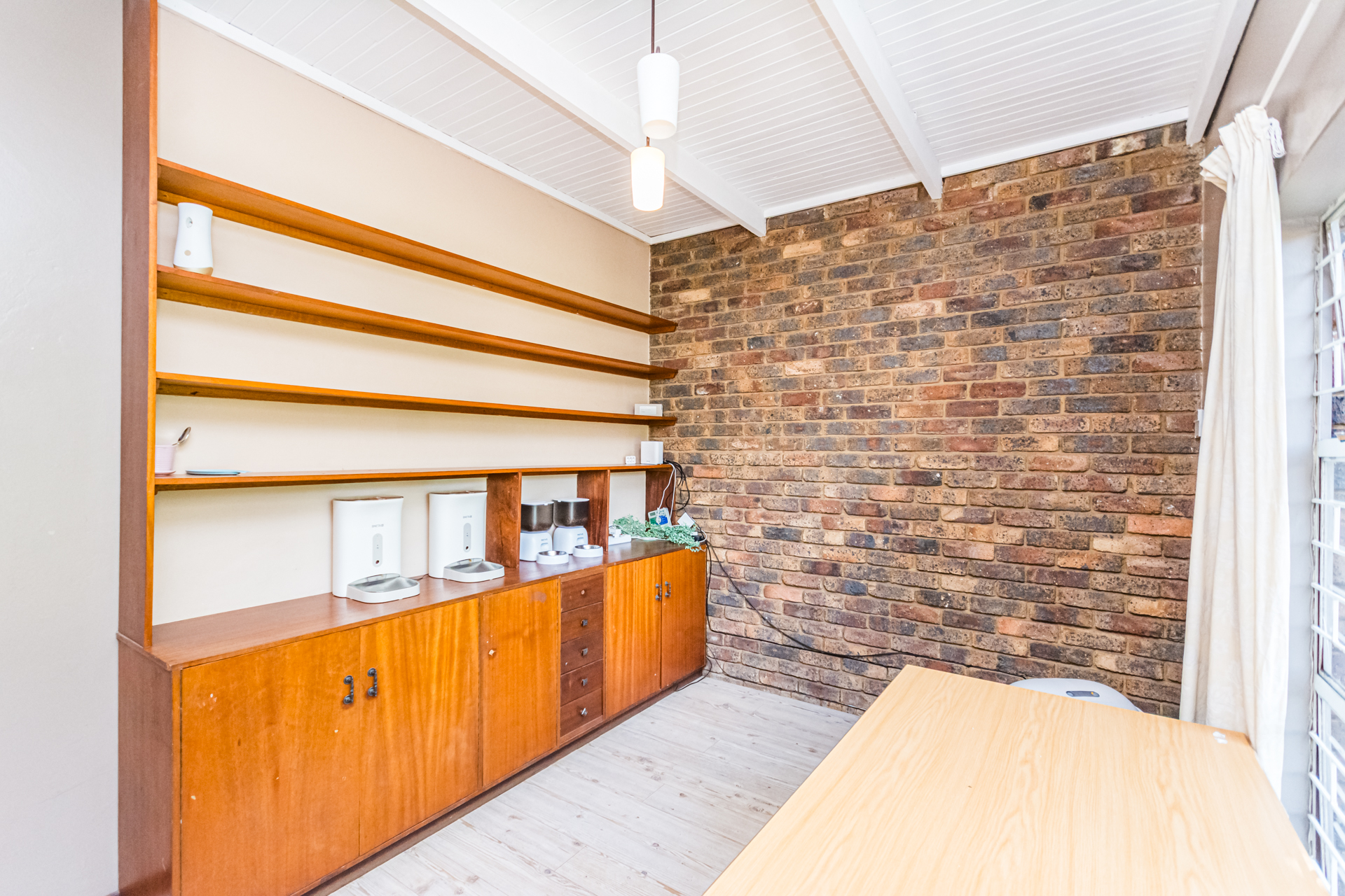 A separate study provides a quiet and comfortable work-from-home space. The home features four spacious double bedrooms, all fitted with built-in cupboards and laminated flooring. The main bedroom is a true retreat, offering generous space and an en-suite bathroom with both a bath and separate shower as well as an aircon. From this beautiful room, you can access a light filled sunroom, with its own glass sliding doors overlooking the garden. The remaining three bedrooms are serviced by a full bathroom, also fitted with a bath and shower, along with an additional separate guest toilet.