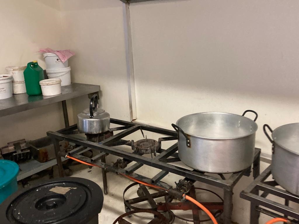 There is a 15m2 walk in fridge inside with bakery. The sale also including ovens, gas burners, work surfaces, and standing fridges. Water and electricity measured on prepaid meters.