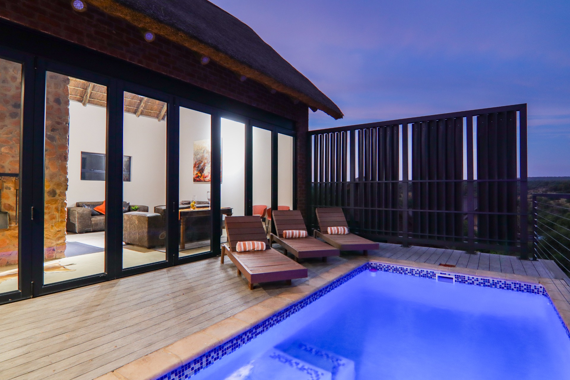 The lodge is situated in the Mabalingwe Big Five Game reserve of 8800 hectares. The lodge is approximately one hour and forty five minutes drive north of Pretoria and very close to Elements and Zebula Golf Reserves. The reserve is home to all major plains game species, all of which are free roaming including ( Except for Lions which are in a predator camp) Rhino, Elephant, Buffalo, Hippo , Leopard, Giraffe, Sable, Blue Wildebeest, Zebra , Impala, Nyala , Waterbuck, Warthog, Bush pig, duiker, Red Hartebeest, Blesbuck, Mountain Reed Buck, Klipspringer, Duiker, Steenbok, Pangolin, Aardvark, Aardwolf, Mongoose, Porcupine, Scrub Hare, Jackal etc.