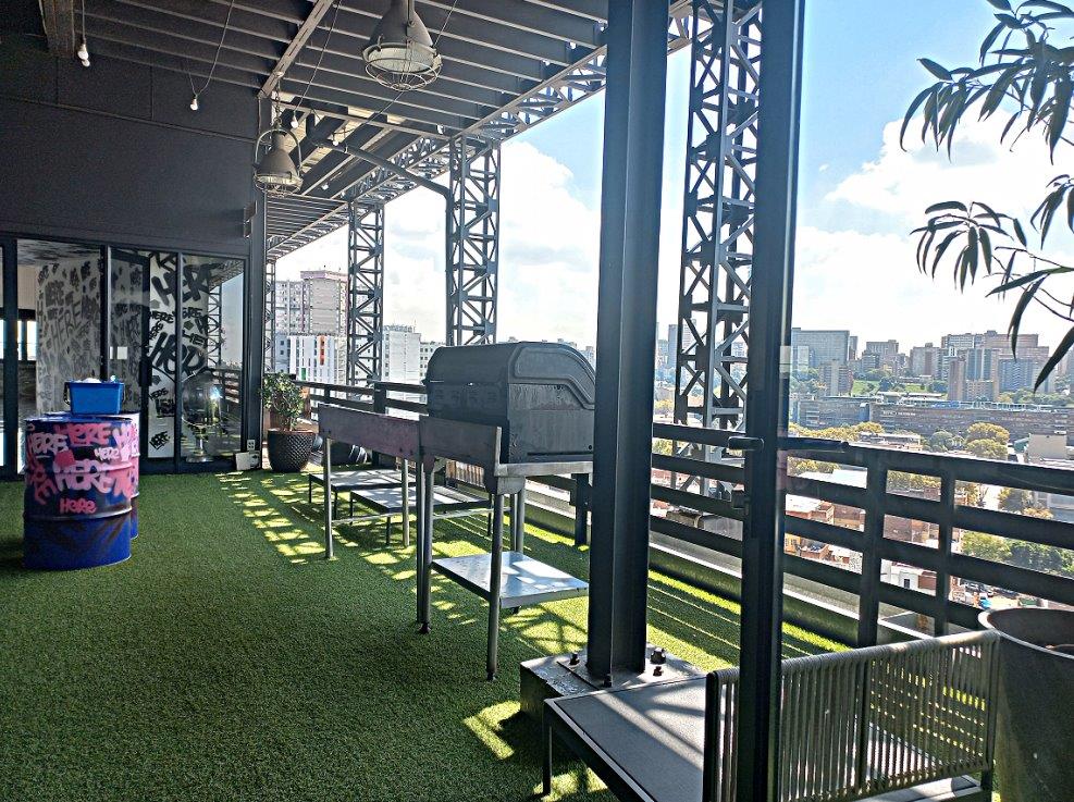This urban style apartment, with amazing views of Johannesburg from your private balcony, is situated at Hallmark House with its onsite bar, cafe and barber. It is within easy walking distance for the hip and vibrant heart of Maboneng and is ideal for a young professional or couple starting out.