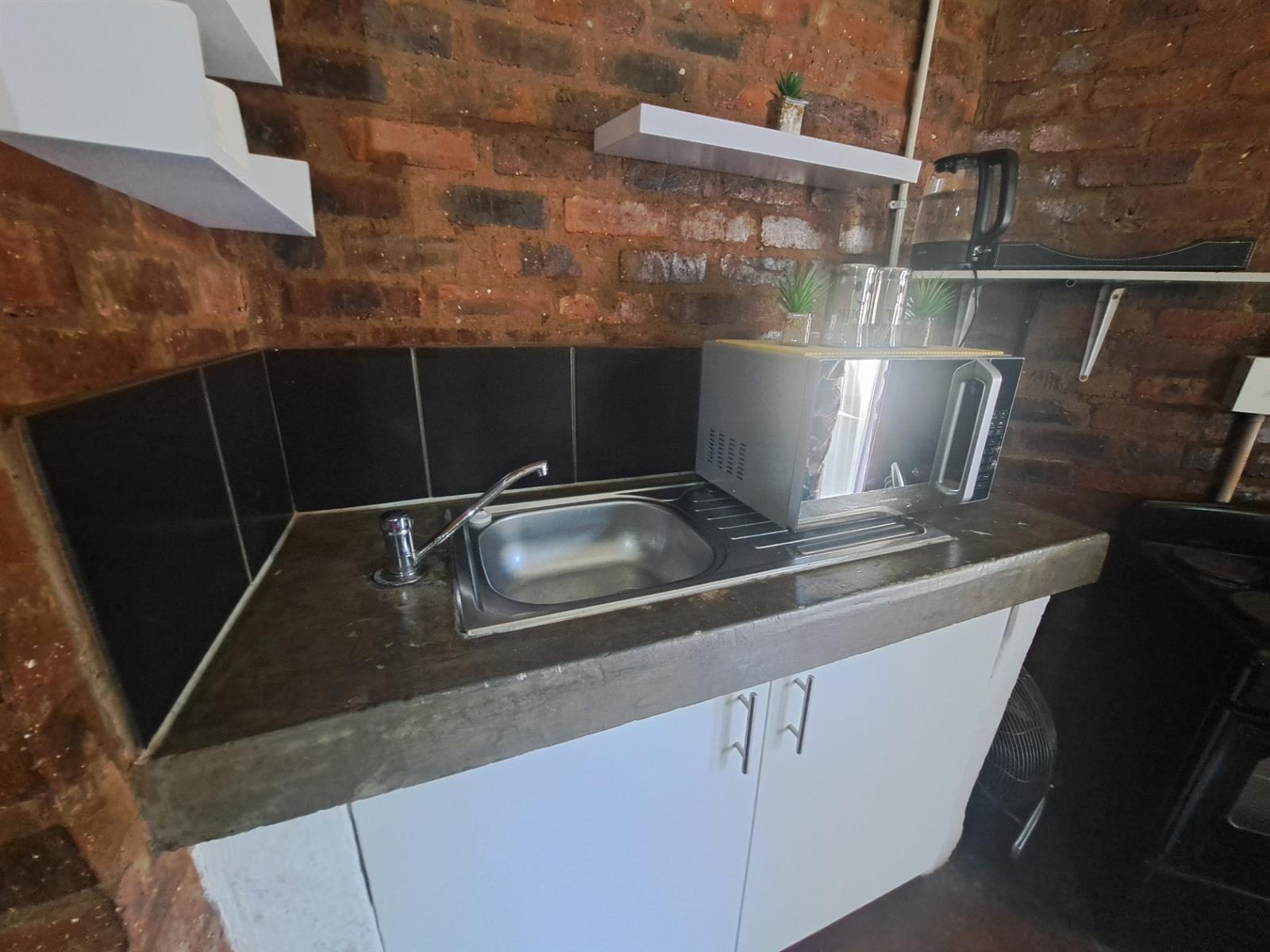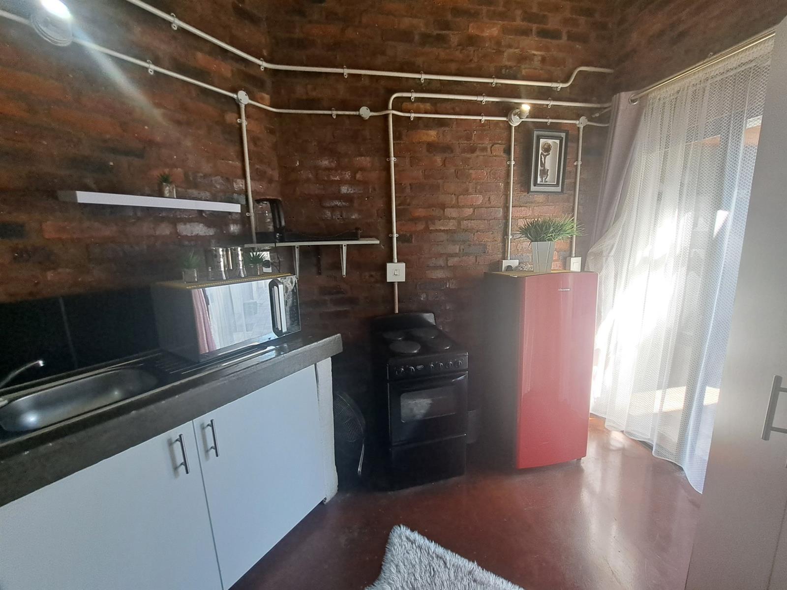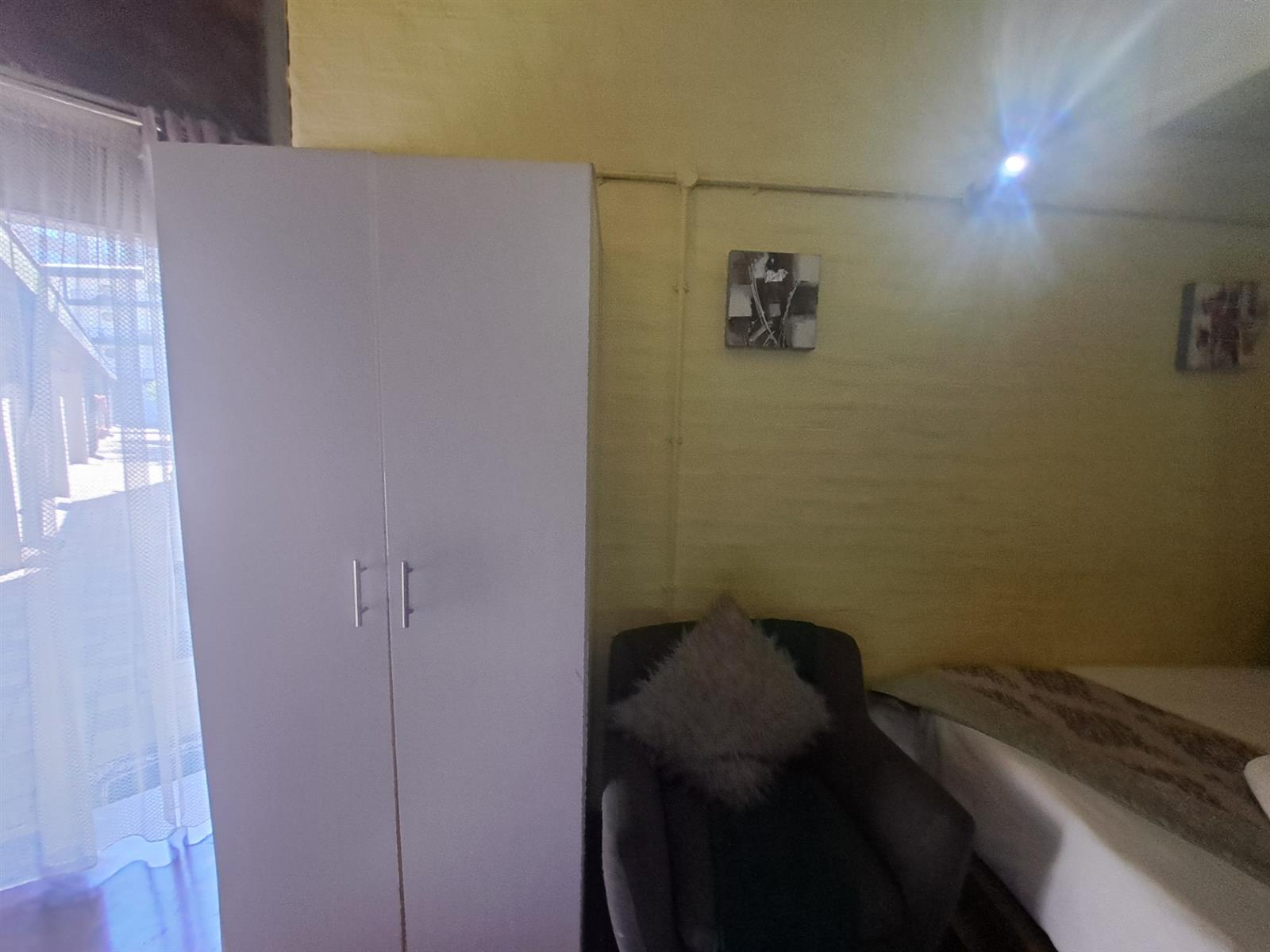 This is a ground floor unit at the back of the property. It comes fully furnished as per photos (excluding bedding). The apartment has an open-plan lounge and kitchen. In the lounge you will find a sofa/bed, a table with two chairs, a wardrobe and a study desk. The kitchenette includes a sink with cupboard, microwave/oven, small bar fridge and shelves. The bathroom is at the back. This is a non-smoking unit. The building has a laundromat and a swimming pool. Parking can be arranged with the caretaker.