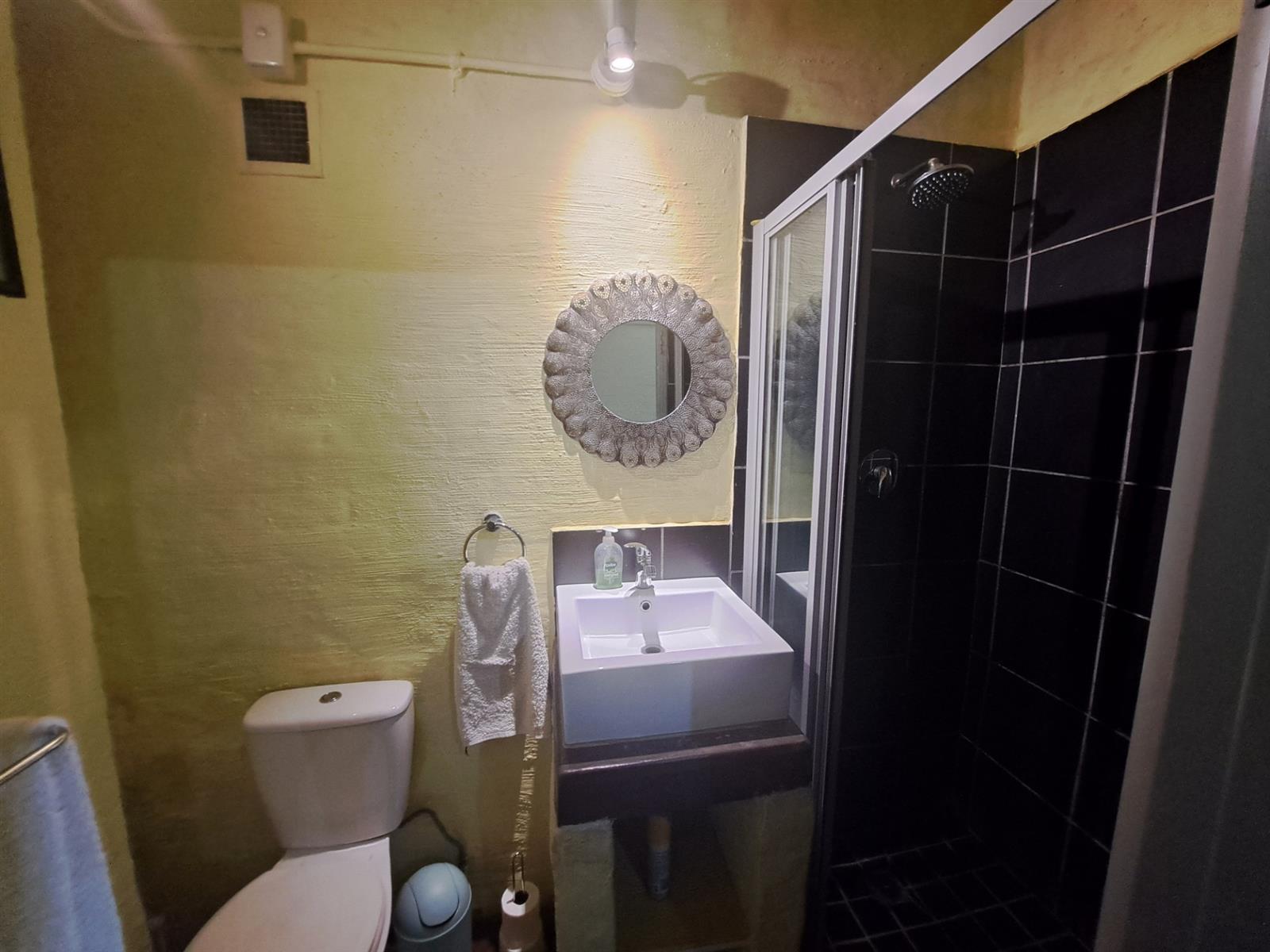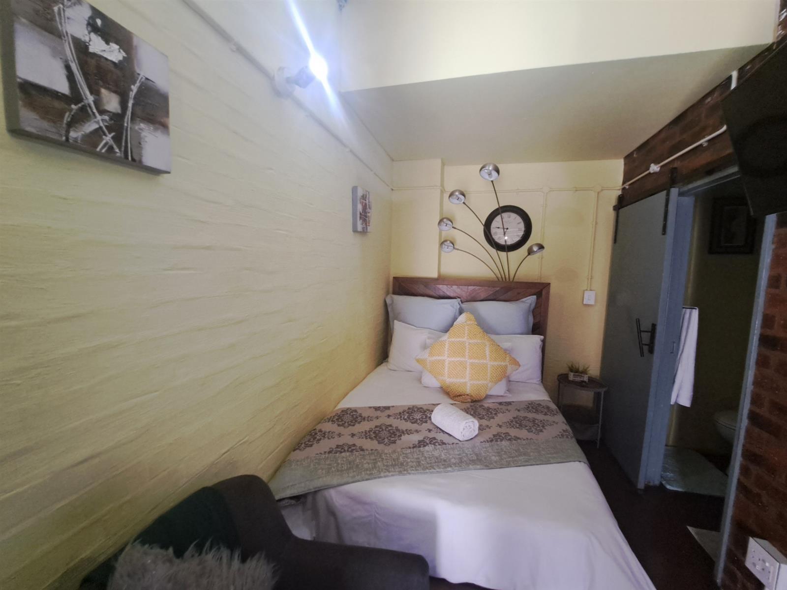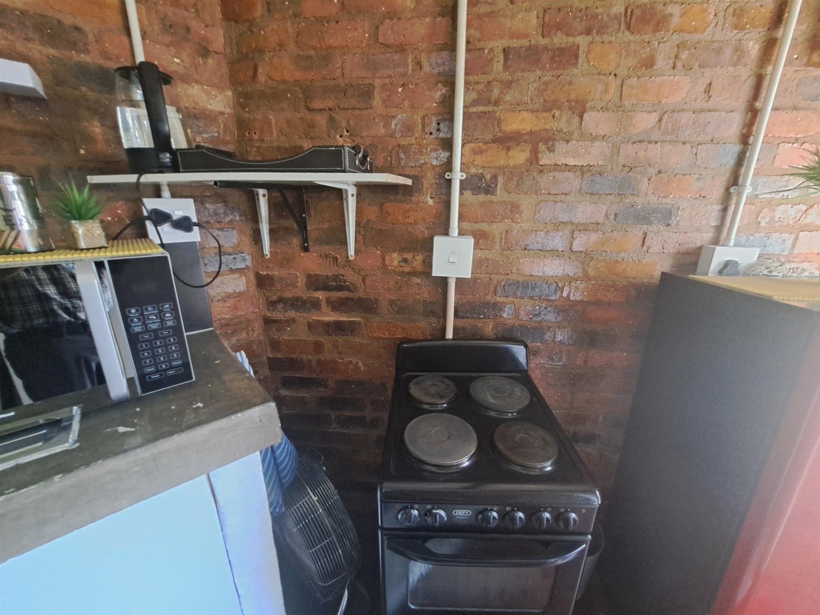 This is a ground floor unit at the back of the property. It comes fully furnished as per photos (excluding bedding). The apartment has an open-plan lounge and kitchen. In the lounge you will find a sofa/bed, a table with two chairs, a wardrobe and a study desk. The kitchenette includes a sink with cupboard, microwave/oven, small bar fridge and shelves. The bathroom is at the back. This is a non-smoking unit. The building has a laundromat and a swimming pool. Parking can be arranged with the caretaker.
