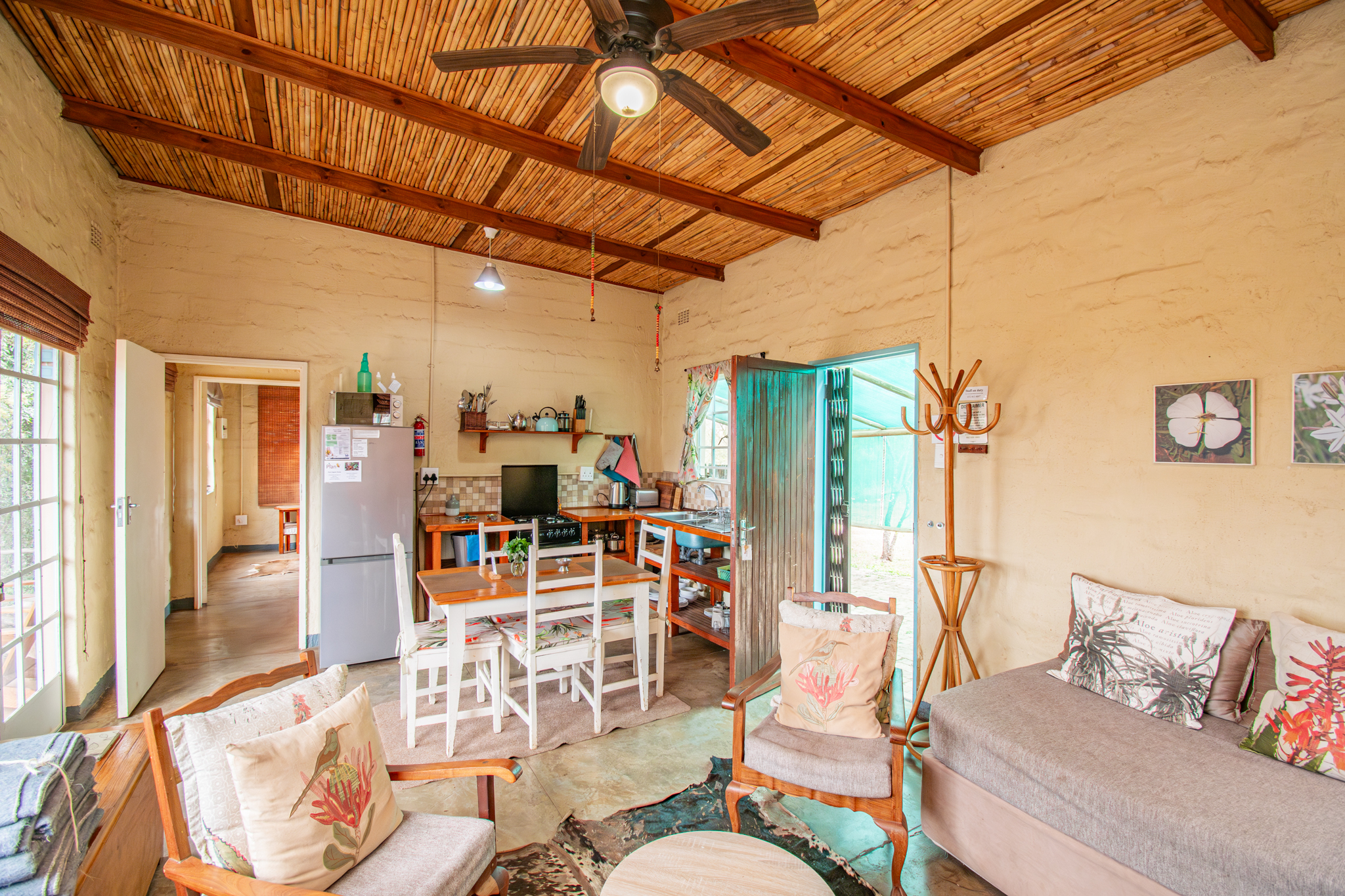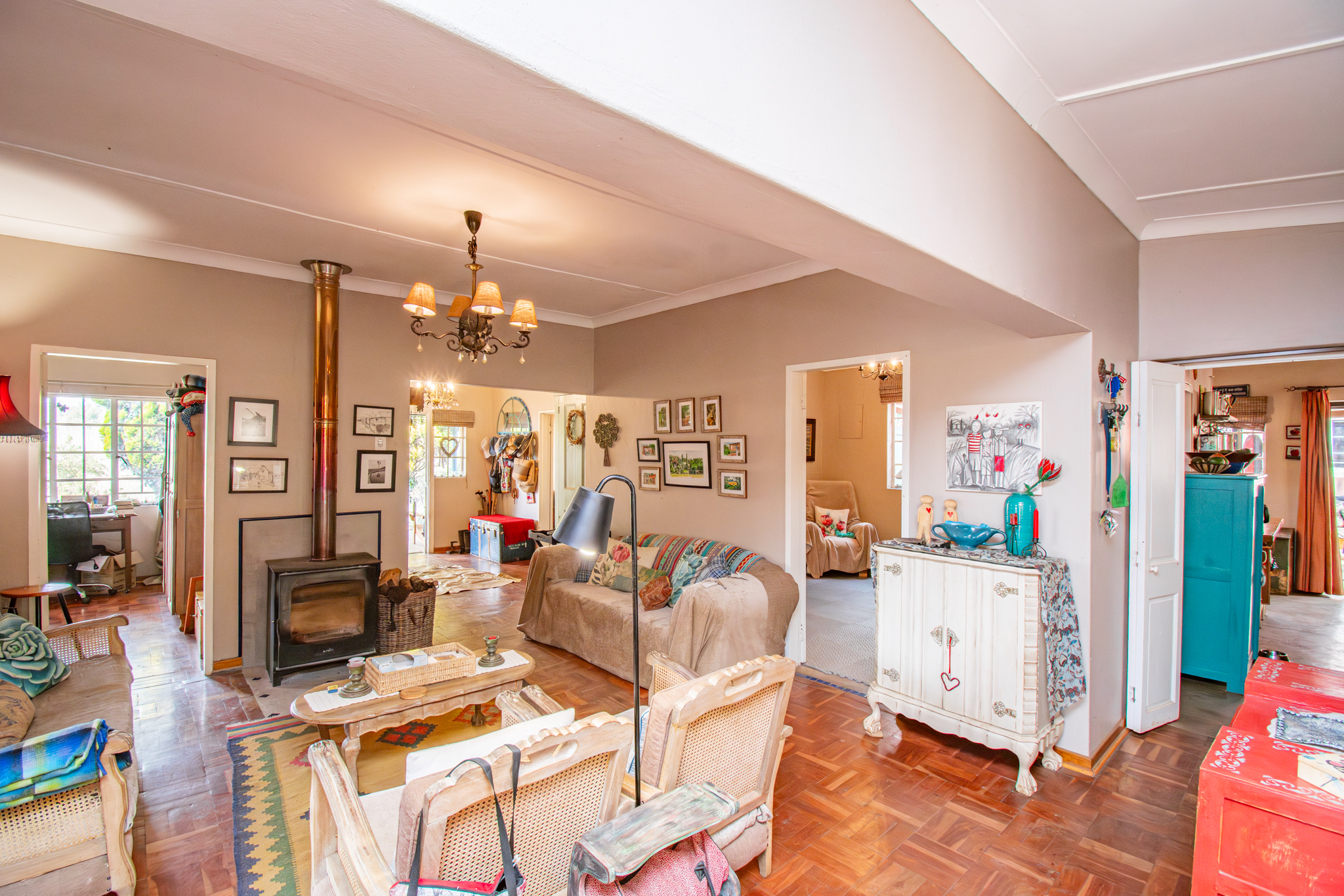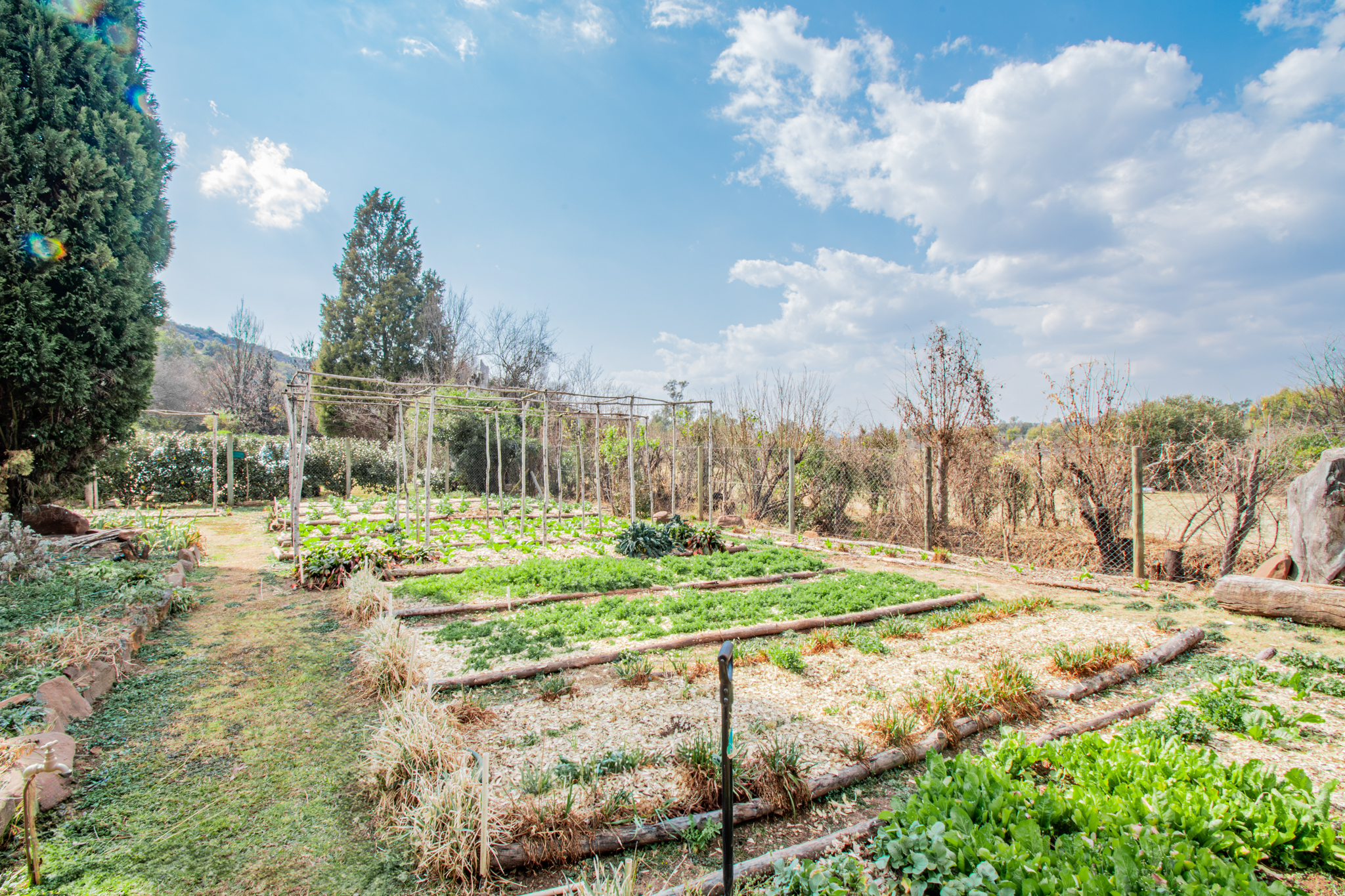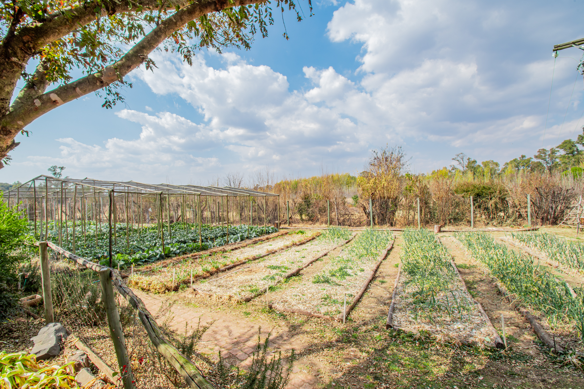 This is a property where passion and purpose meet. The owners have lovingly poured their hearts into every aspect of this farm over the past 20 years — and you can feel it from the moment you arrive. From the restored 1940s farmhouse to the carefully nurtured gardens and character-filled guest cottages, this is a place built with care, soul, and vision. At the centre of the property lies the beautifully restored original farmhouse, filled with timeless character and warmth. It features a welcoming entrance hall, two cozy fireplaces, a comfortable lounge, three bedrooms, two bathrooms, a generous dining room, and a traditional farm-style kitchen. Private lounge can be uitilsed as a fourth bedroom. The large undercover patio with built-in braai overlooks manicured gardens, peaceful patios, and layered terraces framed by hedges — perfect for slow mornings or long summer evenings. Set within a lush landscape, this property offers fertile, arable land – approximately 4 hectares, ideal for organic farming, grazing, or expansion. The organic vegetable gardens are already thriving — a testament to sustainable living. And with a greenhouse to boot, you can prepare for summer planting.