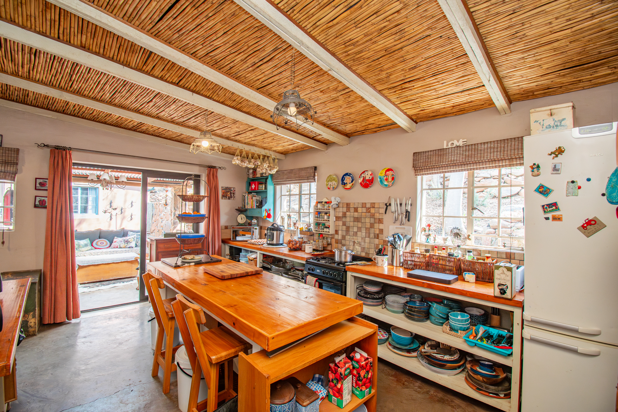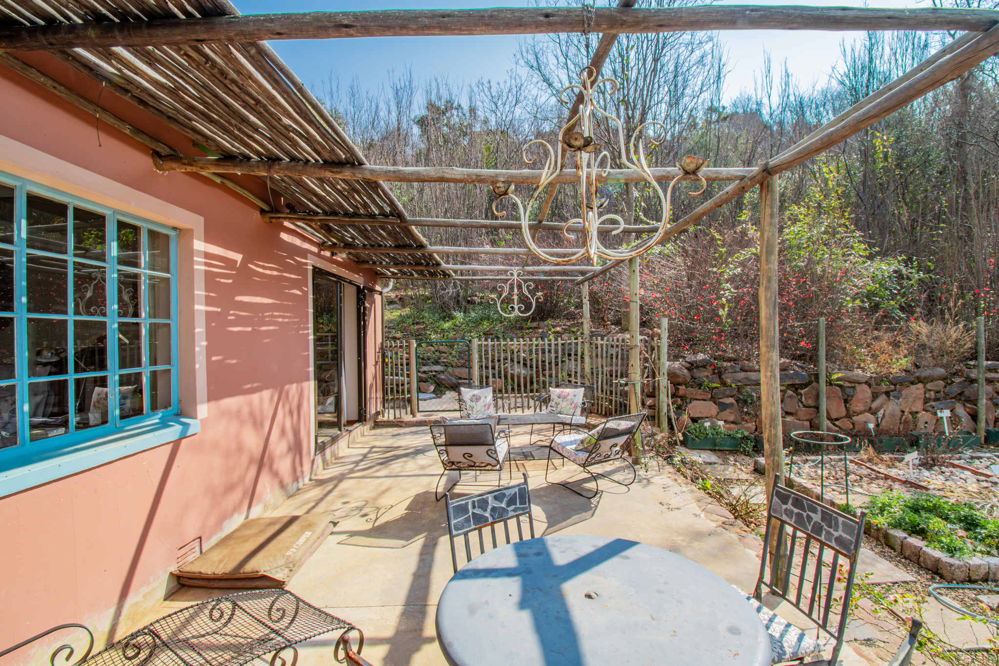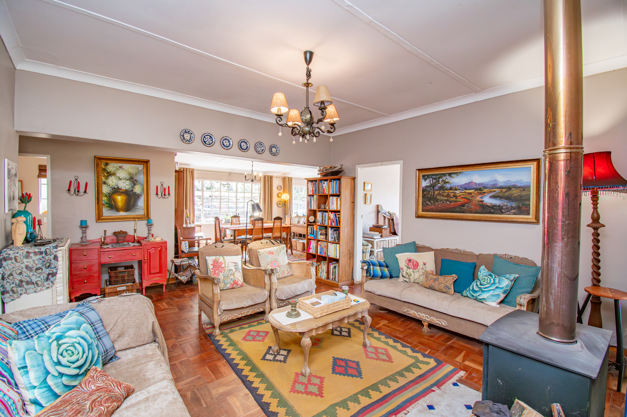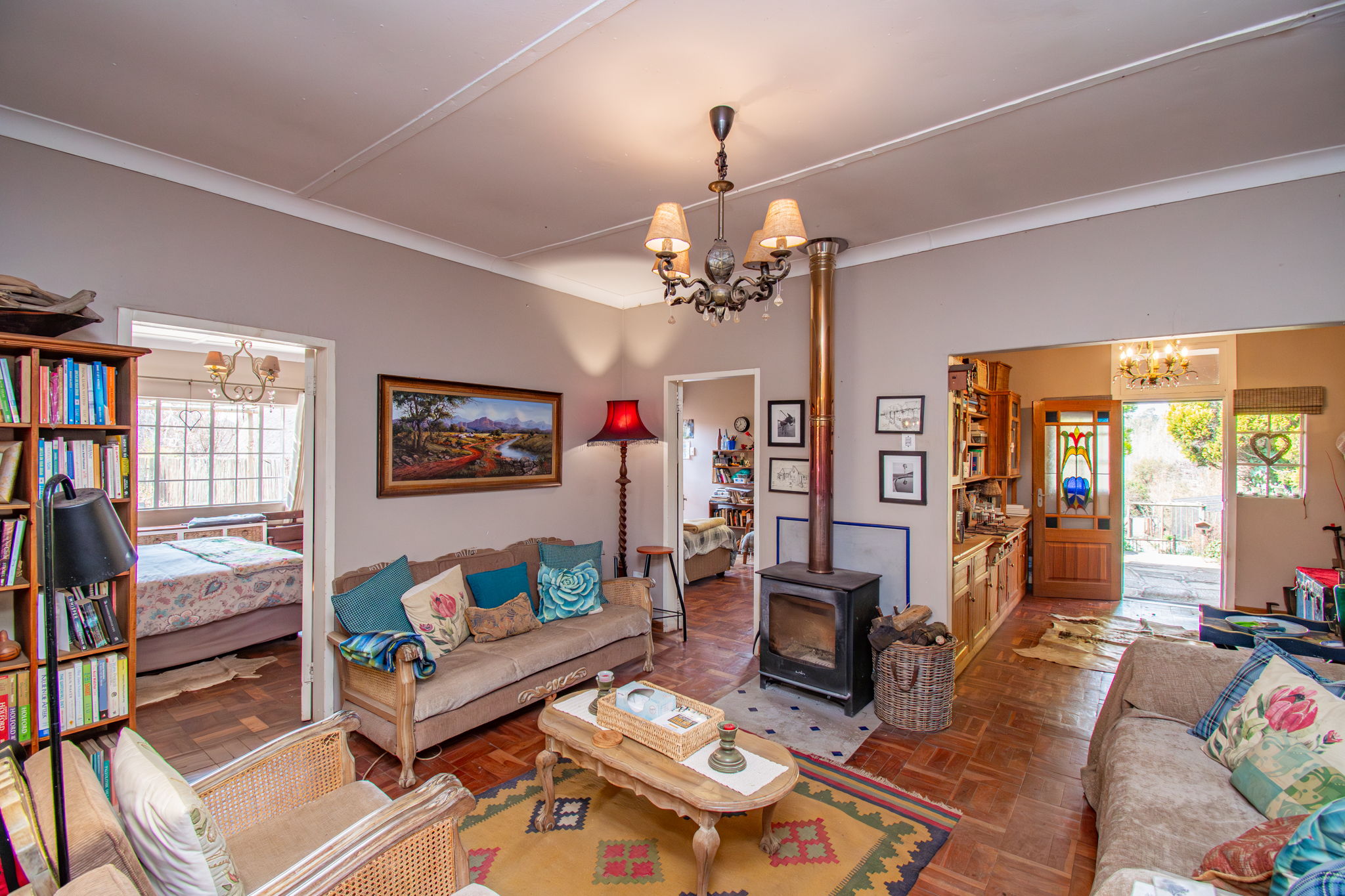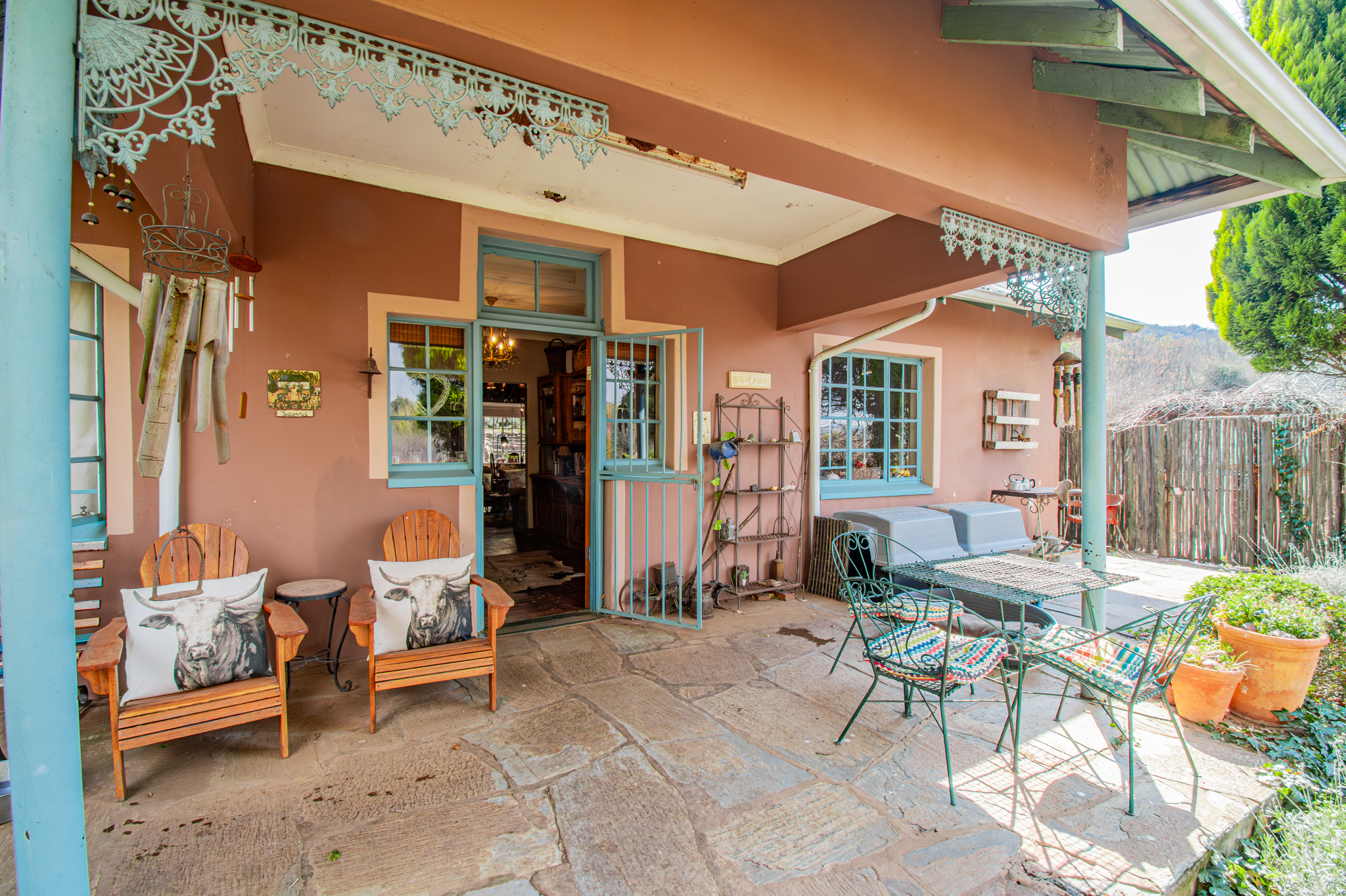 This is a property where passion and purpose meet. The owners have lovingly poured their hearts into every aspect of this farm over the past 20 years — and you can feel it from the moment you arrive. From the restored 1940s farmhouse to the carefully nurtured gardens and character-filled guest cottages, this is a place built with care, soul, and vision. At the centre of the property lies the beautifully restored original farmhouse, filled with timeless character and warmth. It features a welcoming entrance hall, two cozy fireplaces, a comfortable lounge, three bedrooms, two bathrooms, a generous dining room, and a traditional farm-style kitchen. Private lounge can be uitilsed as a fourth bedroom. The large undercover patio with built-in braai overlooks manicured gardens, peaceful patios, and layered terraces framed by hedges — perfect for slow mornings or long summer evenings. Set within a lush landscape, this property offers fertile, arable land – approximately 4 hectares, ideal for organic farming, grazing, or expansion. The organic vegetable gardens are already thriving — a testament to sustainable living. And with a greenhouse to boot, you can prepare for summer planting.