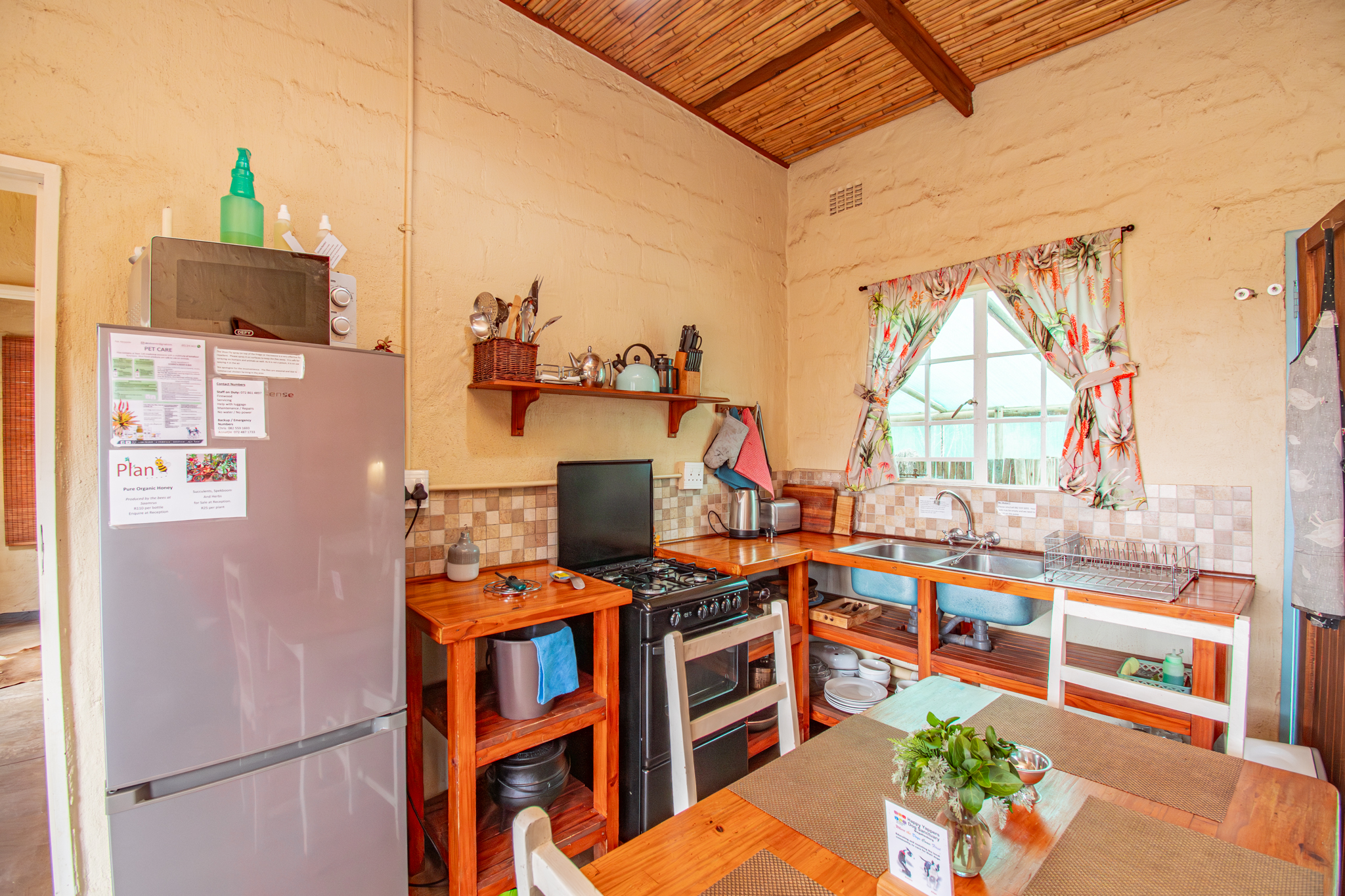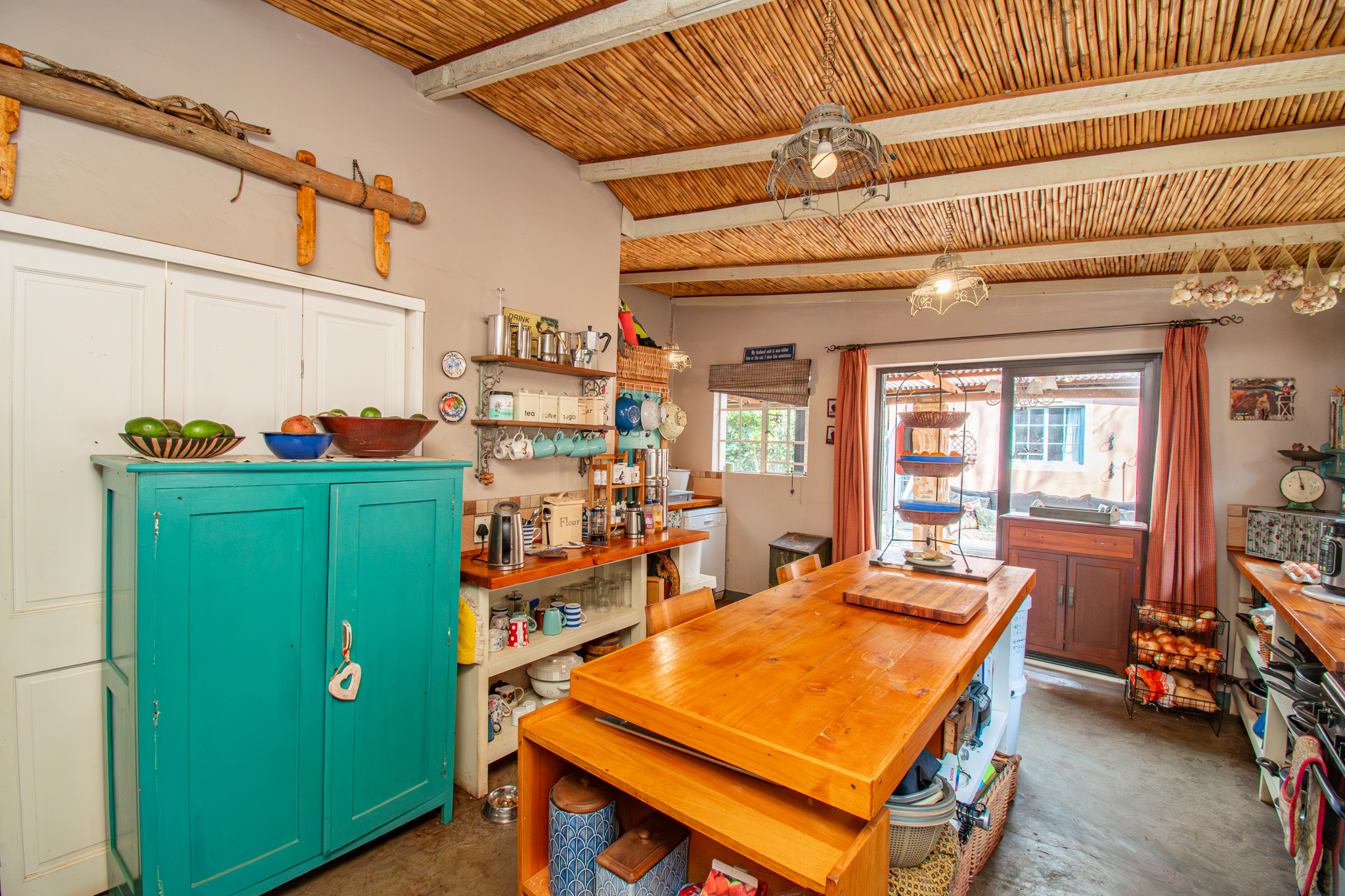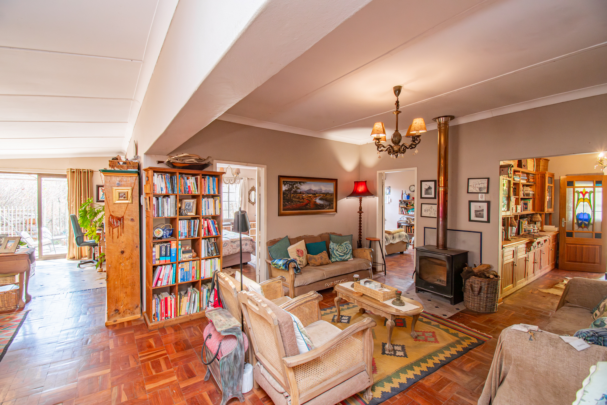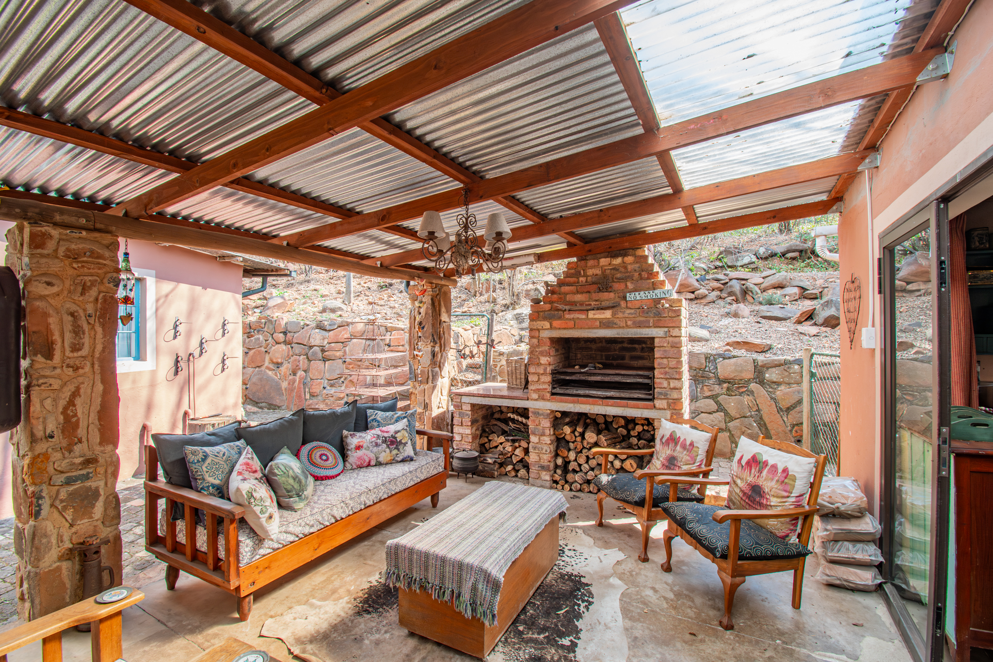 This is a property where passion and purpose meet. The owners have lovingly poured their hearts into every aspect of this farm over the past 20 years — and you can feel it from the moment you arrive. From the restored 1940s farmhouse to the carefully nurtured gardens and character-filled guest cottages, this is a place built with care, soul, and vision. At the centre of the property lies the beautifully restored original farmhouse, filled with timeless character and warmth. It features a welcoming entrance hall, two cozy fireplaces, a comfortable lounge, three bedrooms, two bathrooms, a generous dining room, and a traditional farm-style kitchen. Private lounge can be uitilsed as a fourth bedroom. The large undercover patio with built-in braai overlooks manicured gardens, peaceful patios, and layered terraces framed by hedges — perfect for slow mornings or long summer evenings. Set within a lush landscape, this property offers fertile, arable land – approximately 4 hectares, ideal for organic farming, grazing, or expansion. The organic vegetable gardens are already thriving — a testament to sustainable living. And with a greenhouse to boot, you can prepare for summer planting.