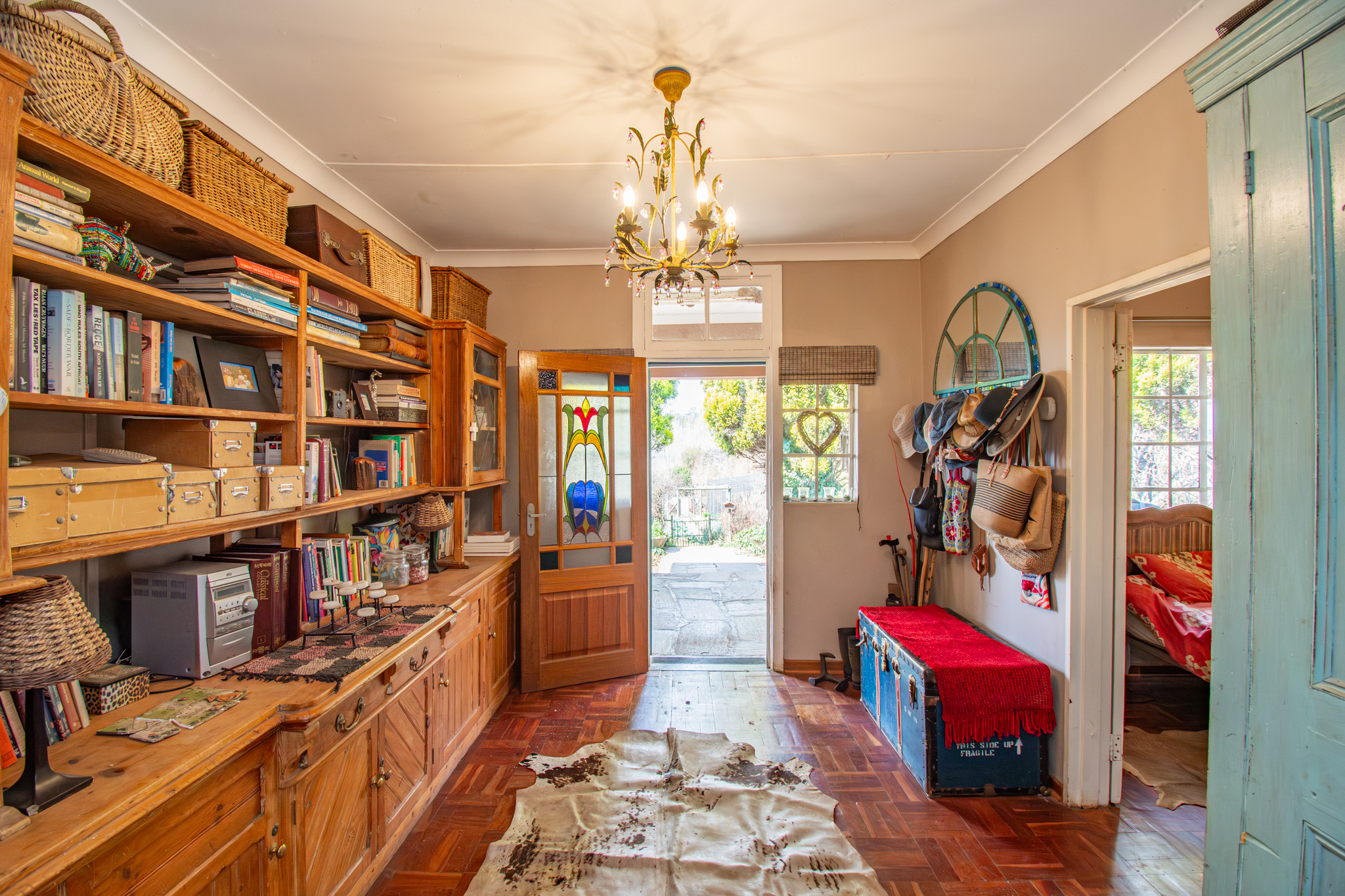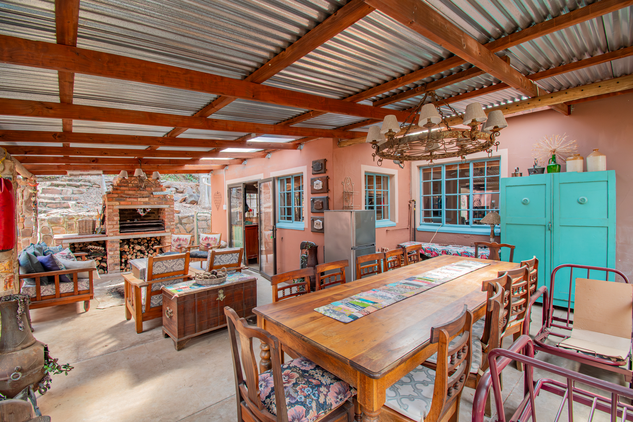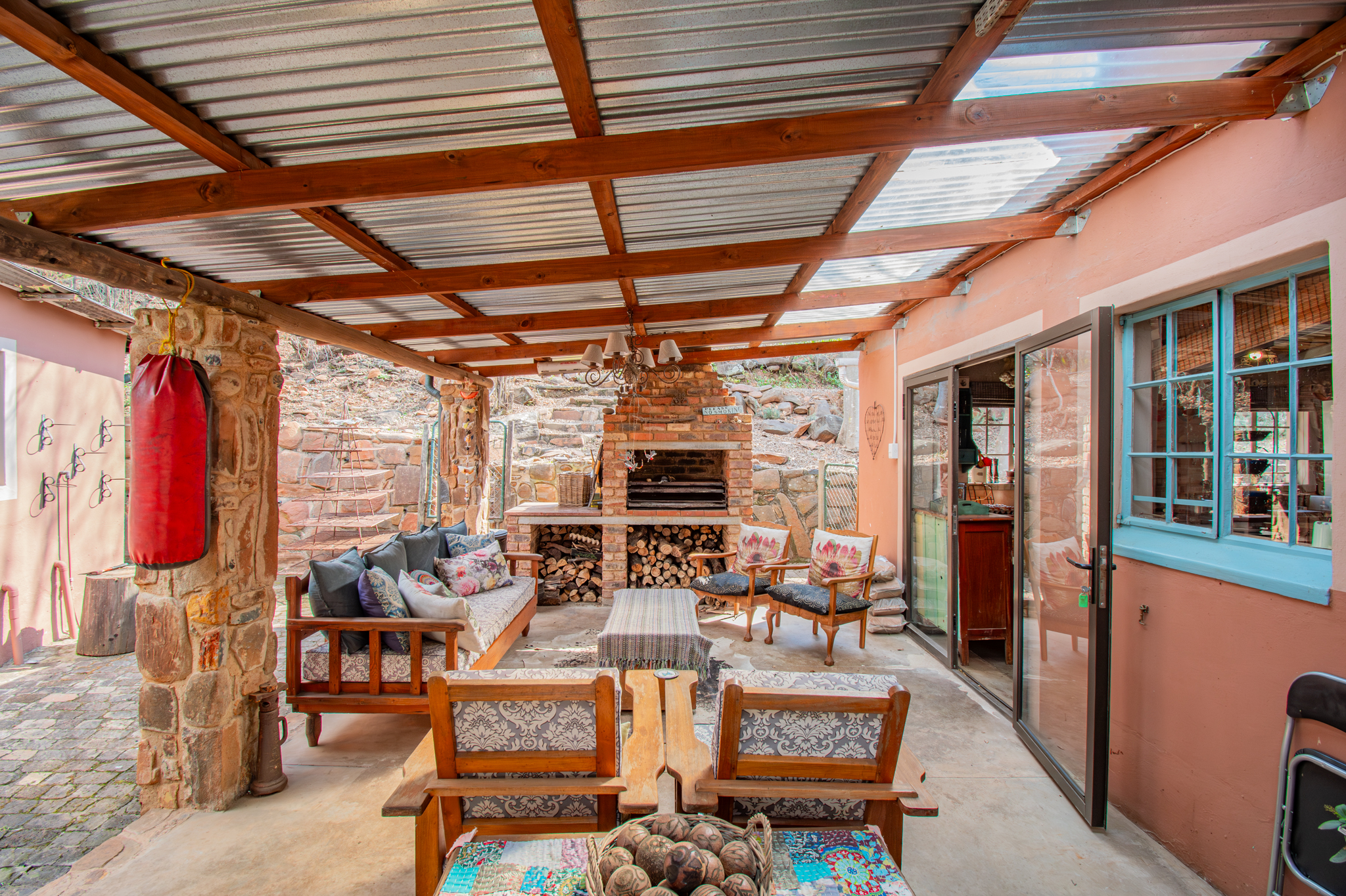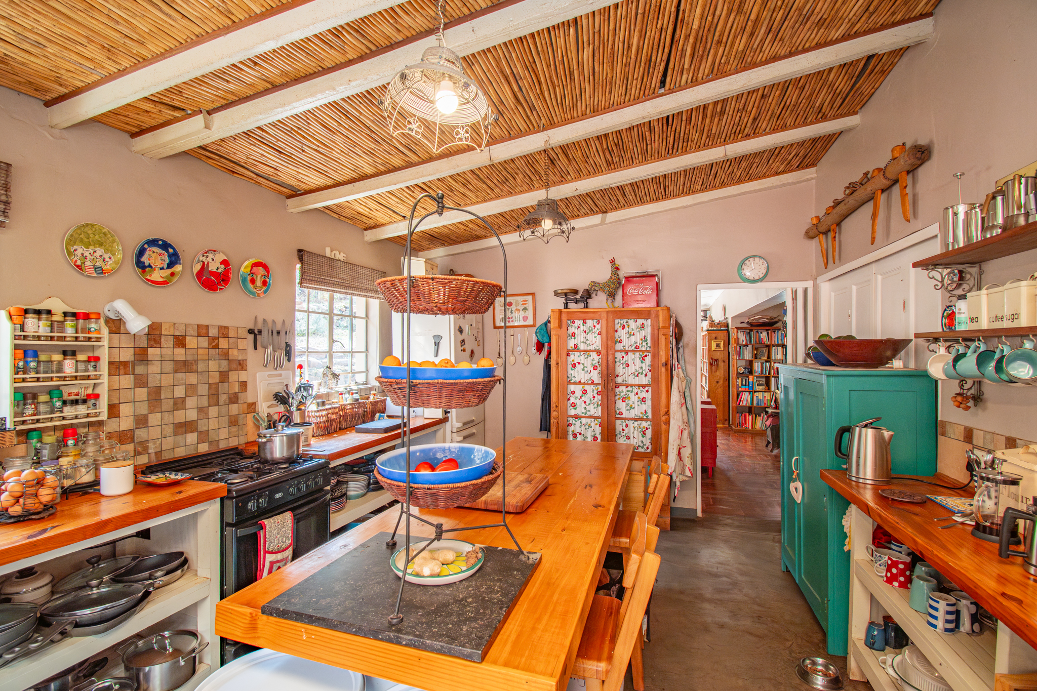 This is a property where passion and purpose meet. The owners have lovingly poured their hearts into every aspect of this farm over the past 20 years — and you can feel it from the moment you arrive. From the restored 1940s farmhouse to the carefully nurtured gardens and character-filled guest cottages, this is a place built with care, soul, and vision. At the centre of the property lies the beautifully restored original farmhouse, filled with timeless character and warmth. It features a welcoming entrance hall, two cozy fireplaces, a comfortable lounge, three bedrooms, two bathrooms, a generous dining room, and a traditional farm-style kitchen. Private lounge can be uitilsed as a fourth bedroom. The large undercover patio with built-in braai overlooks manicured gardens, peaceful patios, and layered terraces framed by hedges — perfect for slow mornings or long summer evenings. Set within a lush landscape, this property offers fertile, arable land – approximately 4 hectares, ideal for organic farming, grazing, or expansion. The organic vegetable gardens are already thriving — a testament to sustainable living. And with a greenhouse to boot, you can prepare for summer planting.