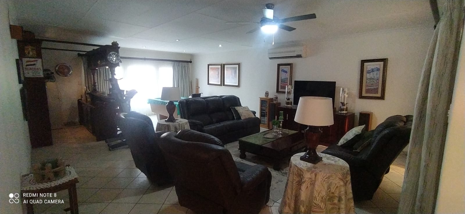 This immaculate 355sqm residence is set on a corner stand in a sought-after neighbourhood, offering a perfect balance of elegance and comfort. The home boasts three spacious, air-conditioned bedrooms with built-in cupboards, while the main bedroom enjoys the luxury of a modern en-suite bathroom. A second full bathroom adds convenience for the rest of the household. Multiple living areas create a sense of space and warmth, including a welcoming lounge, a dedicated TV room, and a dining area that flows effortlessly into the modern kitchen. Designed with both style and practicality in mind, the kitchen features a gas stove, dual gas-and-electric oven, pantry, scullery, and laundry area – everything the home chef could wish for.