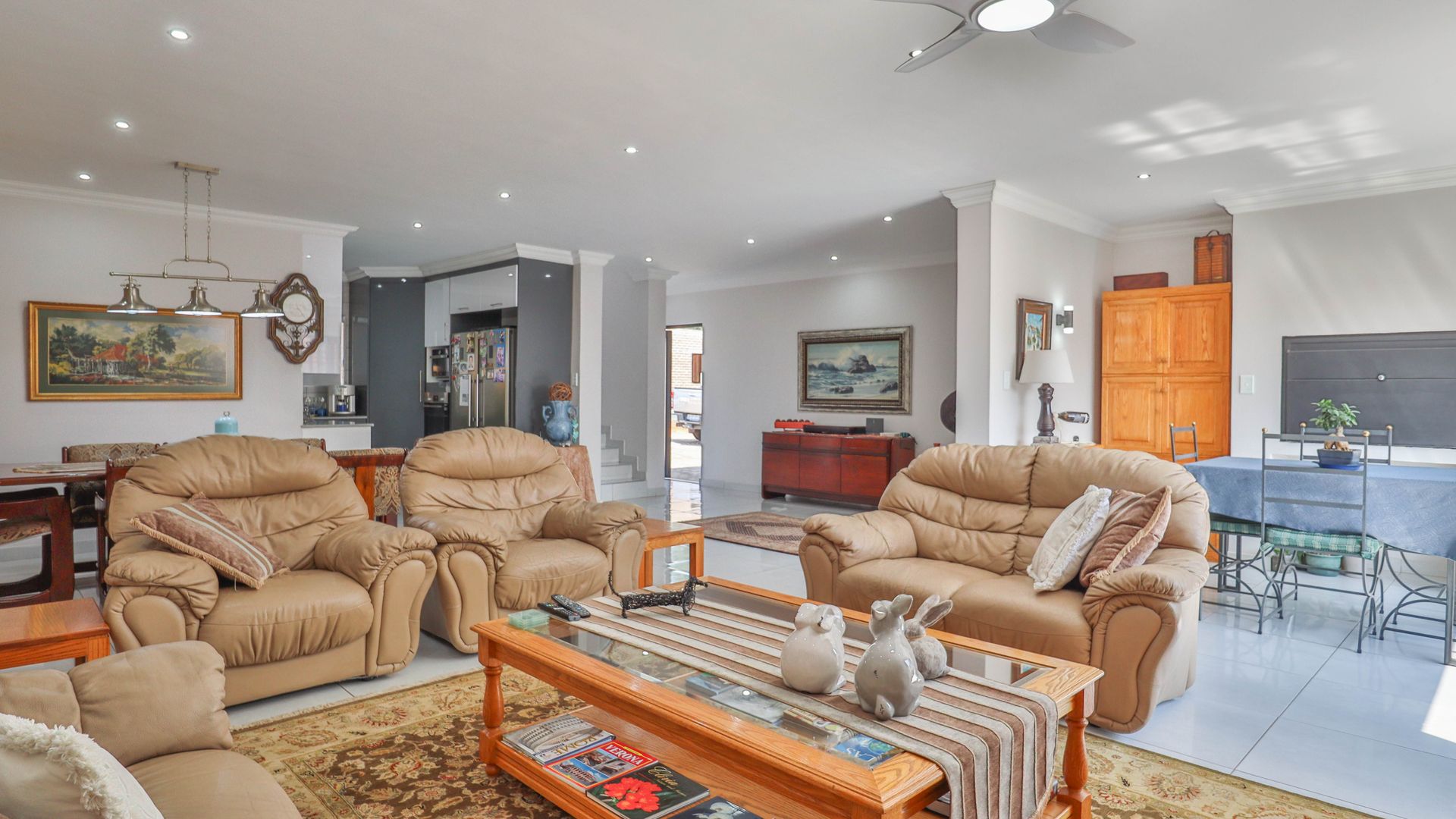 Open-plan living space with a seamless flow between the dining area, lounge, and kitchen