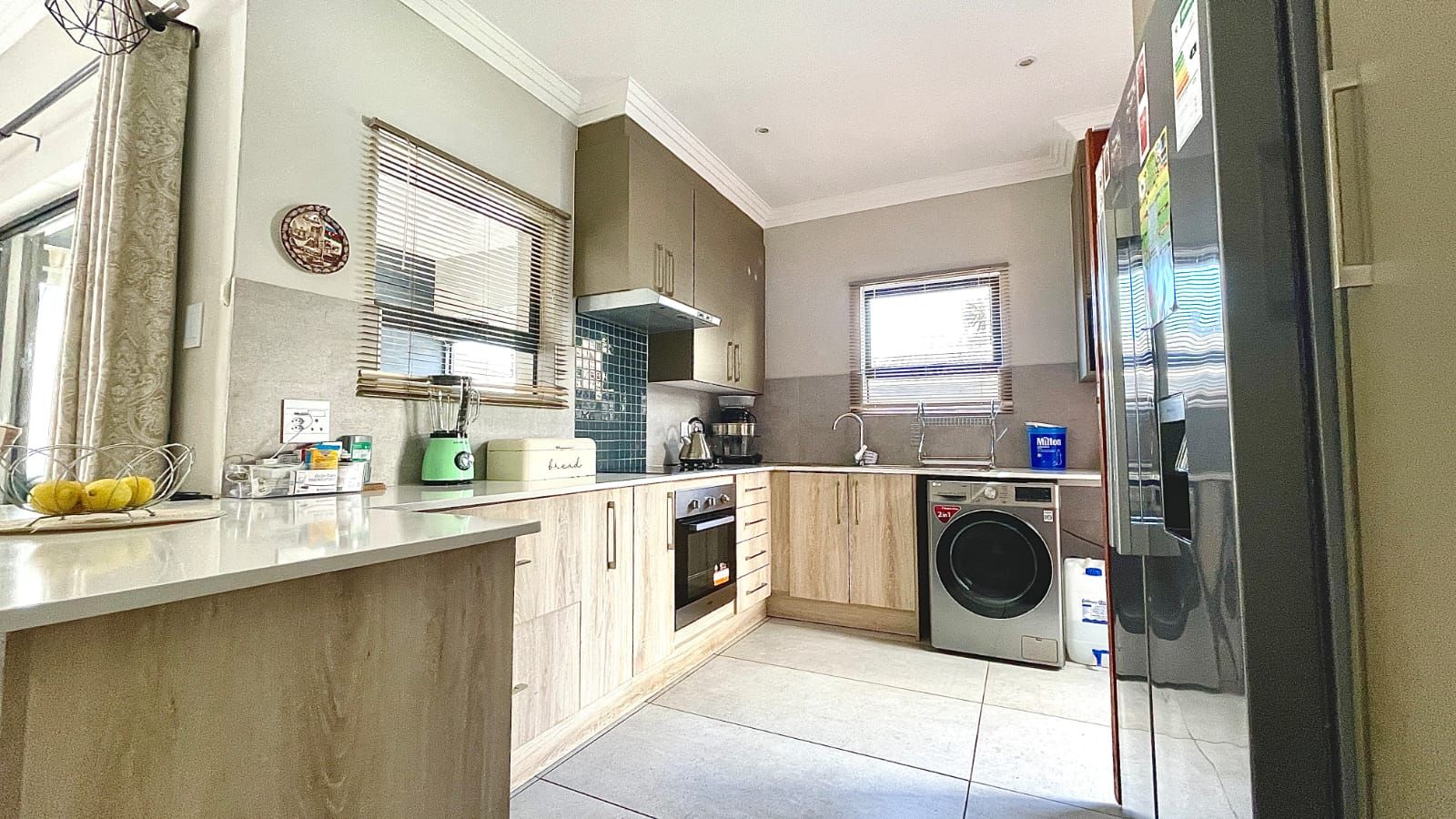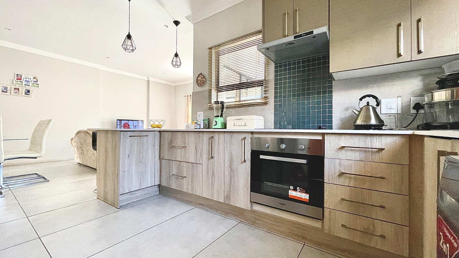 Step into a generously sized open-plan dining area that flows seamlessly into a sleek, modern kitchen — ideal for both everyday living and entertaining. The kitchen boasts contemporary finishes with ample cupboard space and clean lines.