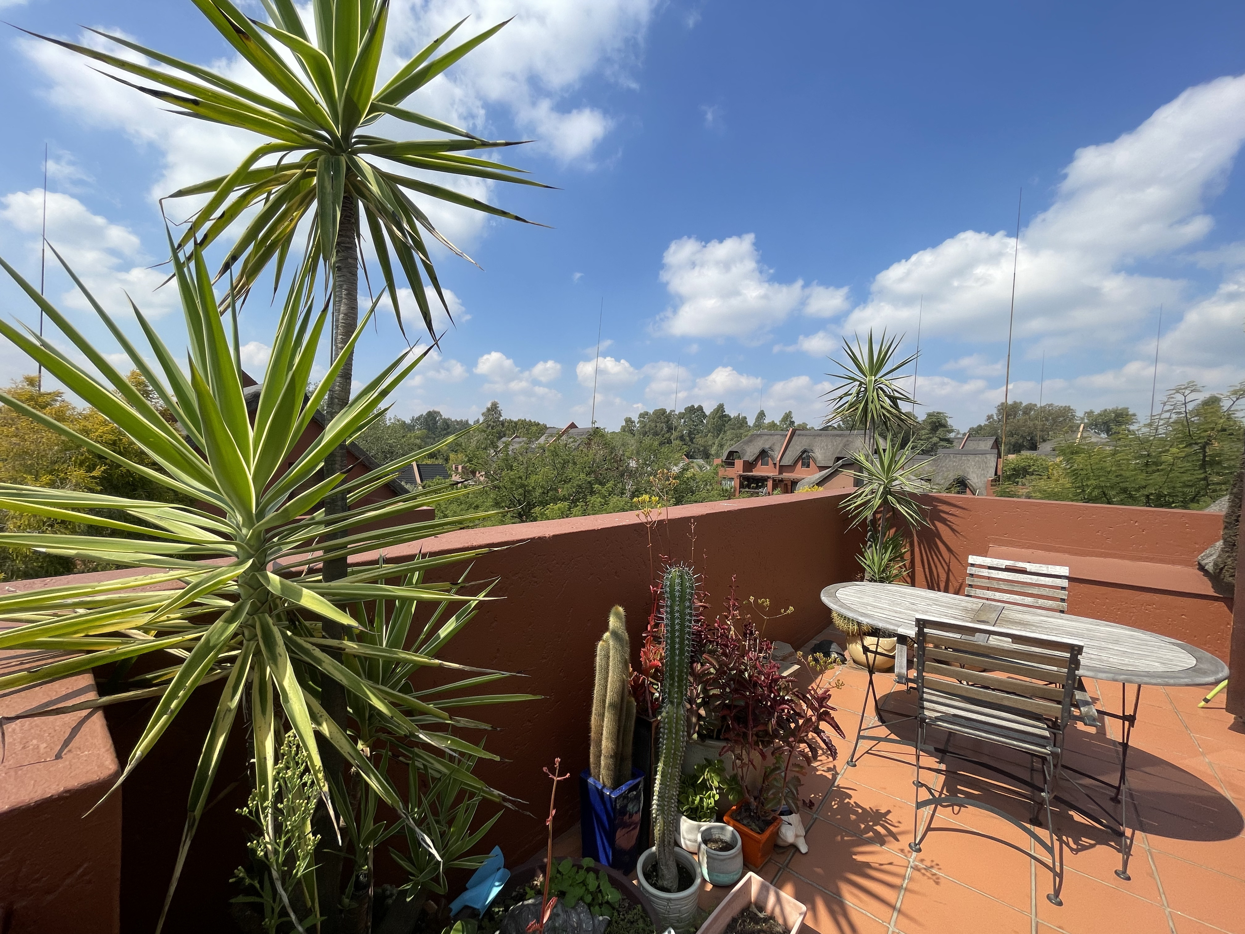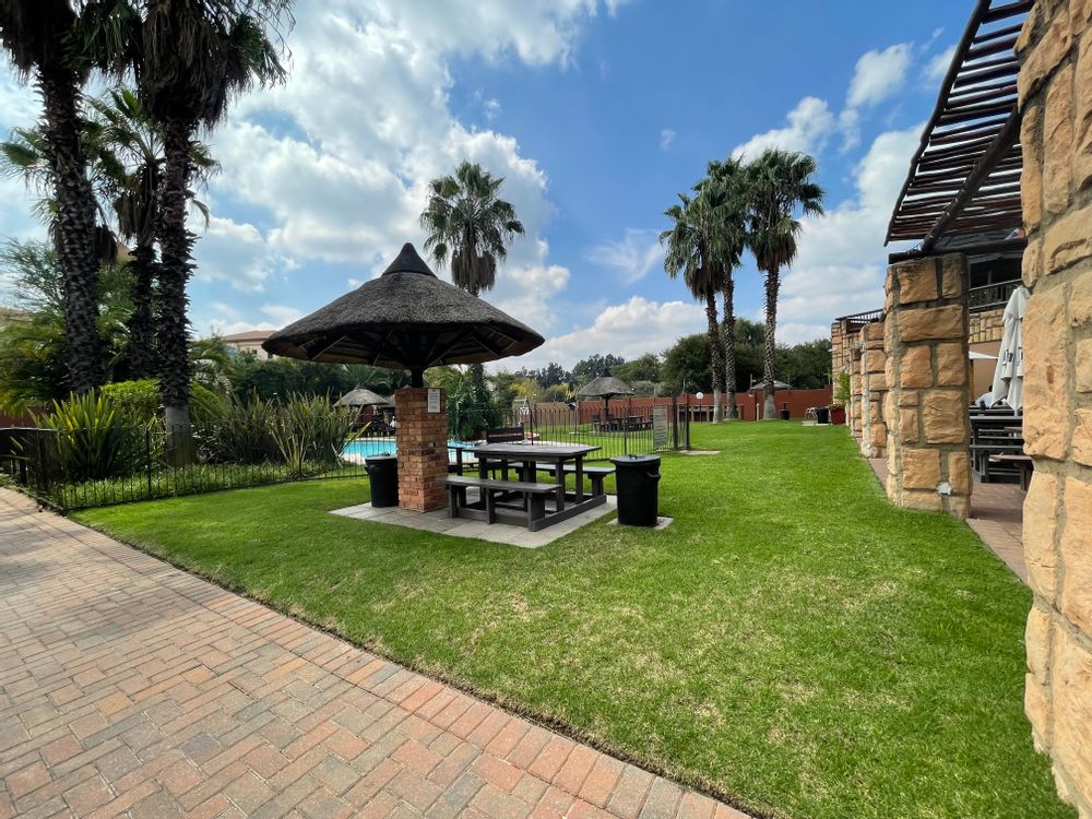Looking for a resort-like experience? Look no further than this delightful 2-bedroom loft apartment. Step into the spacious kitchen that seamlessly transitions into a generously sized living area, opening onto the first balcony—an ideal space for both entertaining and finding serenity. Downstairs, discover a well-appointed bedroom boasting exquisite styling and abundant natural light, accompanied by a full bathroom complete with a shower and tub. As you make your way up the stairs, you find yourself in a breathtaking loft room flooded with light and gentle breezes. This room leads out to an expansive balcony offering unparalleled views of Monte Casino and the picturesque landscape of Fourways. The estate boasts three swimming pools, tennis courts, and expansive chill-out areas. A bar is conveniently located on-site for relaxing sundowner evenings or peaceful moments in nature with a cup of tea. With meticulously manicured gardens and a wealth of activities, the vibe here perfectly captures the essence of a resort getaway. This particular unit has a beautiful swimming pool and braai area at the bottom. The estate has a borehole facility so you don't have to worry about water issues. With top-notch security, you can feel at home. This estate offers easy access to major roads without compromising on tranquility. The estate is upgrading from thatch to tiles in the next couple of months :) This is will increase the property value. Don't let this opportunity pass you by—schedule a viewing today and experience the allure of this stunning property firsthand :)