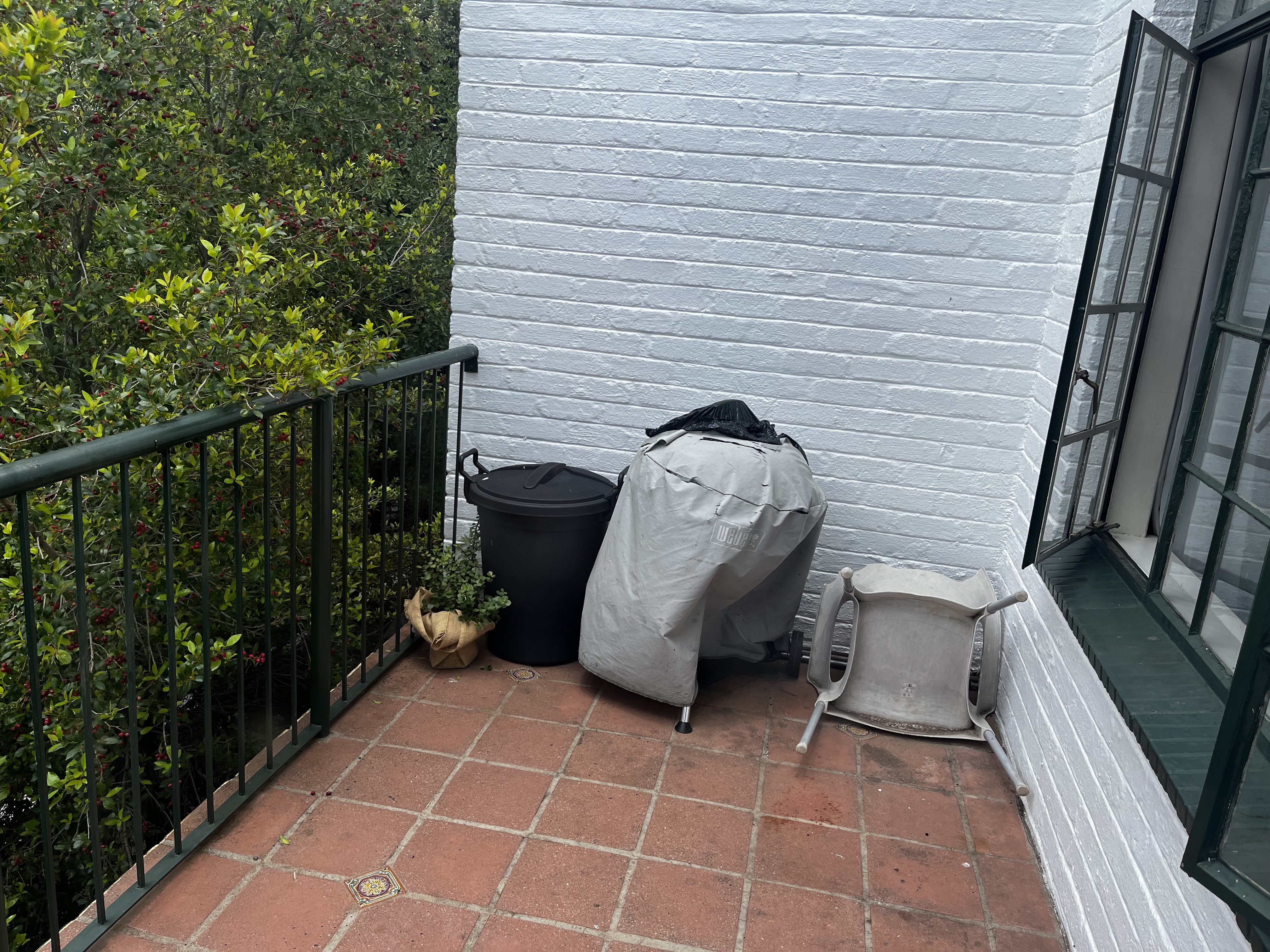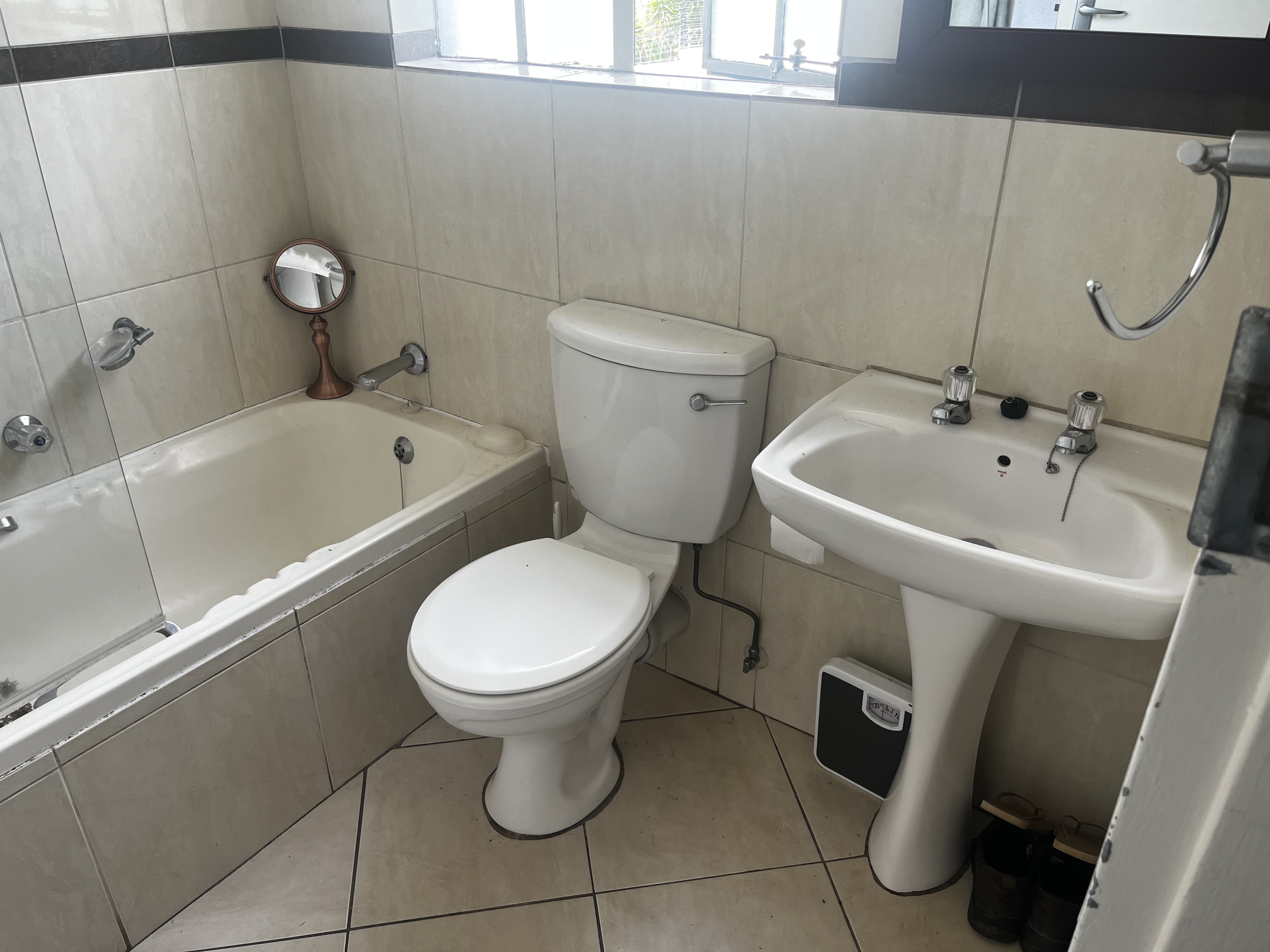 There is one sunny bedroom with built in cupboards and one full bathroom with shower.