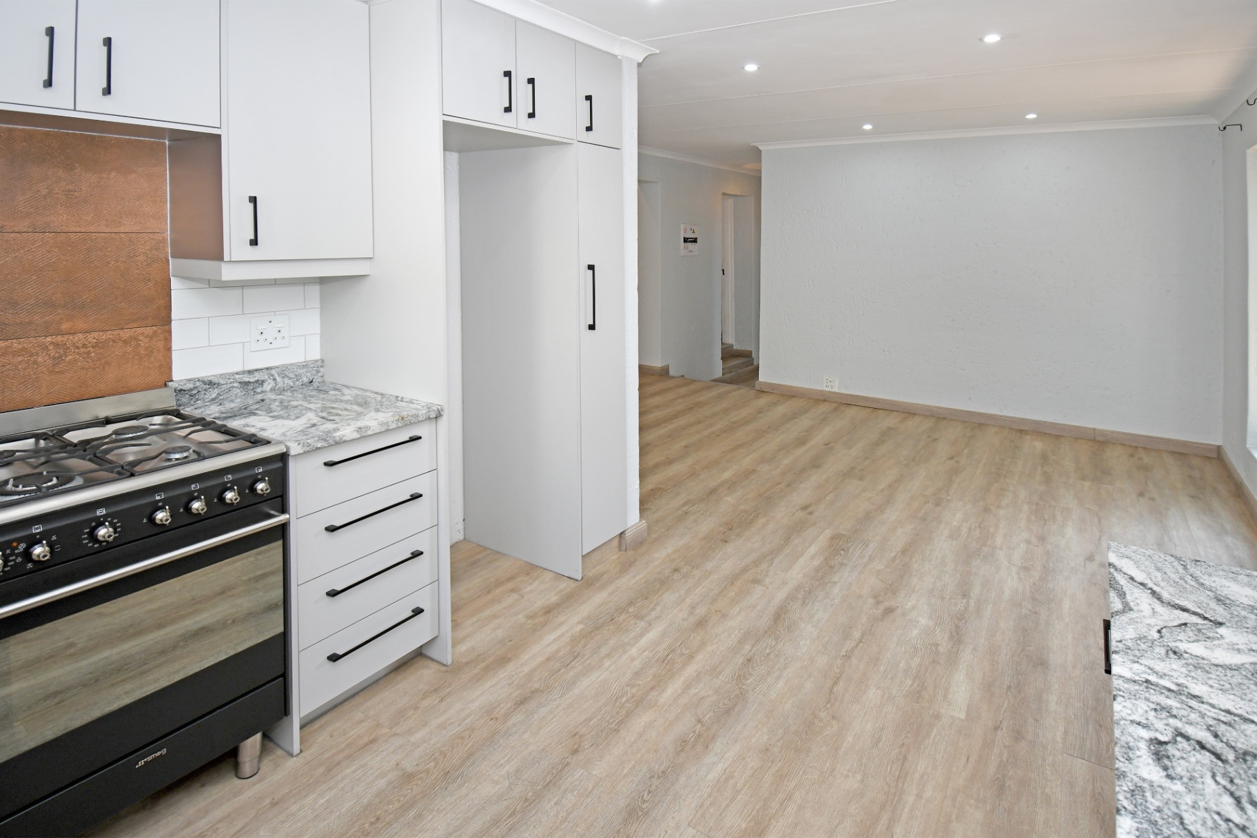 · Smeg gas stove & walk-in pantry in the gourmet kitchen