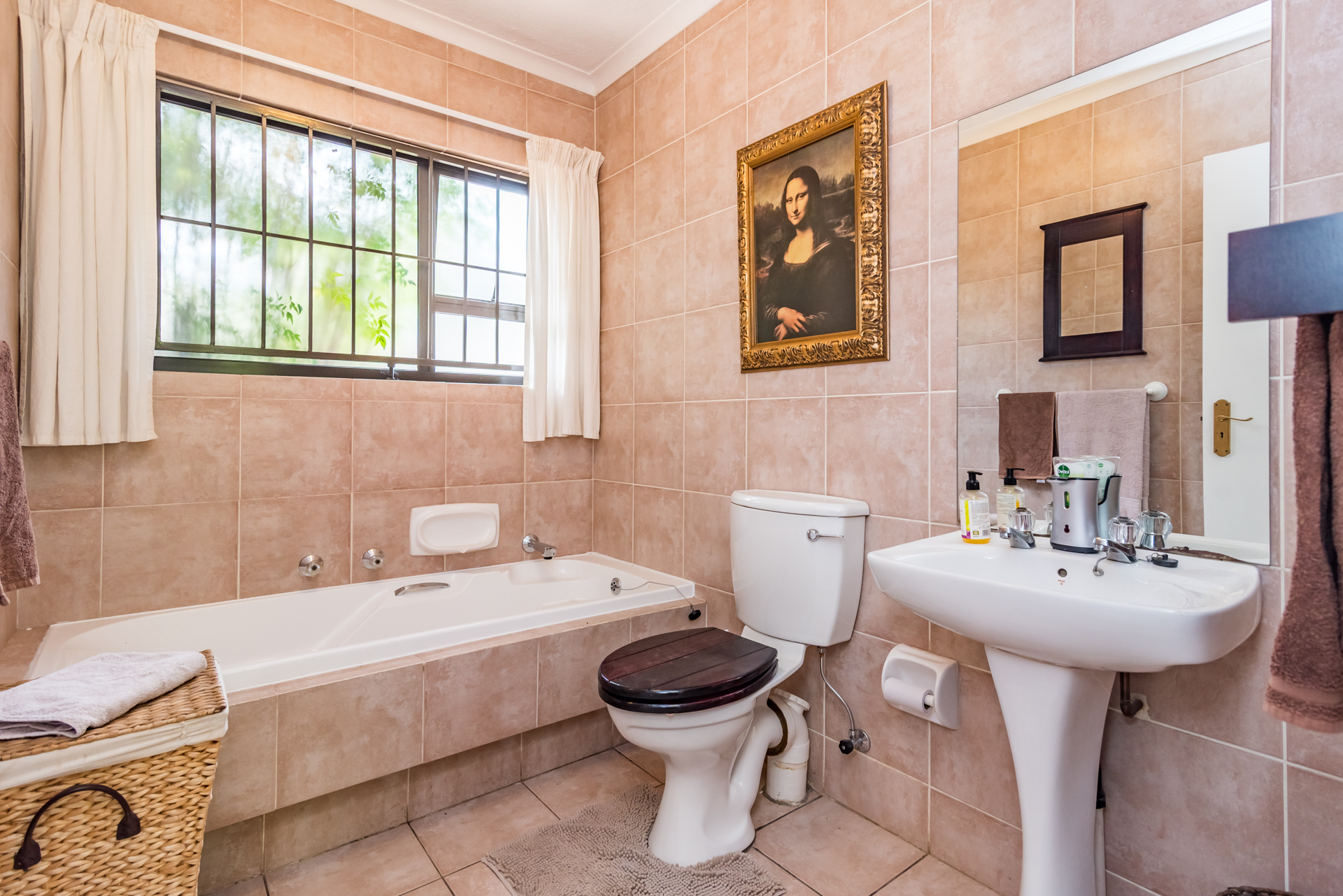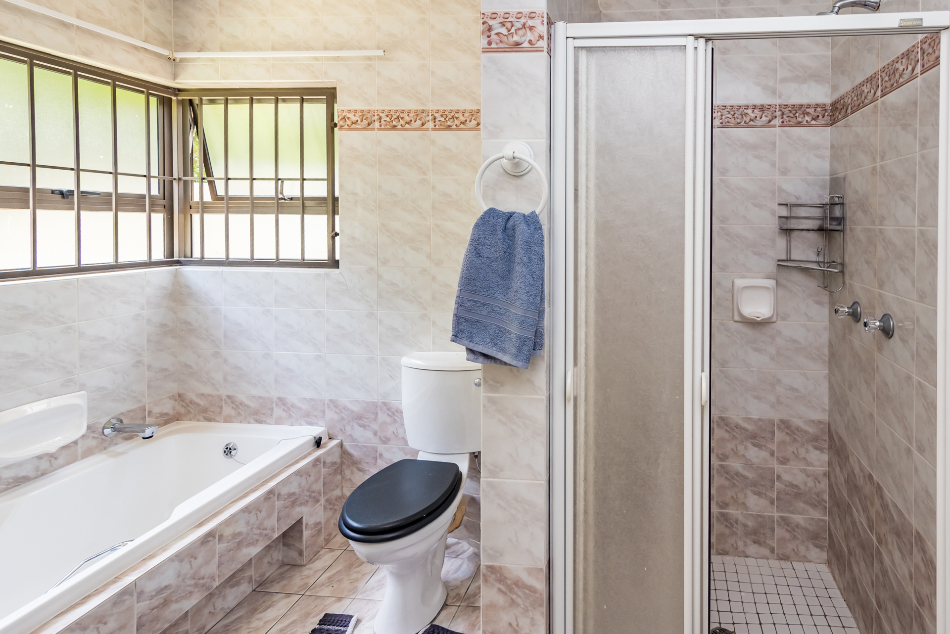 The home features a spacious main bedroom with an en-suite bathroom that includes both a bath and a separate shower. The second and third bedrooms share a second bathroom with a bath.