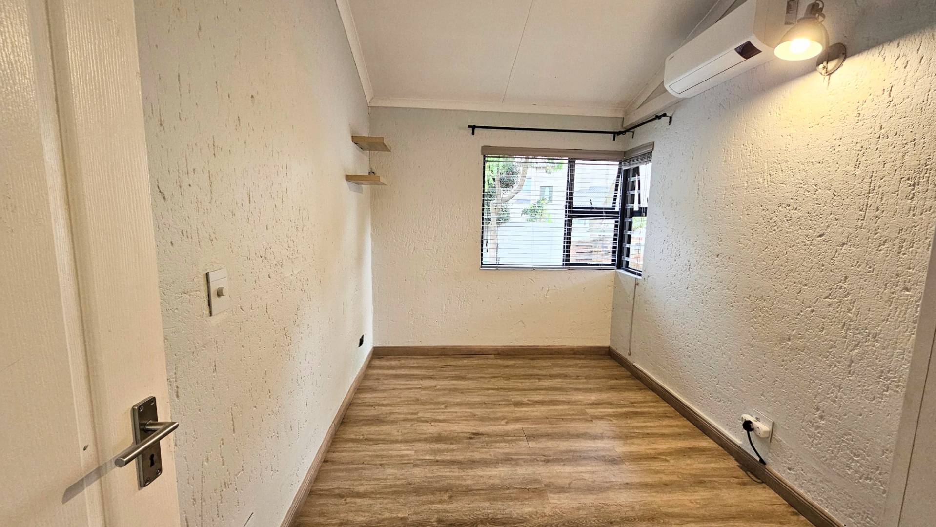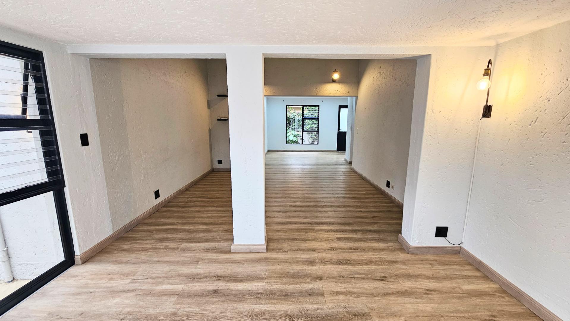 rails, designer taps, and high-end finishes. Laminate flooring throughout the living