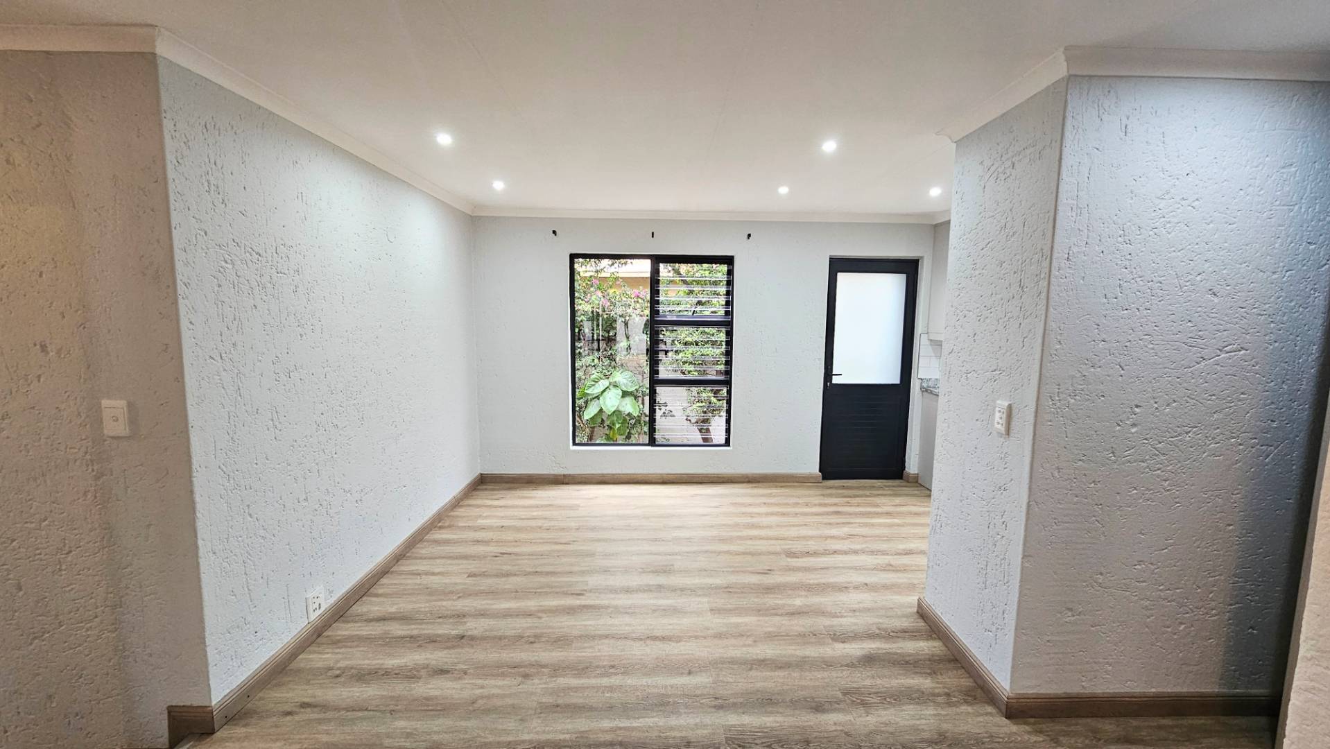 A welcoming entrance leads into a spacious open-plan lounge and dining area, filled