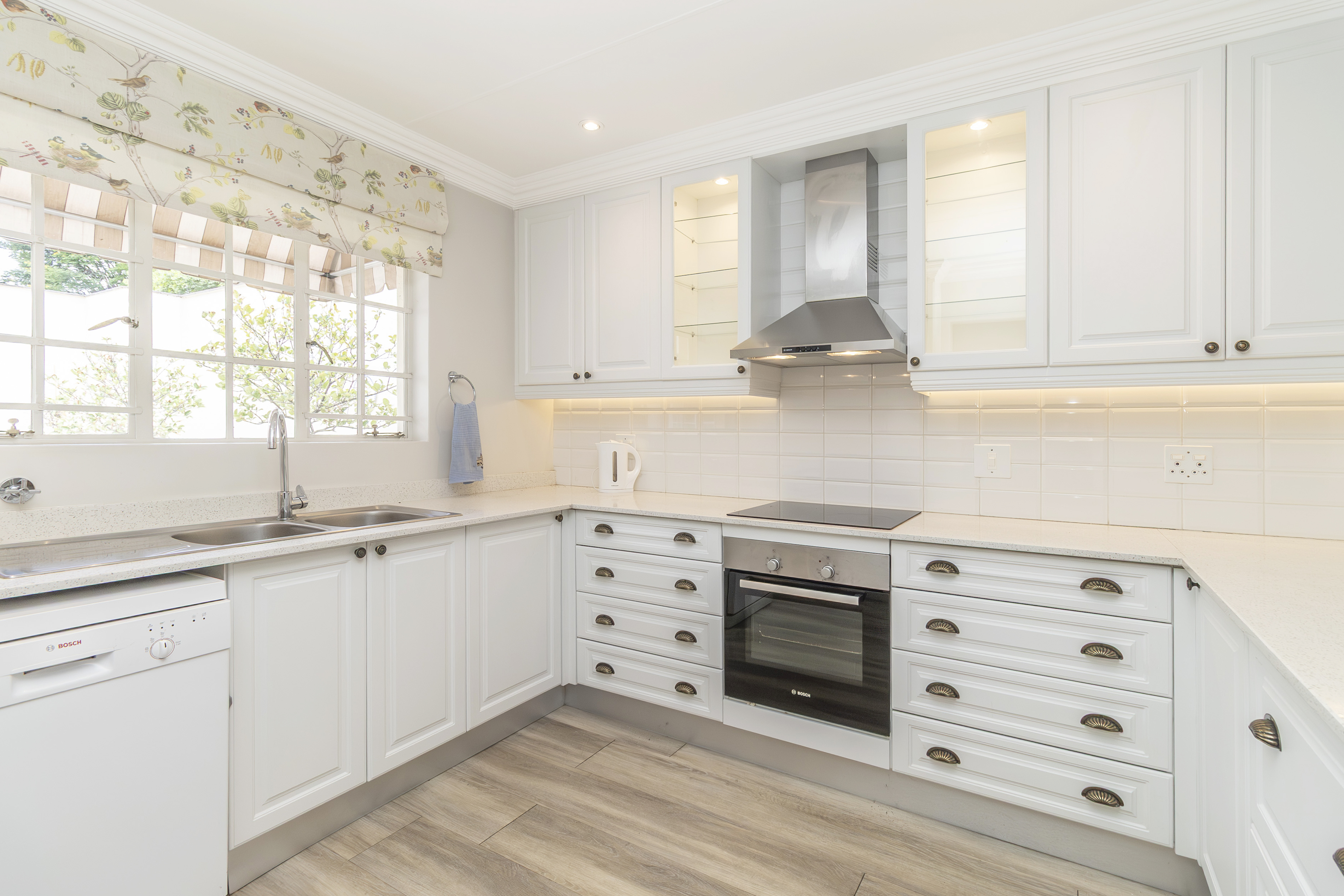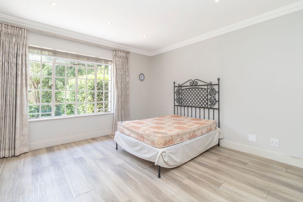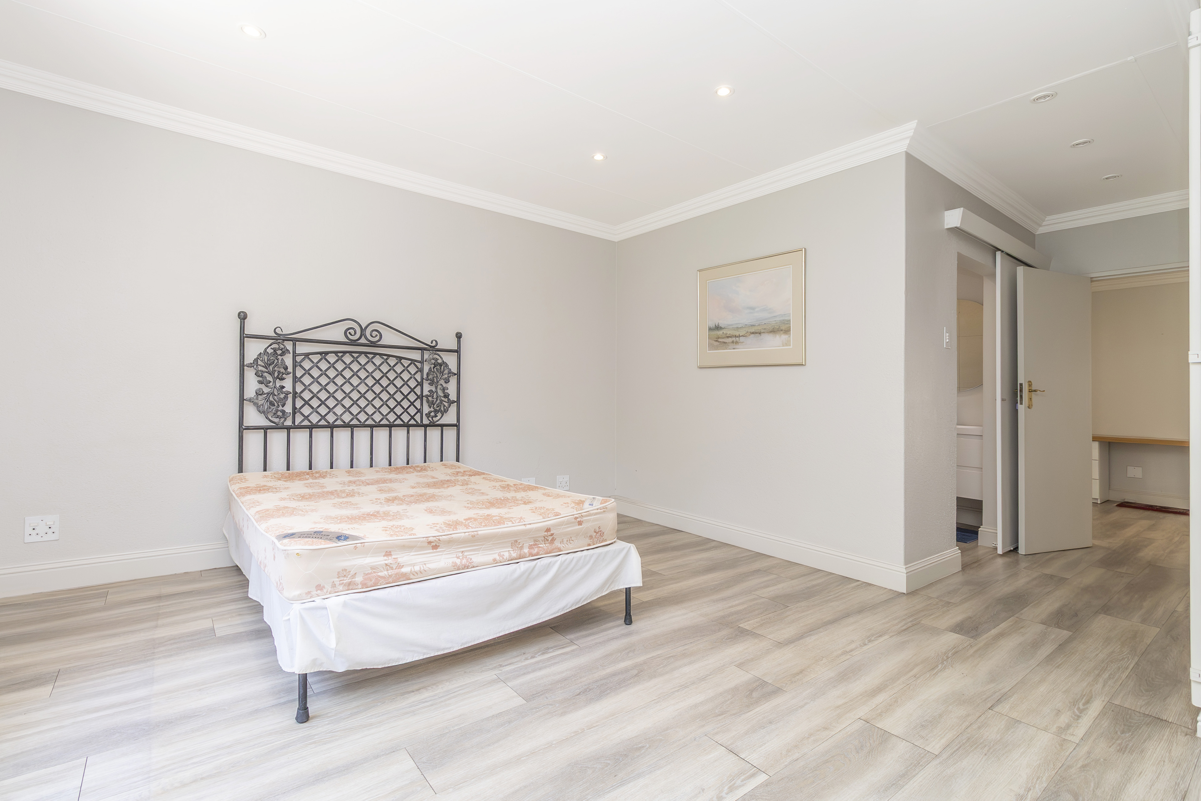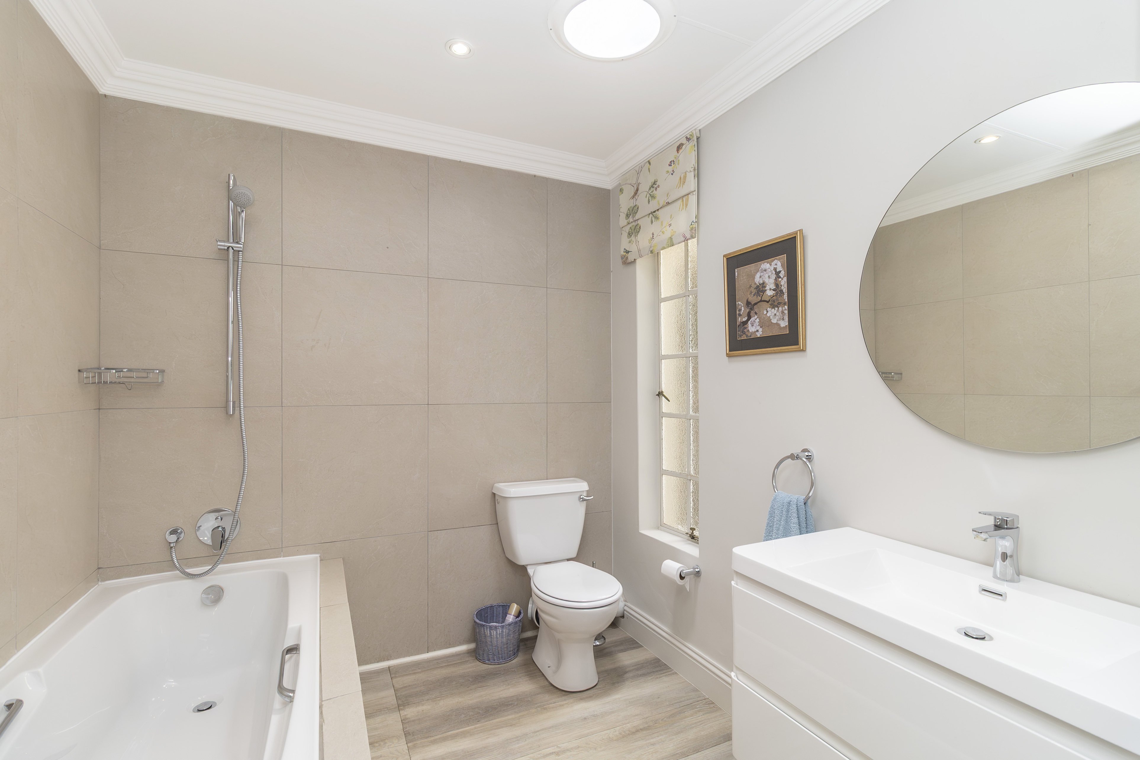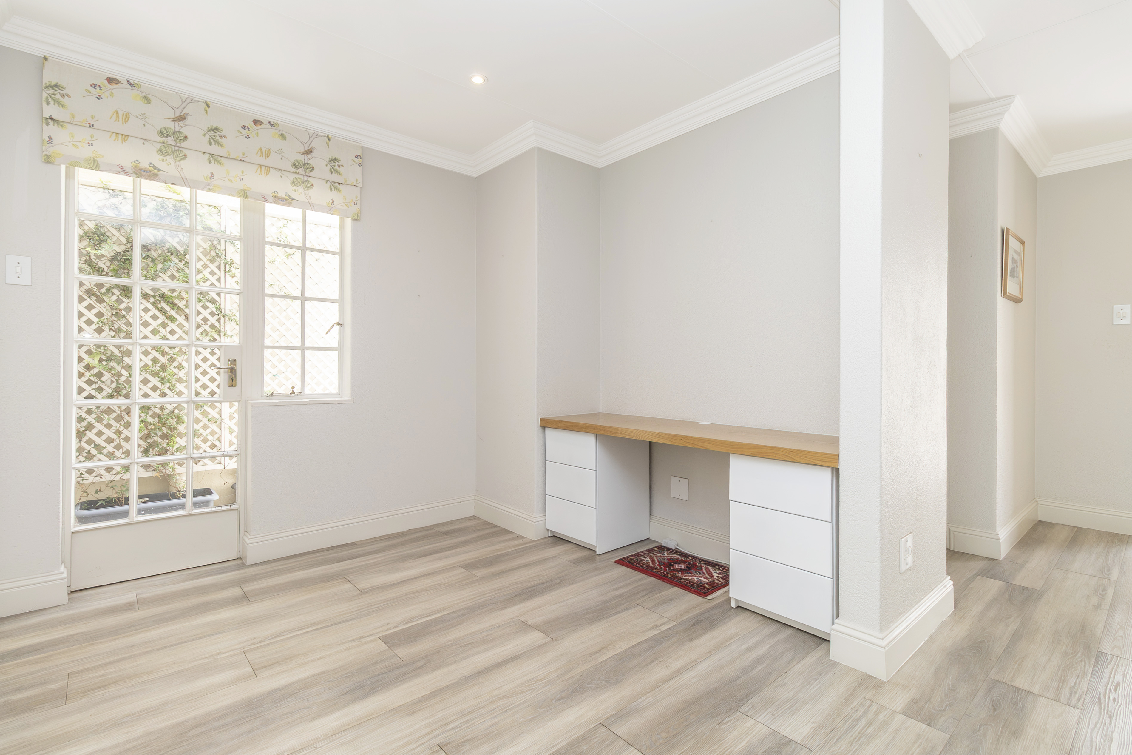 The north-facing primary bedroom boasts built-in cupboards and a contemporary en suite bathroom, all while overlooking the serene garden.