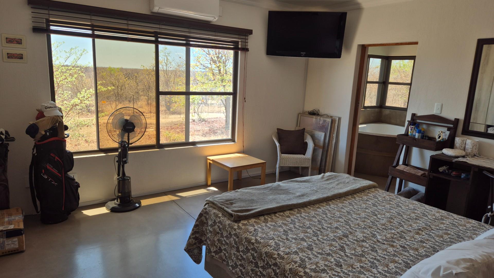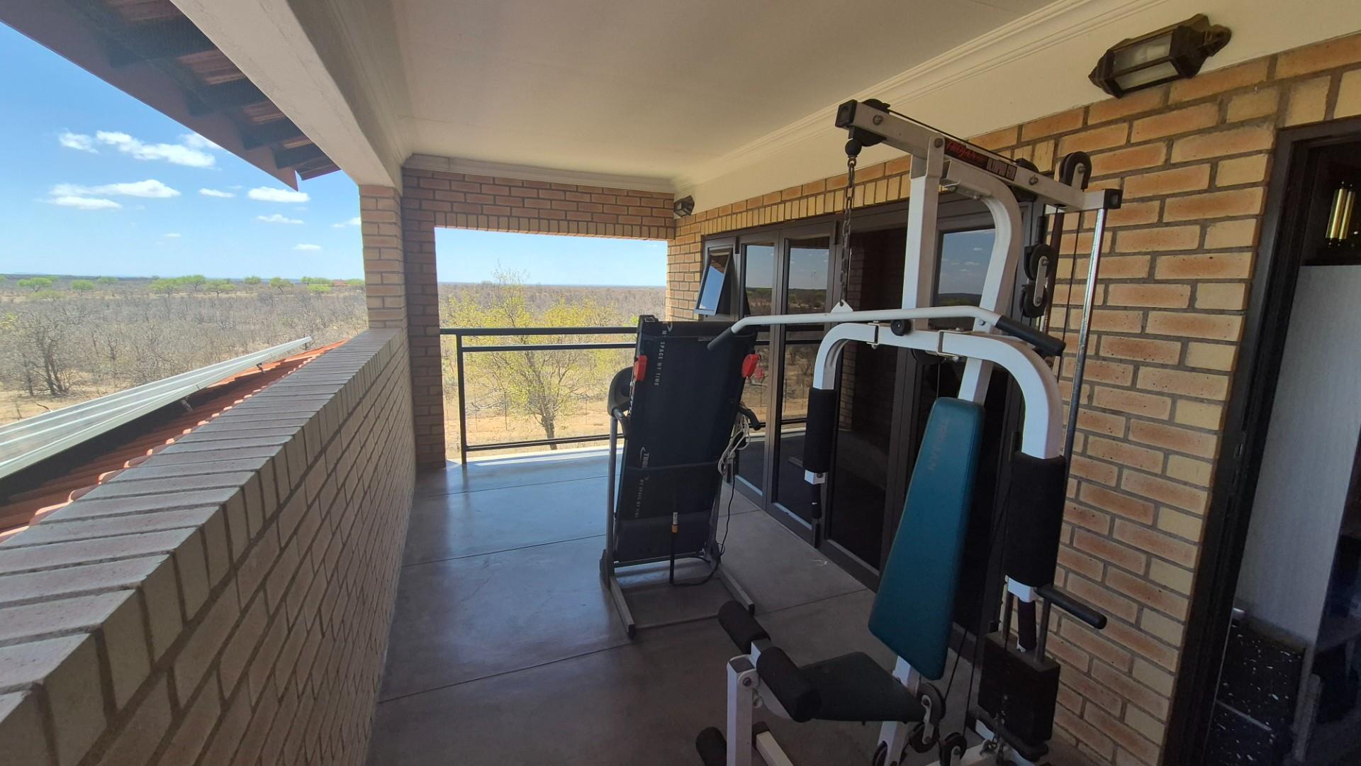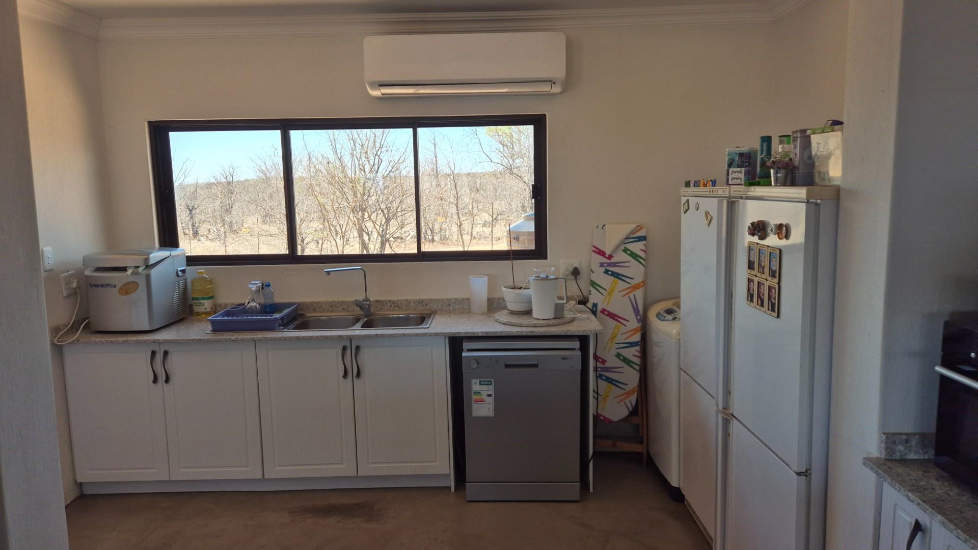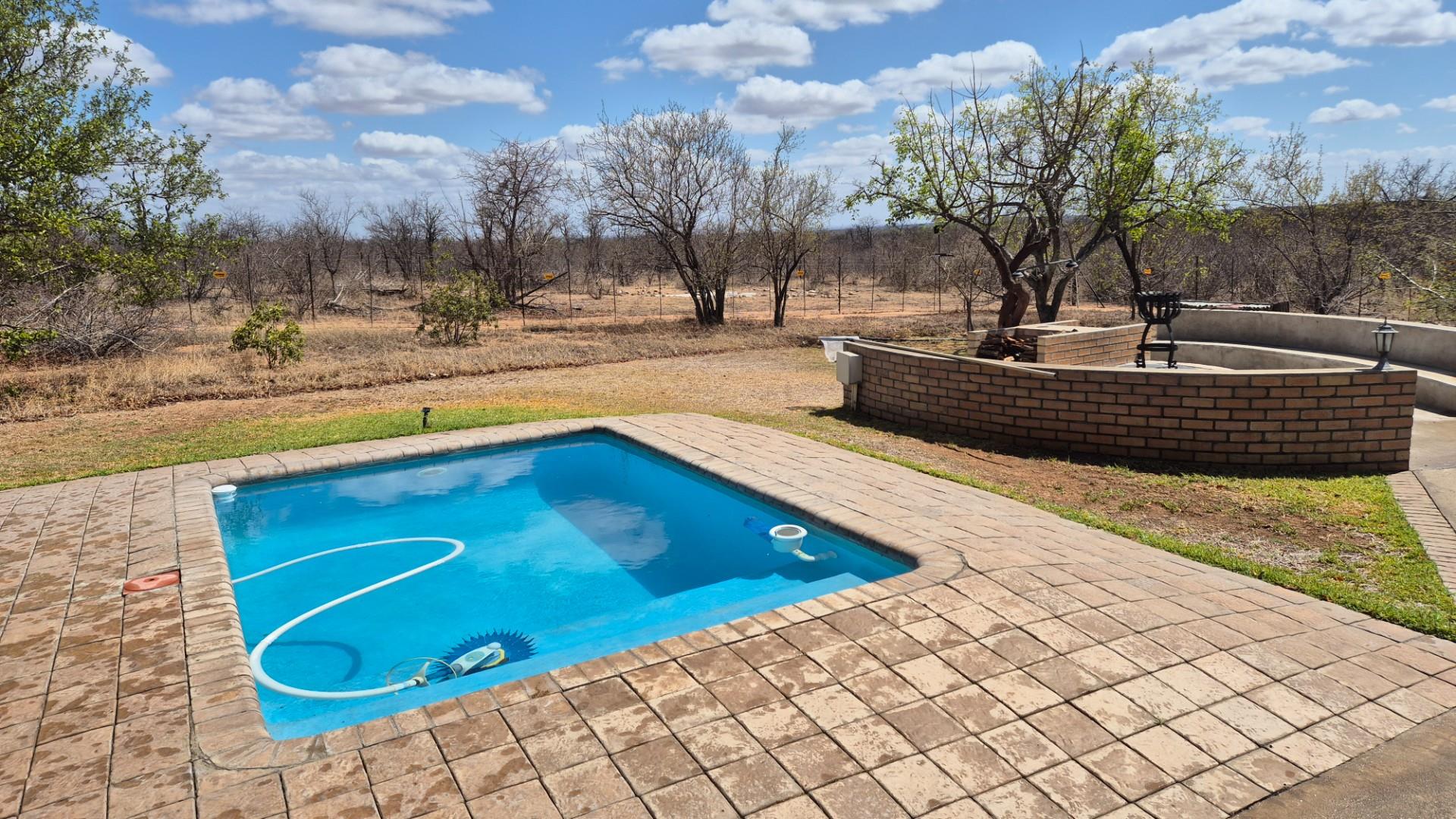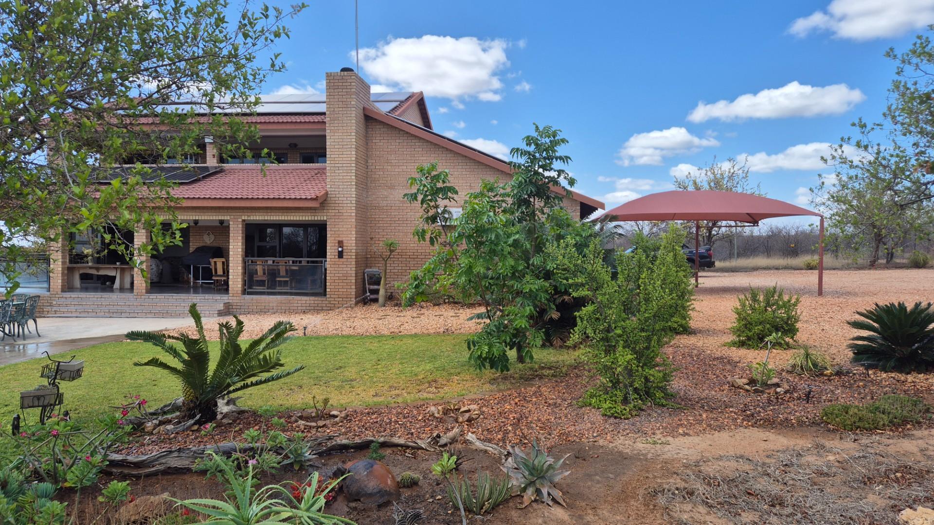 Additional to normal is your own movie theatre and entertainment area, especially for the entire family relaxation time. A spacious veranda for dining and lounging with built in braai ensure your outside family time is just as enjoyable, overlooking a sparkling pool and boma area . All set in a garden designed to accentuate the peaceful environment, fully irrigated with green lawn. Water for garden from a private borehole and a 2500 liter tank ensures you have enough water all year round. Drinking water supplied by the municipality. You are totally off- grid as the solar system has batteries to store 20KW, invertor for 10 KW and enough sun panels for 14 KW. Although you have 21 ha for yourself some 3000m2 is electrical fenced off and surrounds the house and garden area, even snake distracting fencing.