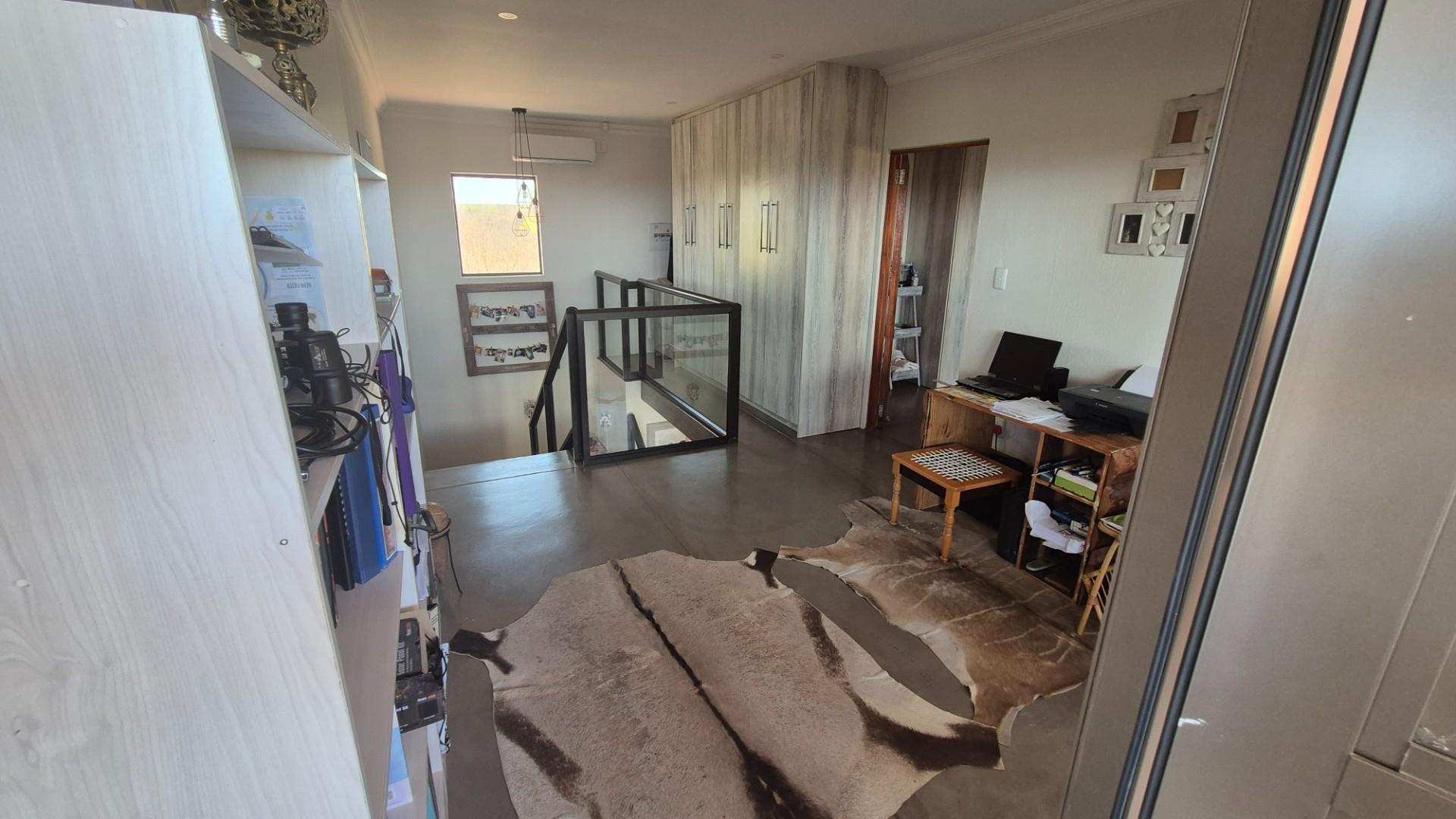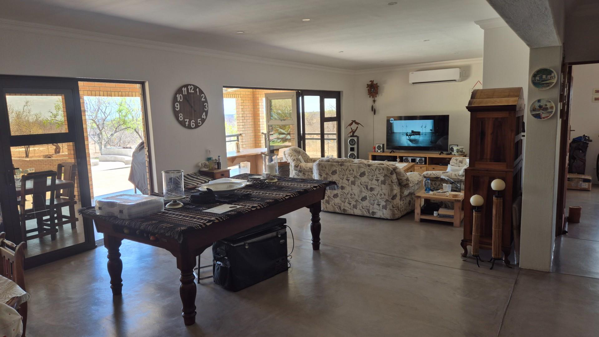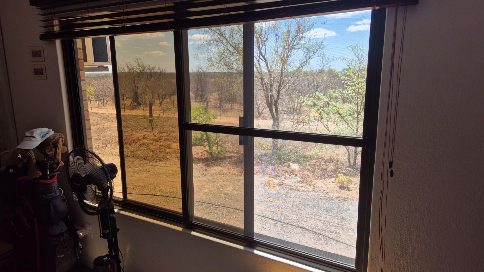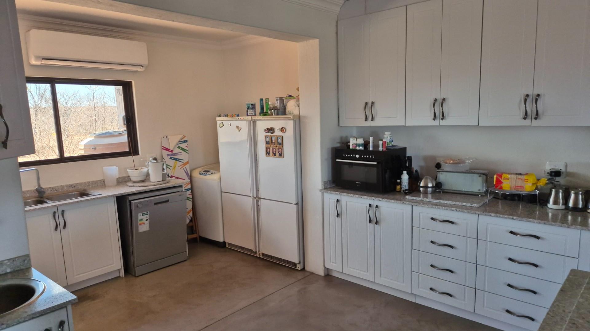 Additional to normal is your own movie theatre and entertainment area, especially for the entire family relaxation time. A spacious veranda for dining and lounging with built in braai ensure your outside family time is just as enjoyable, overlooking a sparkling pool and boma area . All set in a garden designed to accentuate the peaceful environment, fully irrigated with green lawn. Water for garden from a private borehole and a 2500 liter tank ensures you have enough water all year round. Drinking water supplied by the municipality. You are totally off- grid as the solar system has batteries to store 20KW, invertor for 10 KW and enough sun panels for 14 KW. Although you have 21 ha for yourself some 3000m2 is electrical fenced off and surrounds the house and garden area, even snake distracting fencing.