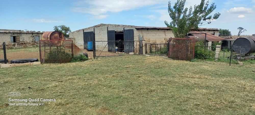 Cultivated land of 265 hectare. Two pumps are equipped, 5 boreholes that's not equipped , plus minus 4000 liters per hour, press grazing can then be applied,10 camps with nice wires and 4 feeding rooms. Huge 4 bedroom house that offers living space,2 study rooms ,dining area ,kitchen, Scullery and a bathroom.