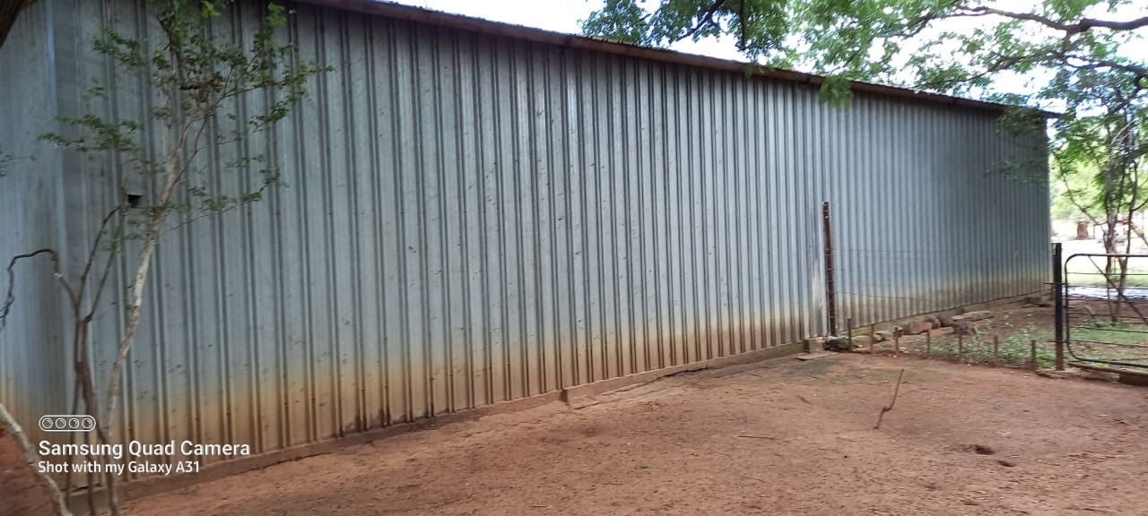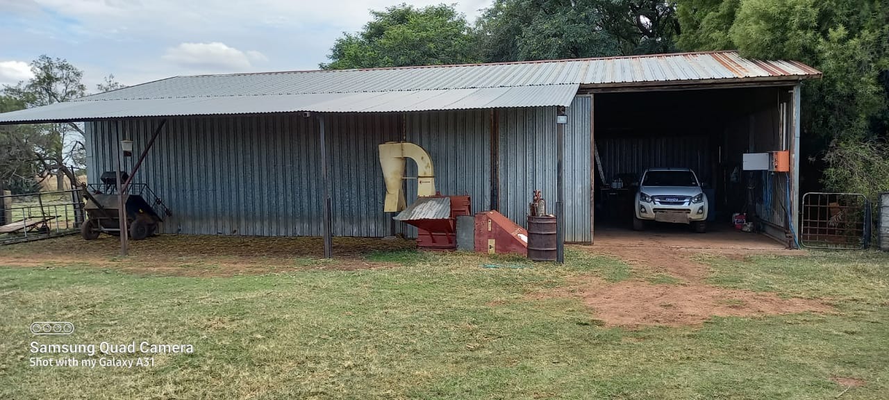 Braai area with braai facilities. One old house. Canopy against large storage. Farm with huge potential for possible irrigation. Cattle handling facilities. Very nice established garden with palm trees. Estimated crop for year is 3.5 ton soya beans per hectare. All 5 title deeds for this amazing price.