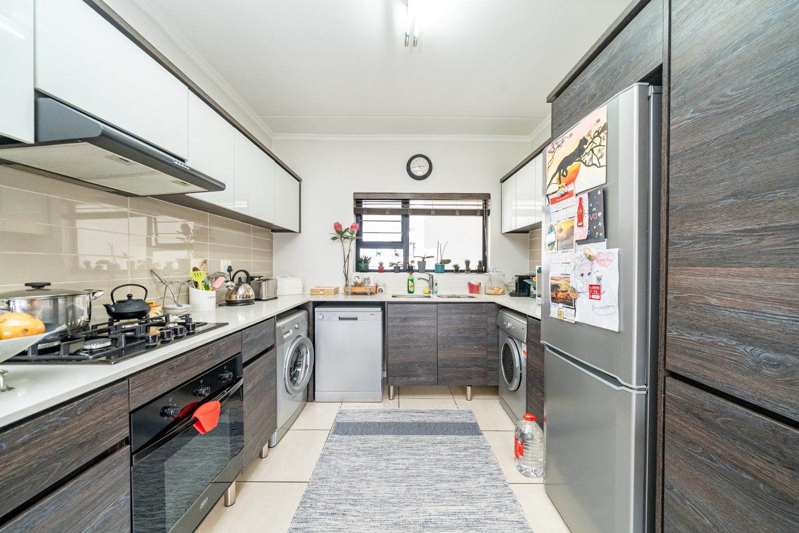 This stunning 2nd-floor unit boasts an open-plan living area that flows out to a large, partially covered patio, making it an inviting space for both relaxation and entertainment. The kitchen features built-in cupboards, a gas hob and electric oven, together with all the necessary appliances. The main bedroom has an en-suite bathroom, fitted with a shower. Both bedrooms comprise ample cupboard space. The 2nd bathroom is a full bathroom with modern finishes.