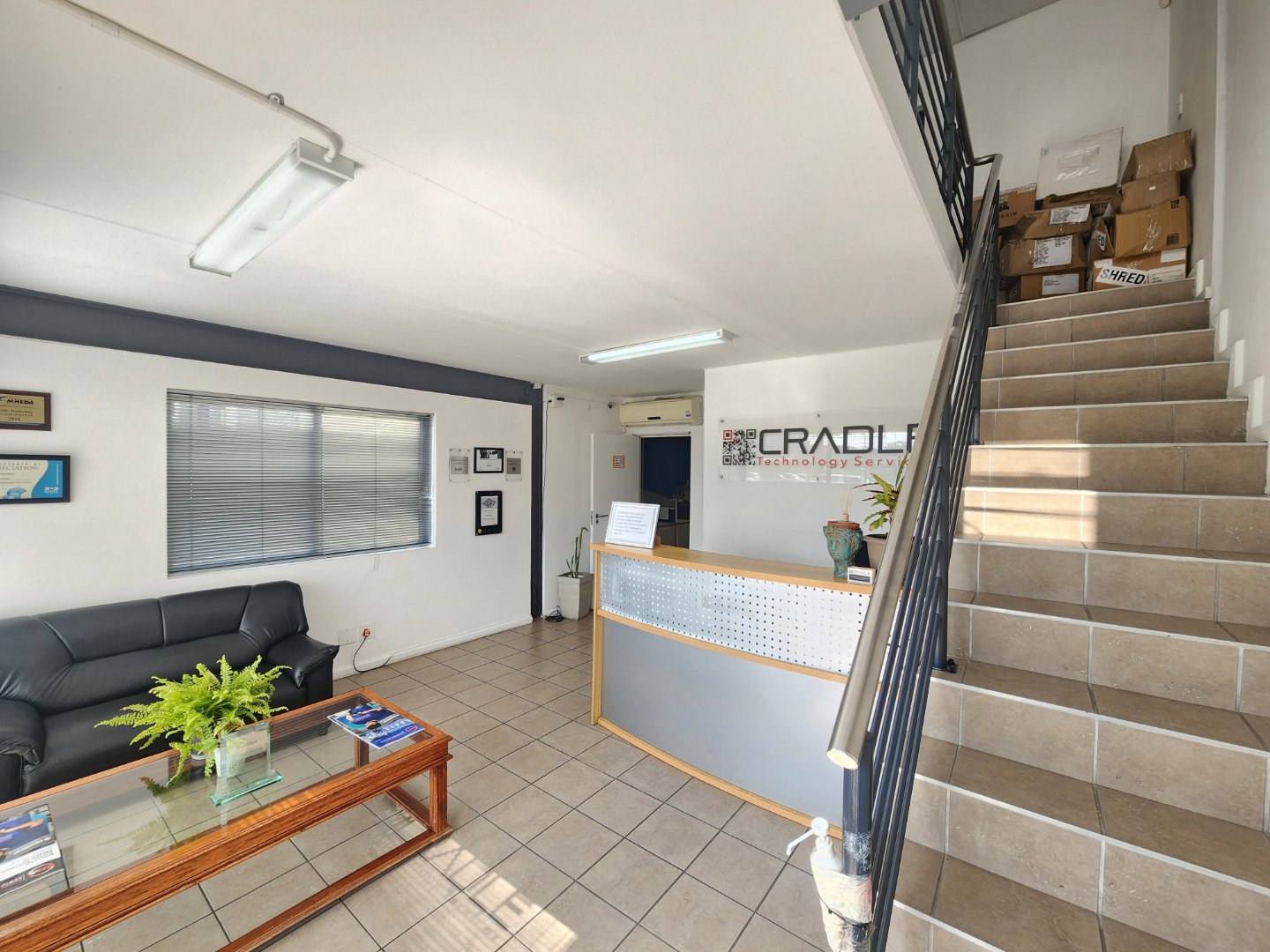 The industrial property to let offers spacious open workspace, perfect for storage, logistics, or machinery operations, with high shelving capacity for maximum efficiency. It is equipped with 60 amps of 3-phase power to support industrial requirements. Inside, the unit includes a reception office area, a mezzanine level suitable for extra storage or offices, a kitchenette, and private ablutions, providing a fully functional operational base.