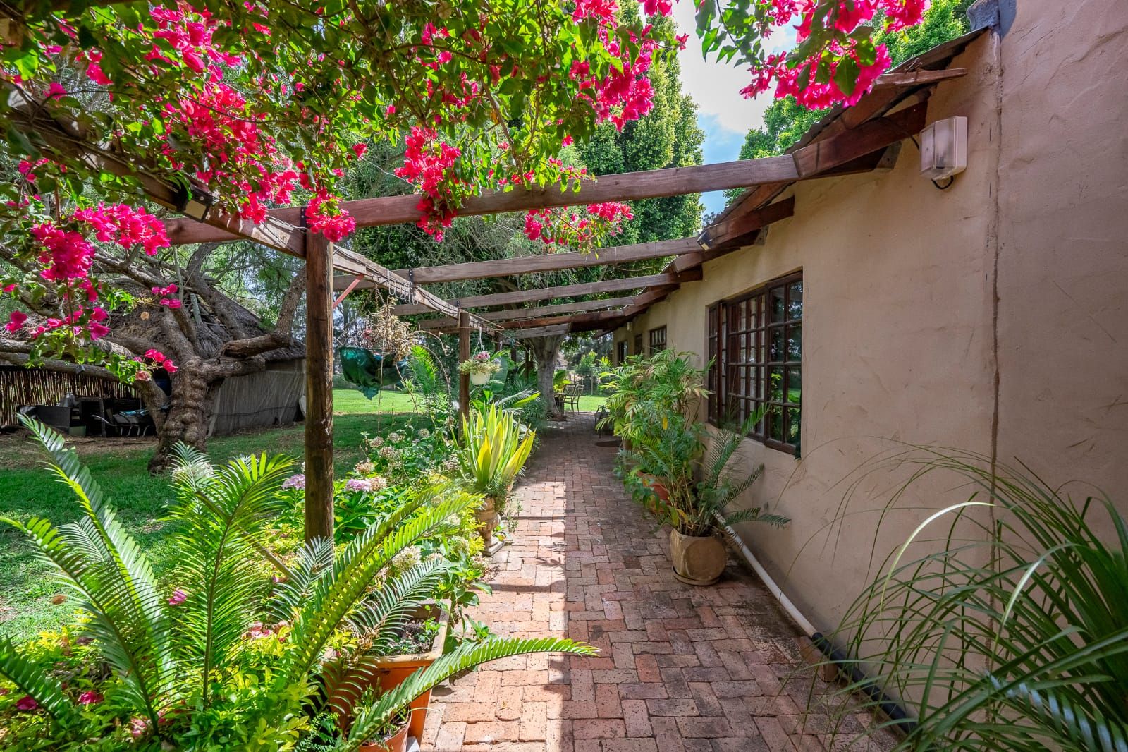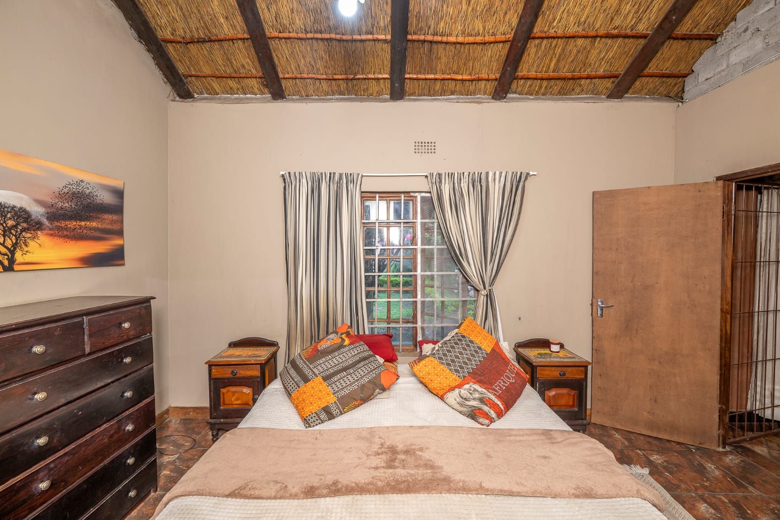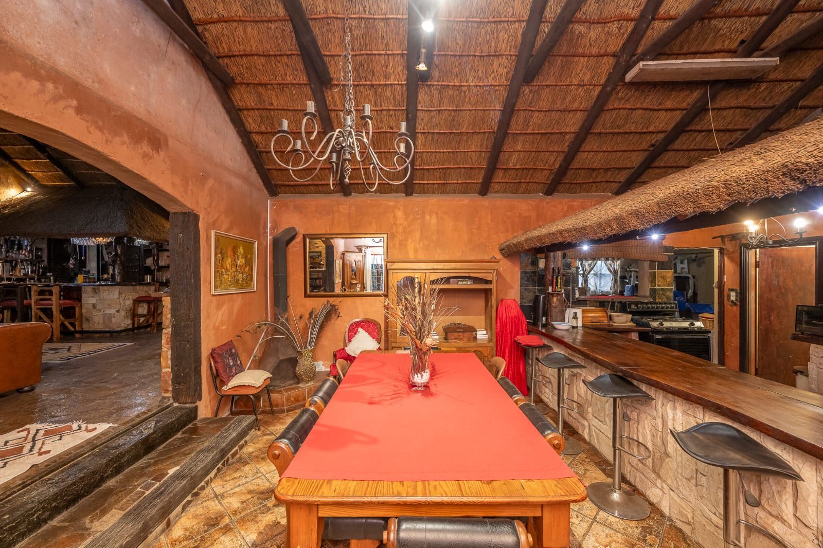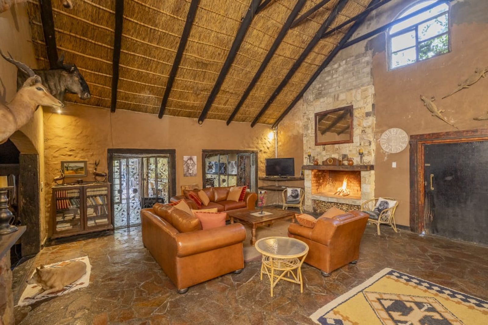 Safari Lodge-Style Retreat: (Main house) This unique home offers an indoor fireplace and braai room, an outdoor Lapa and braai area, a jacuzzi room, bar, wine cellar, beautifully landscaped gardens, a duck pond, and an impressive double entrance.
