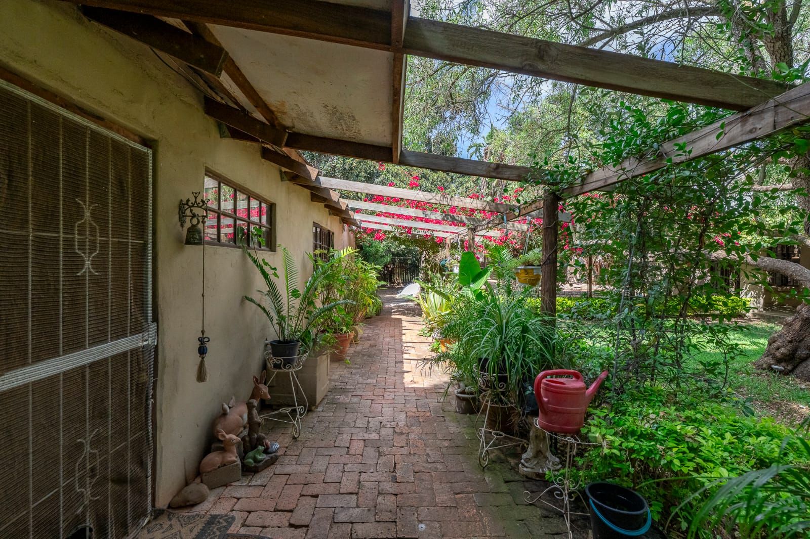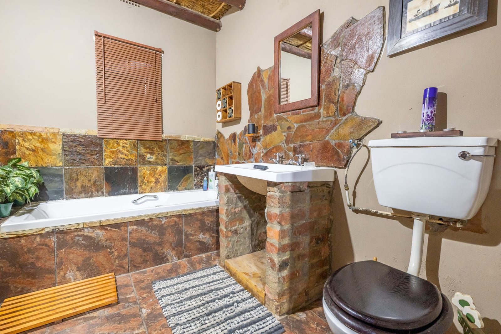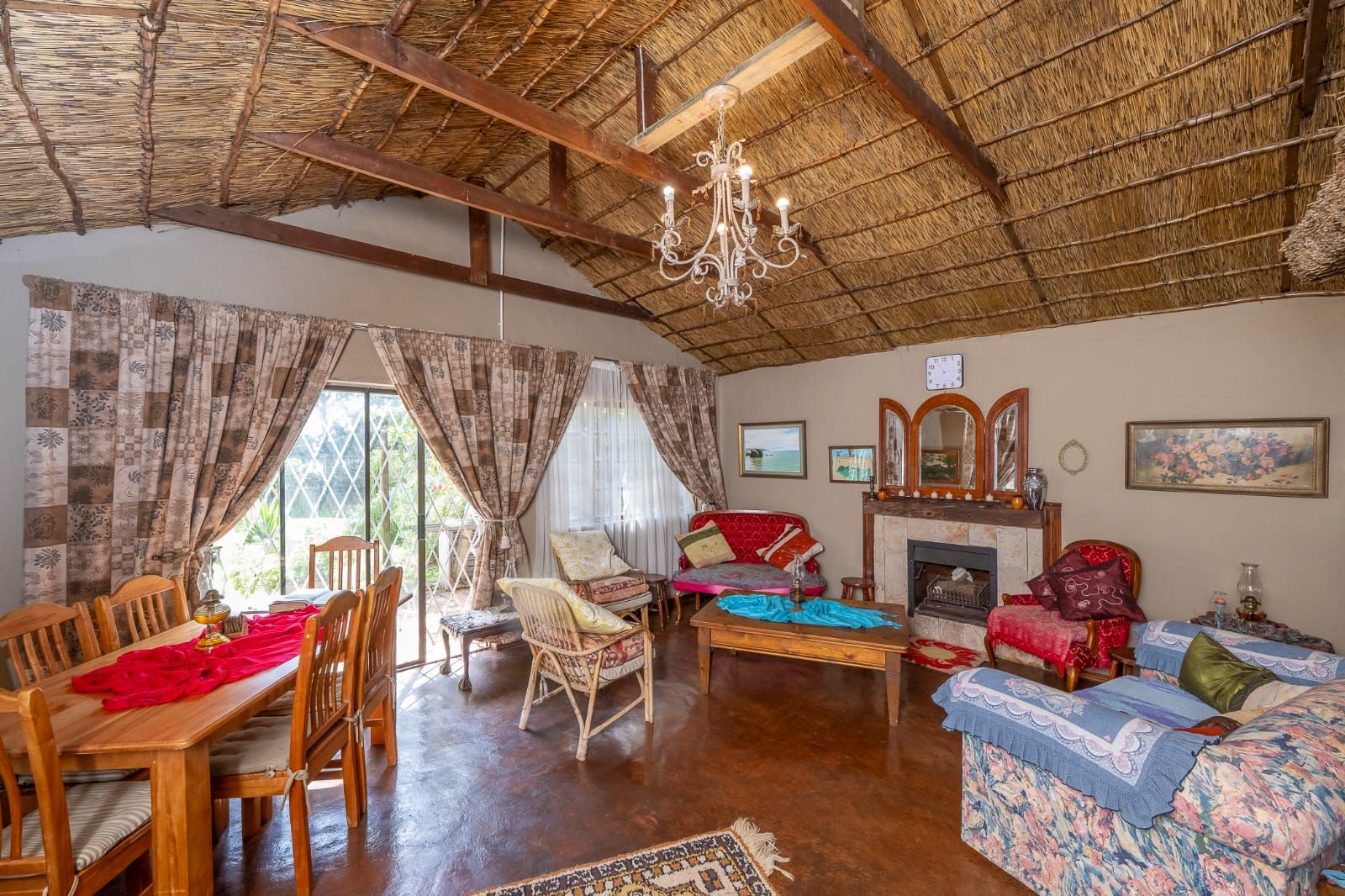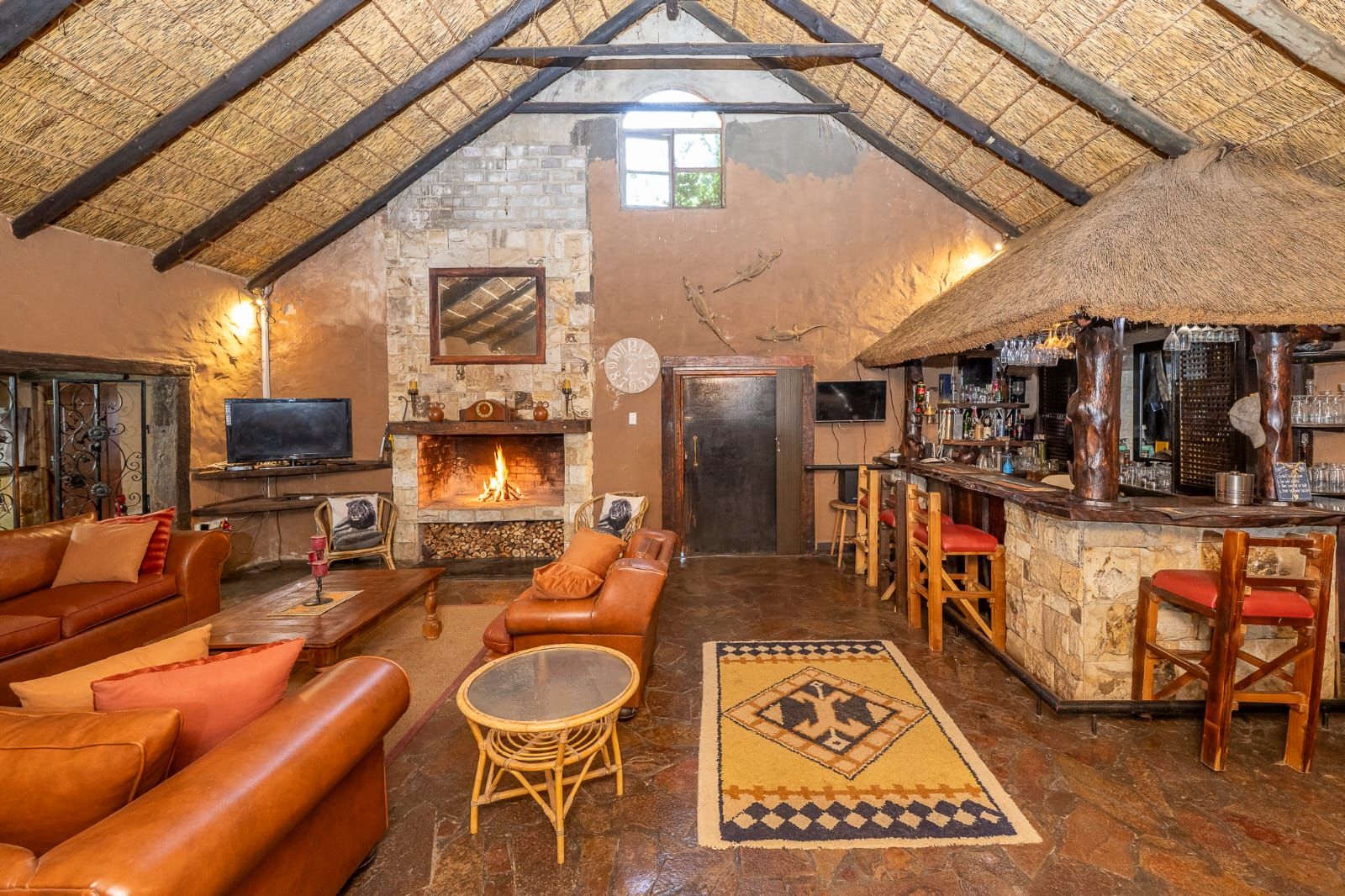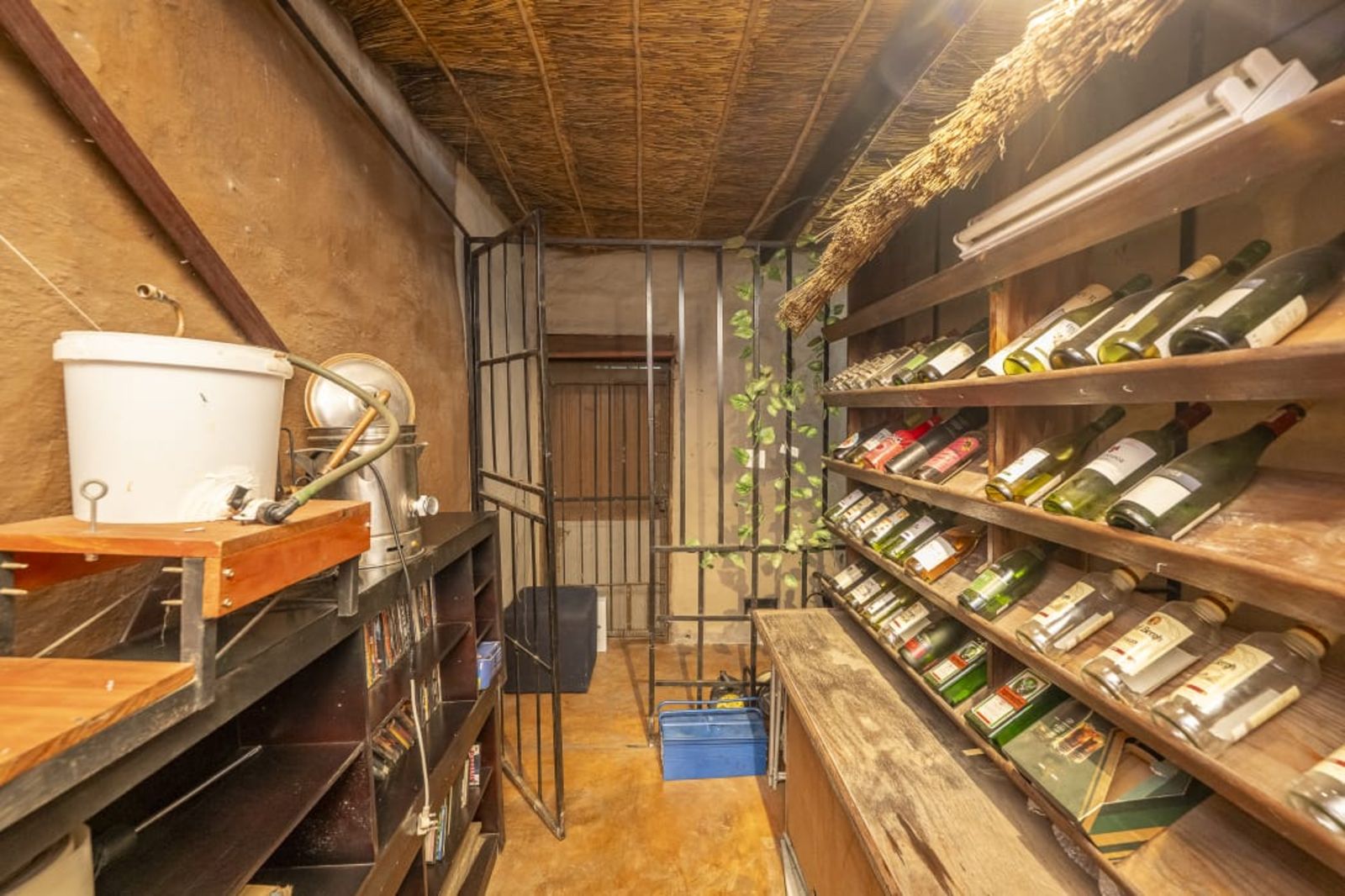 Safari Lodge-Style Retreat: (Main house) This unique home offers an indoor fireplace and braai room, an outdoor Lapa and braai area, a jacuzzi room, bar, wine cellar, beautifully landscaped gardens, a duck pond, and an impressive double entrance.
