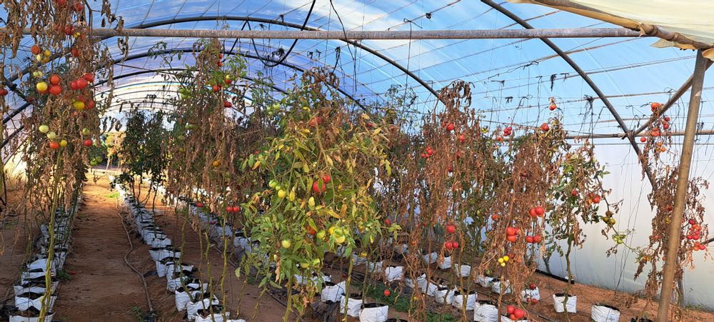 Tomatoes are produced in 18 tunnels (covering 4 000 square meters) and deliver a total harvest of 60 to 70 tons from 2 harvesting periods per year.