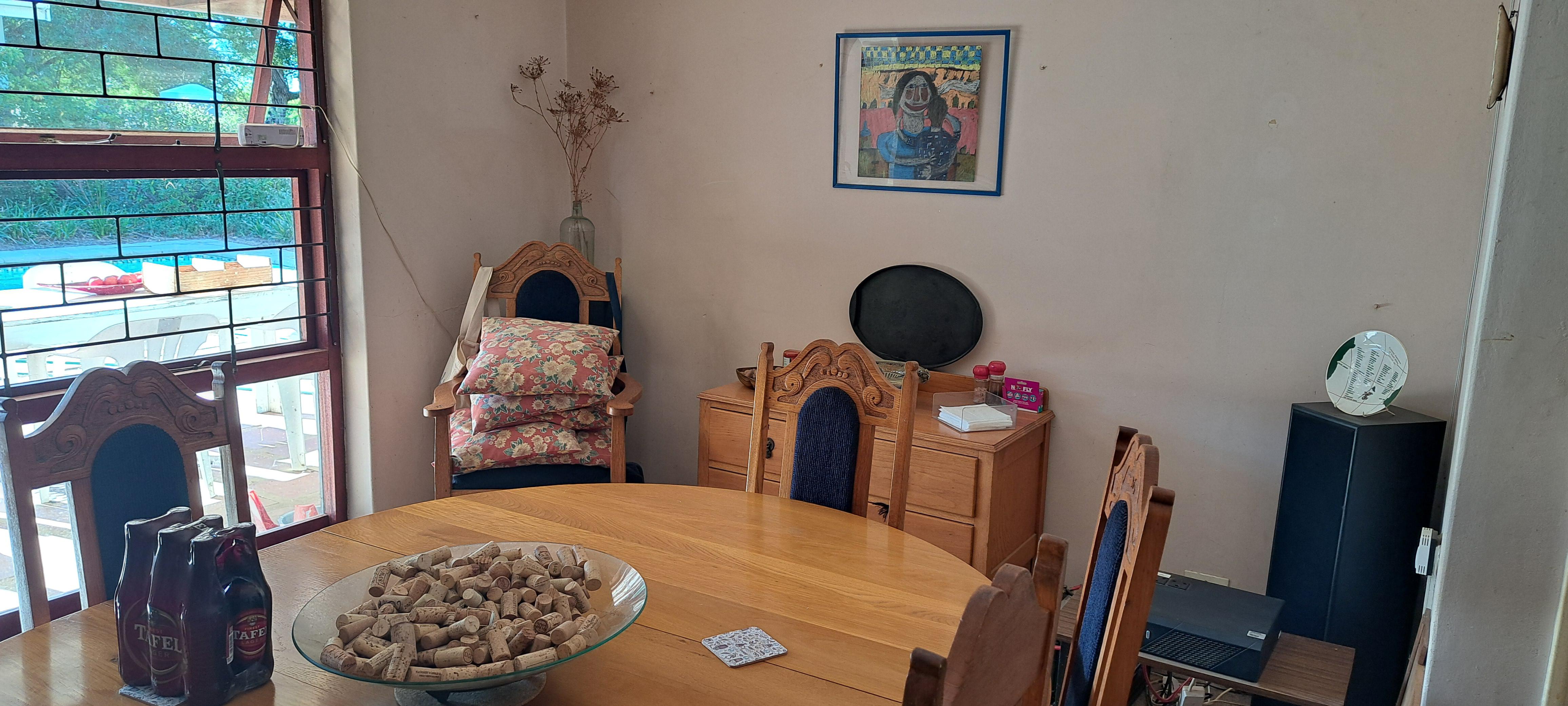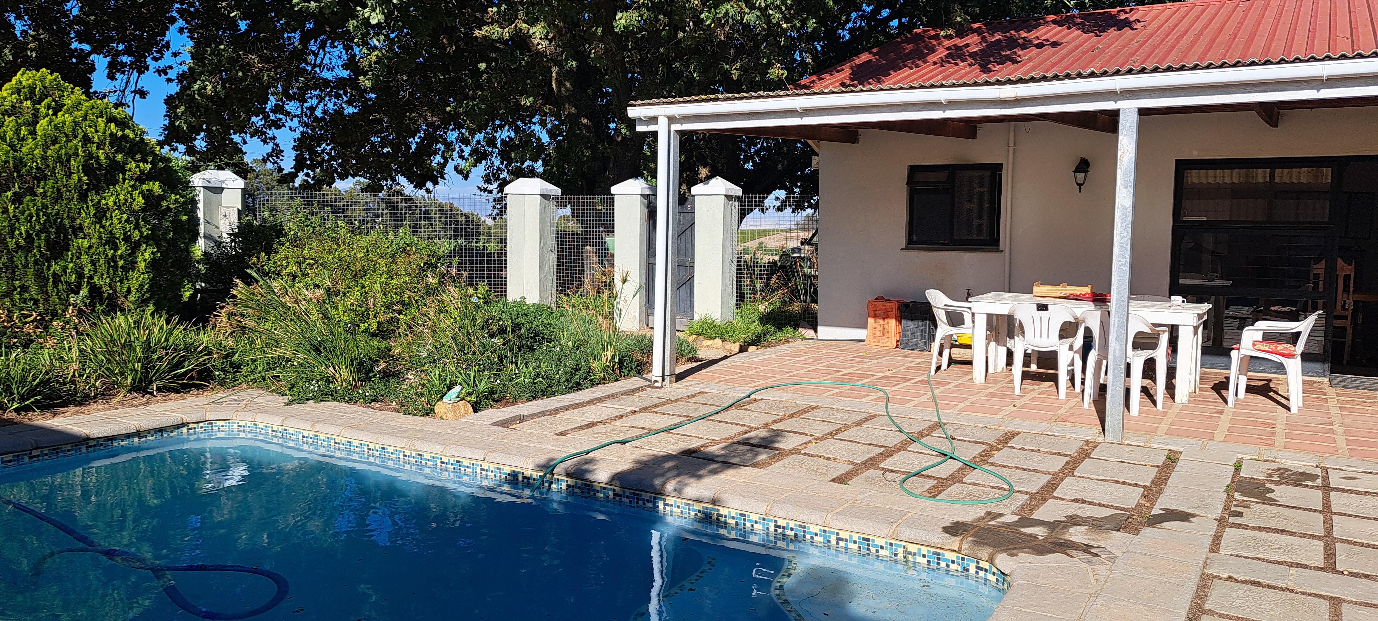 The primary residence is a spacious, family-friendly dwelling, featuring 3 bedrooms including a master with a private bathroom and a shared family bathroom for additional guests. Adjoining is a pool / braai / entertainment patio that links up with an undercover bar area.