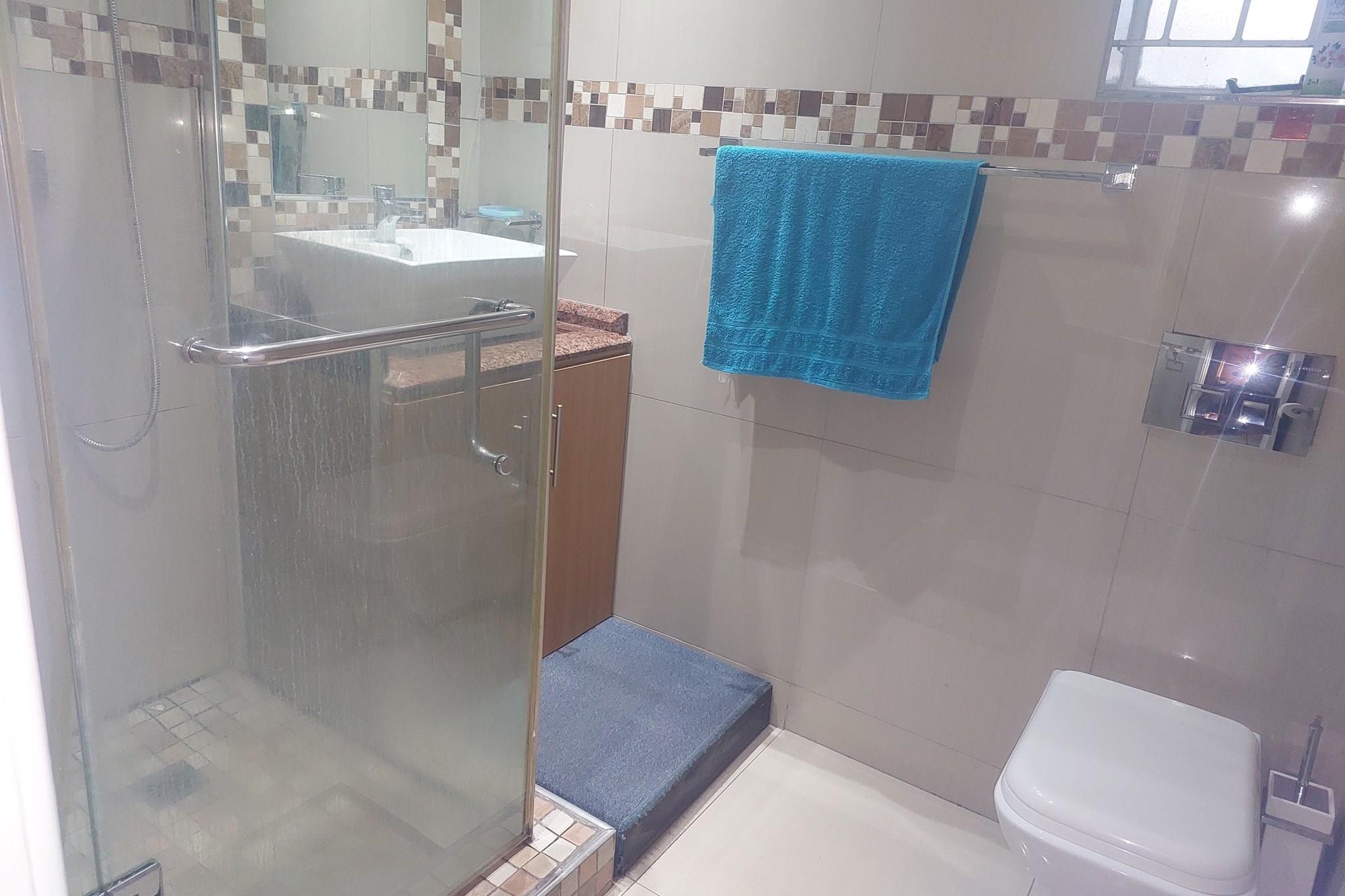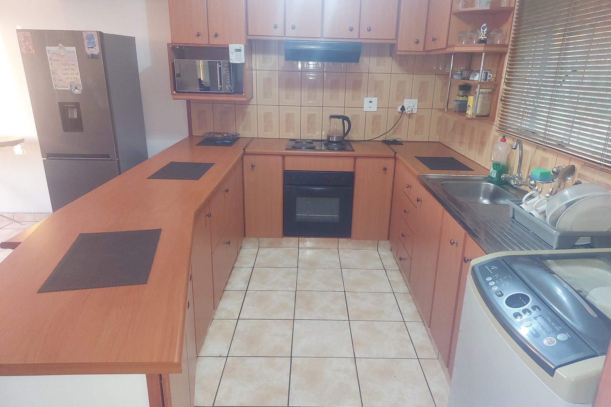 The modern kitchen with fully built in cupboards and sleek countertops fitted with a hob, extractor and undercounter oven. adjoining is the dining room with scenic views. The Lounge has an aircon and scenic views and a lifestyle of ease and relaxation. The 2 bedrooms have fully built in cupboards, tiled and fitted with blinds. The bathroom has modern fittings with a shower.