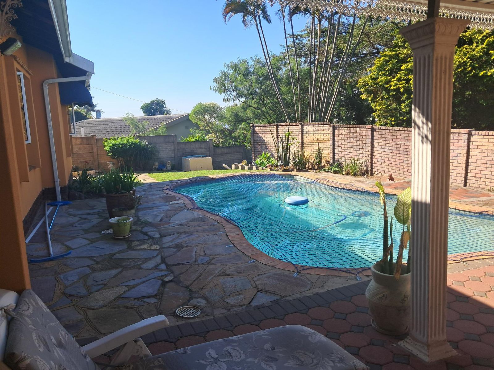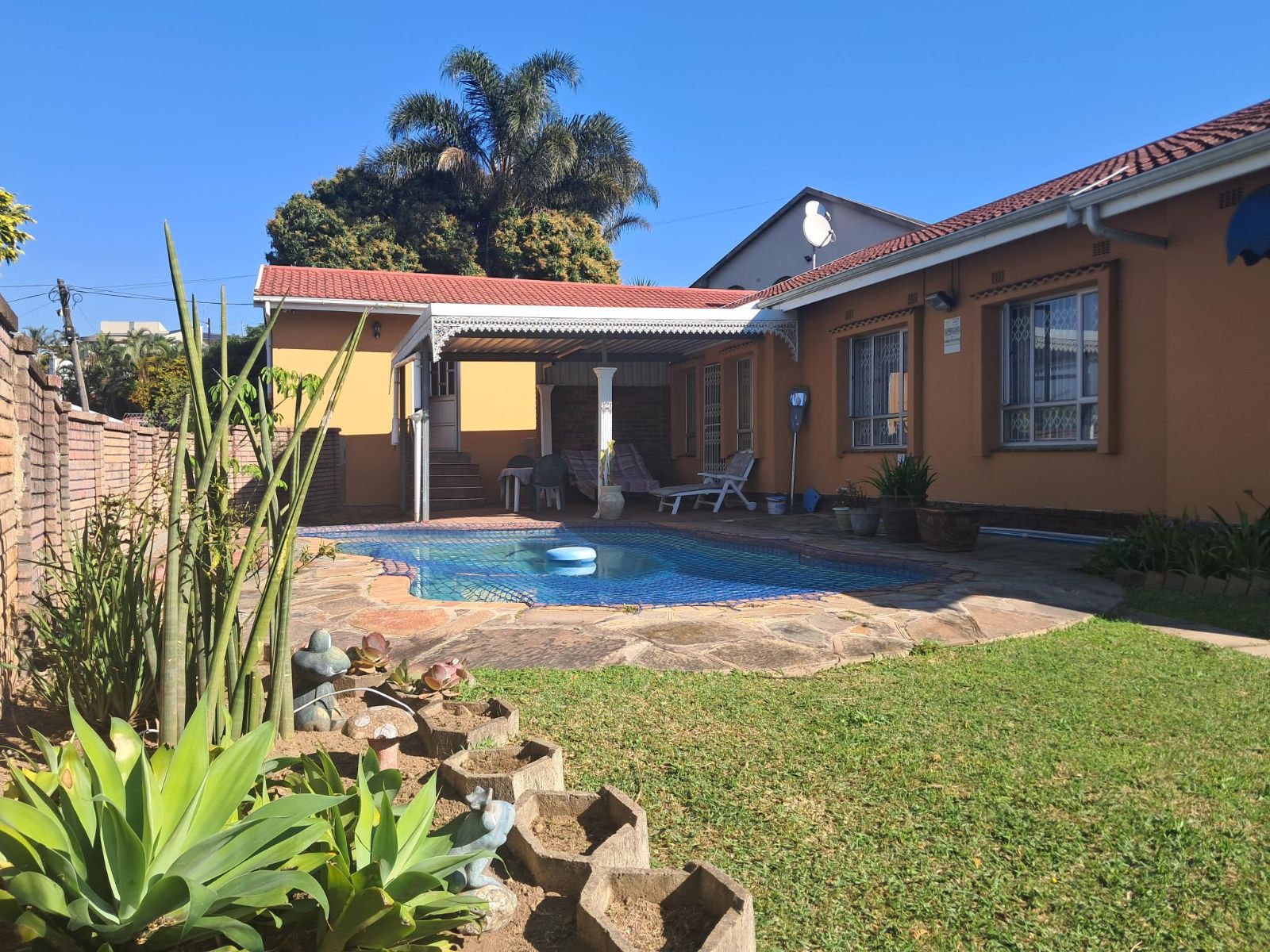 Security and peace of mind are paramount, with the home fully walled and gated, equipped with an alarm system, cameras, burglar guards, and durable aluminium windows.